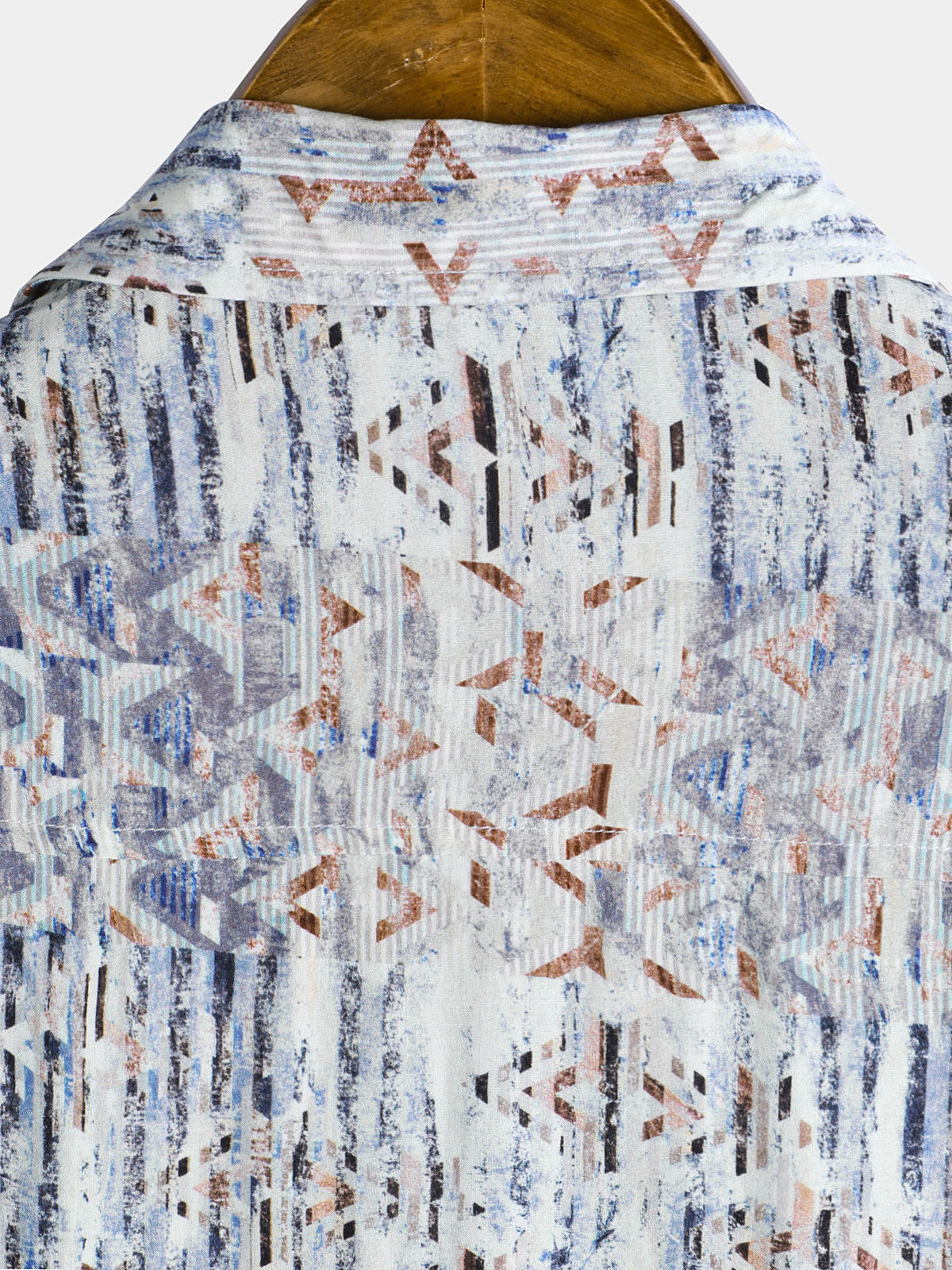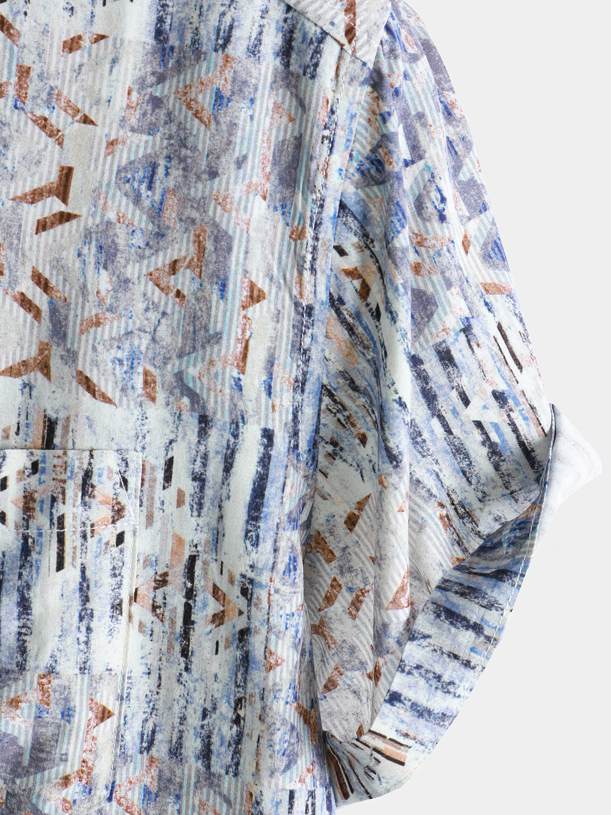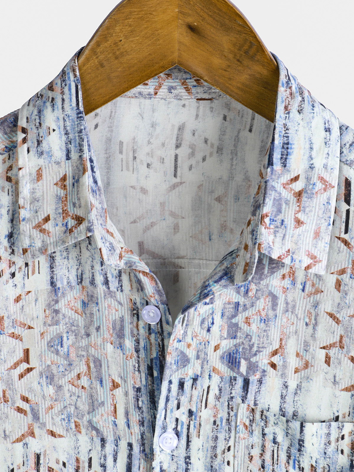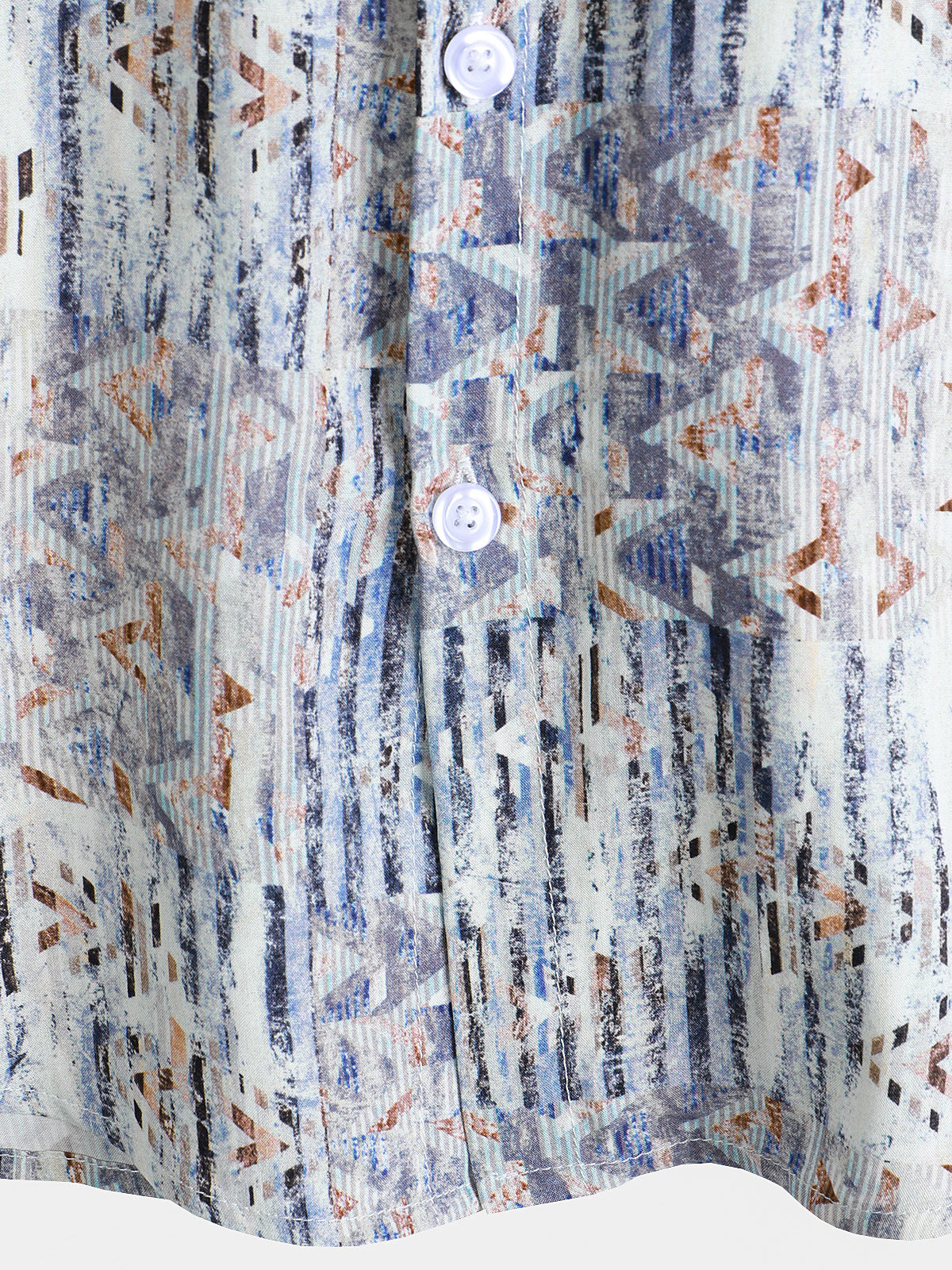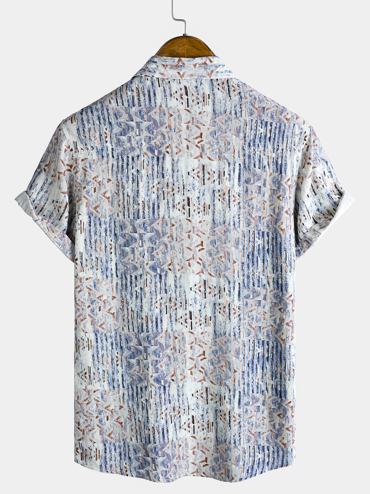Men's Breathable Art Striped Print Summer Short Sleeve Shirt