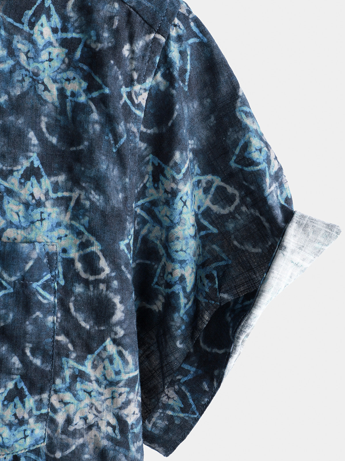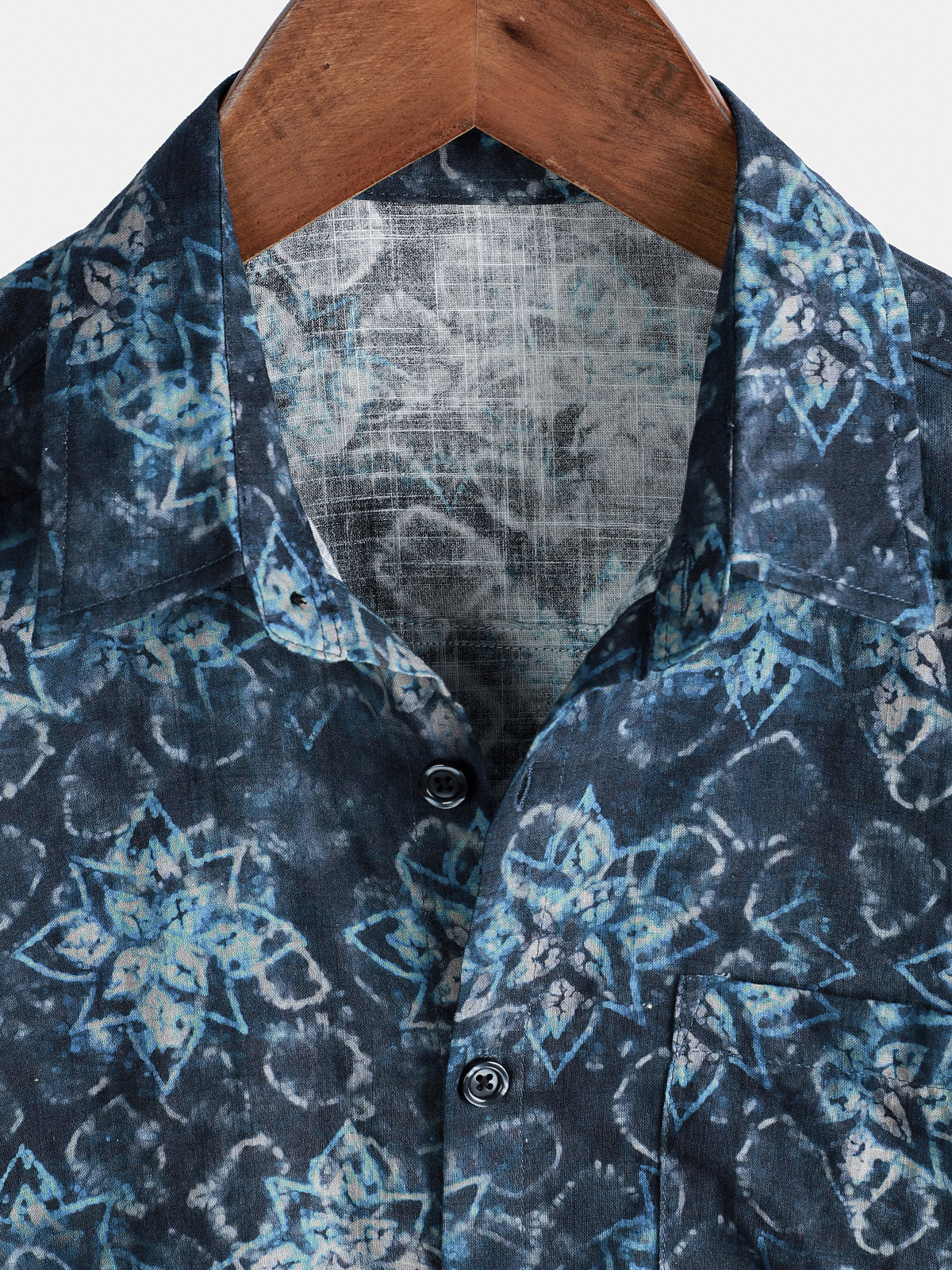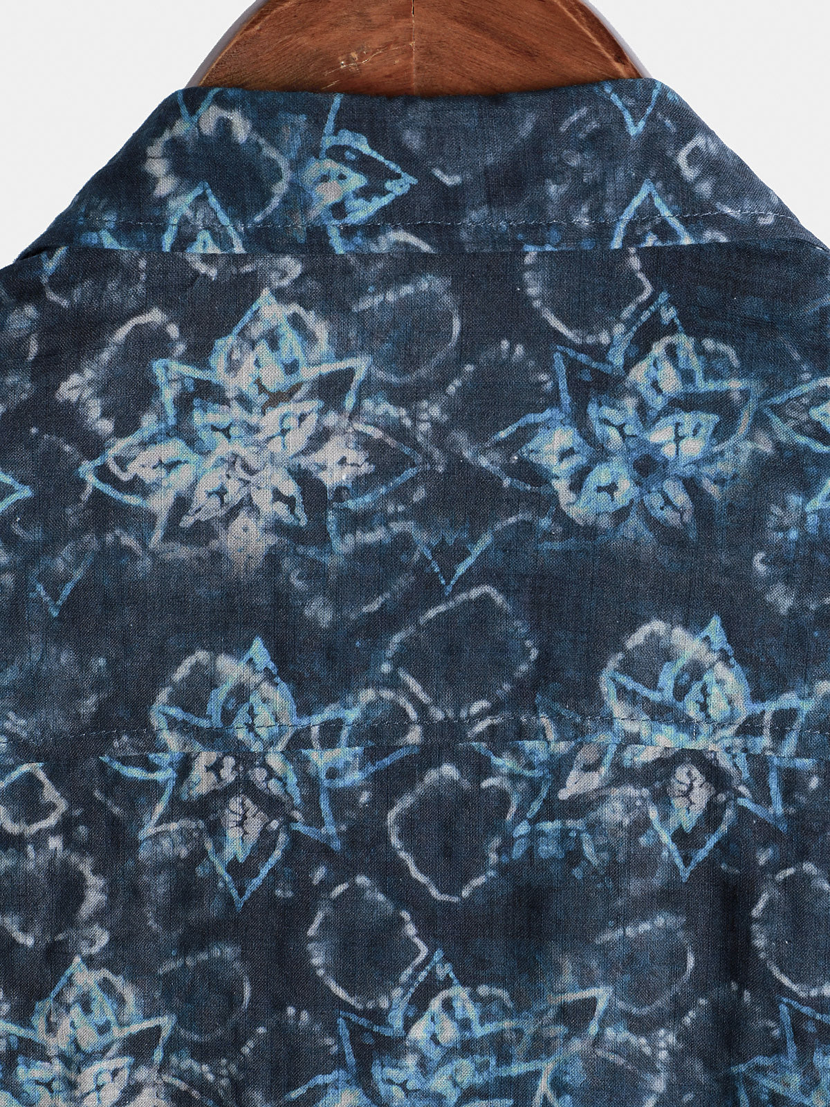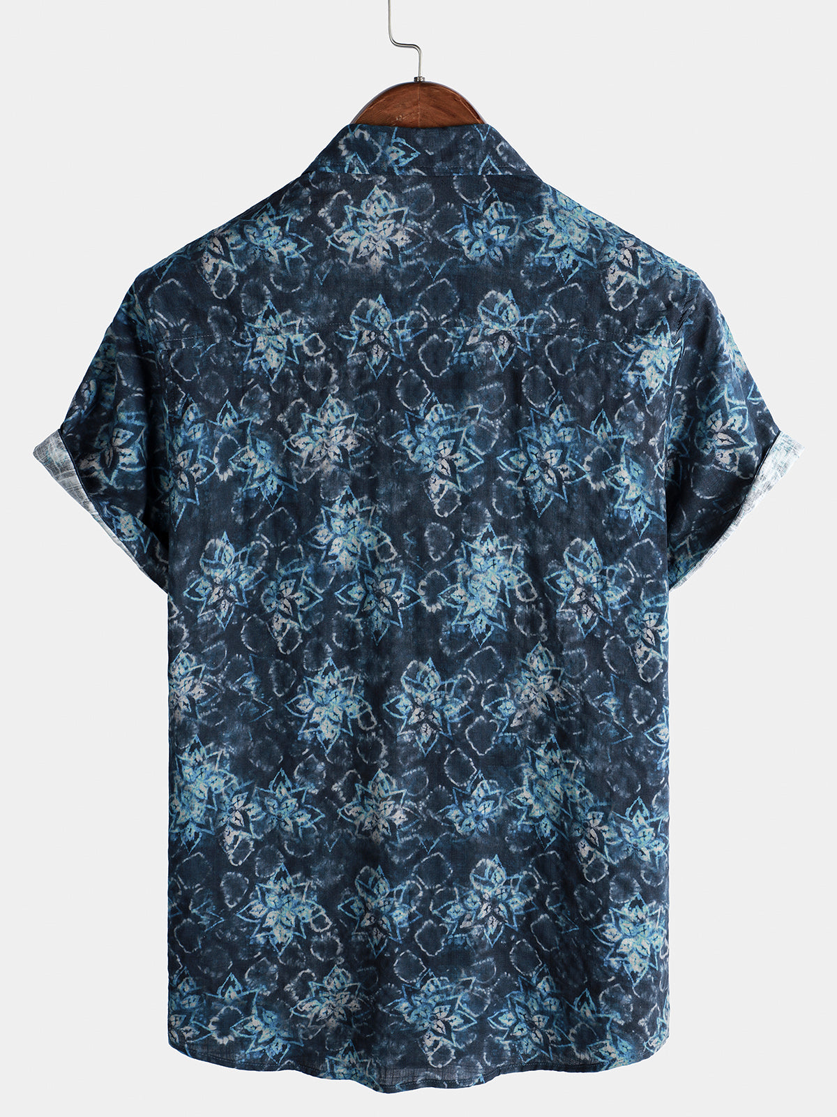 Men's Breathable Floral Print Button Up Short Sleeve Shirt