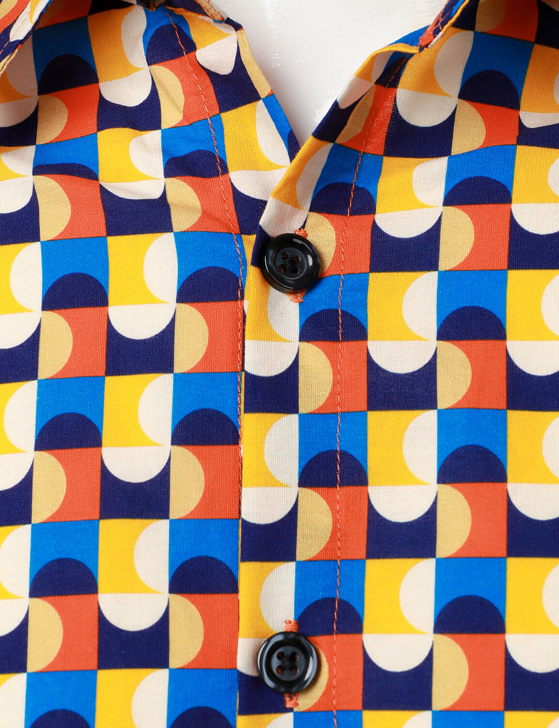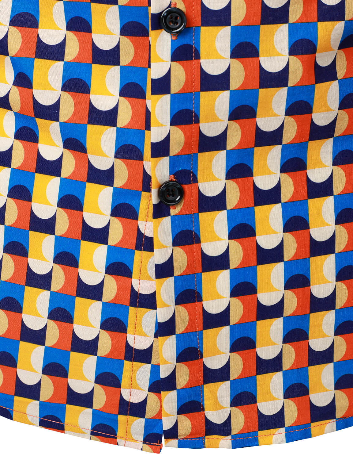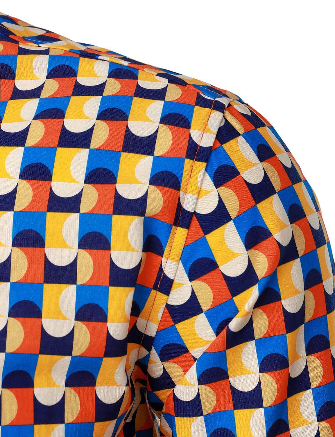 Men's Cotton Geometric Button Up Casual Long Sleeve Shirt