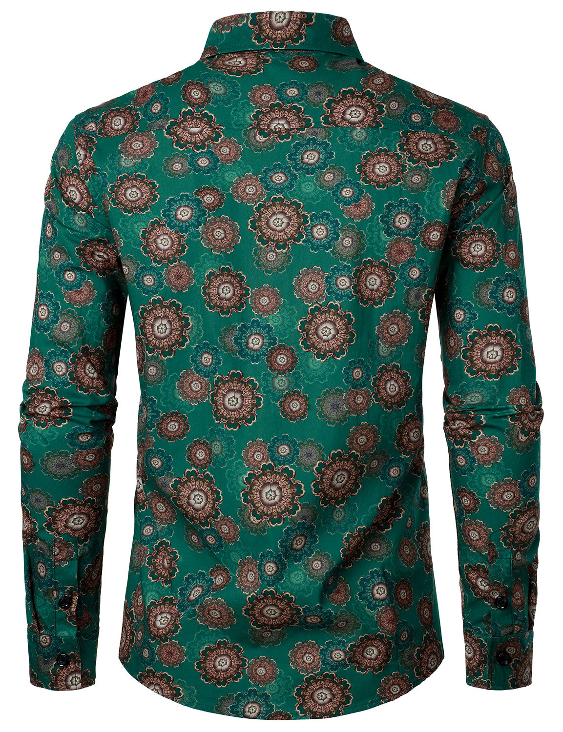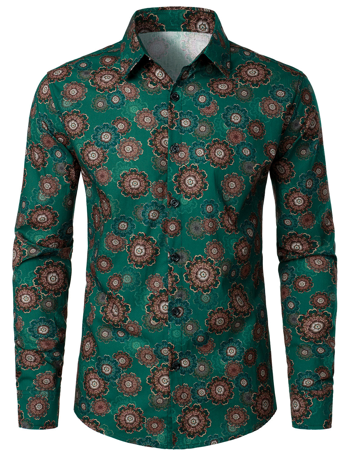 Men's Cotton Retro Floral Print Button Up Long Sleeve Shirt