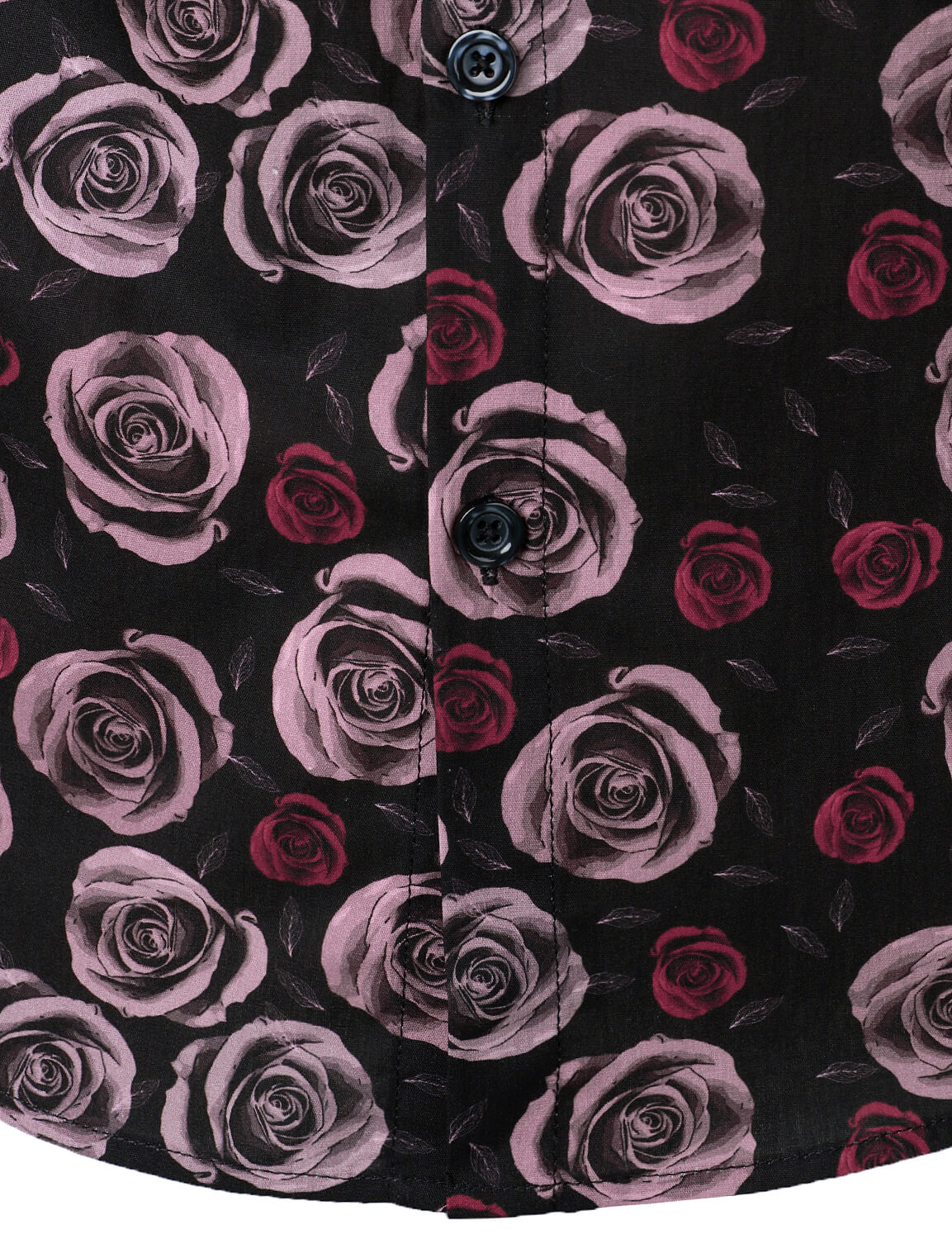 Men's Cotton Rose Print Casual Button Up Long Sleeve Shirt