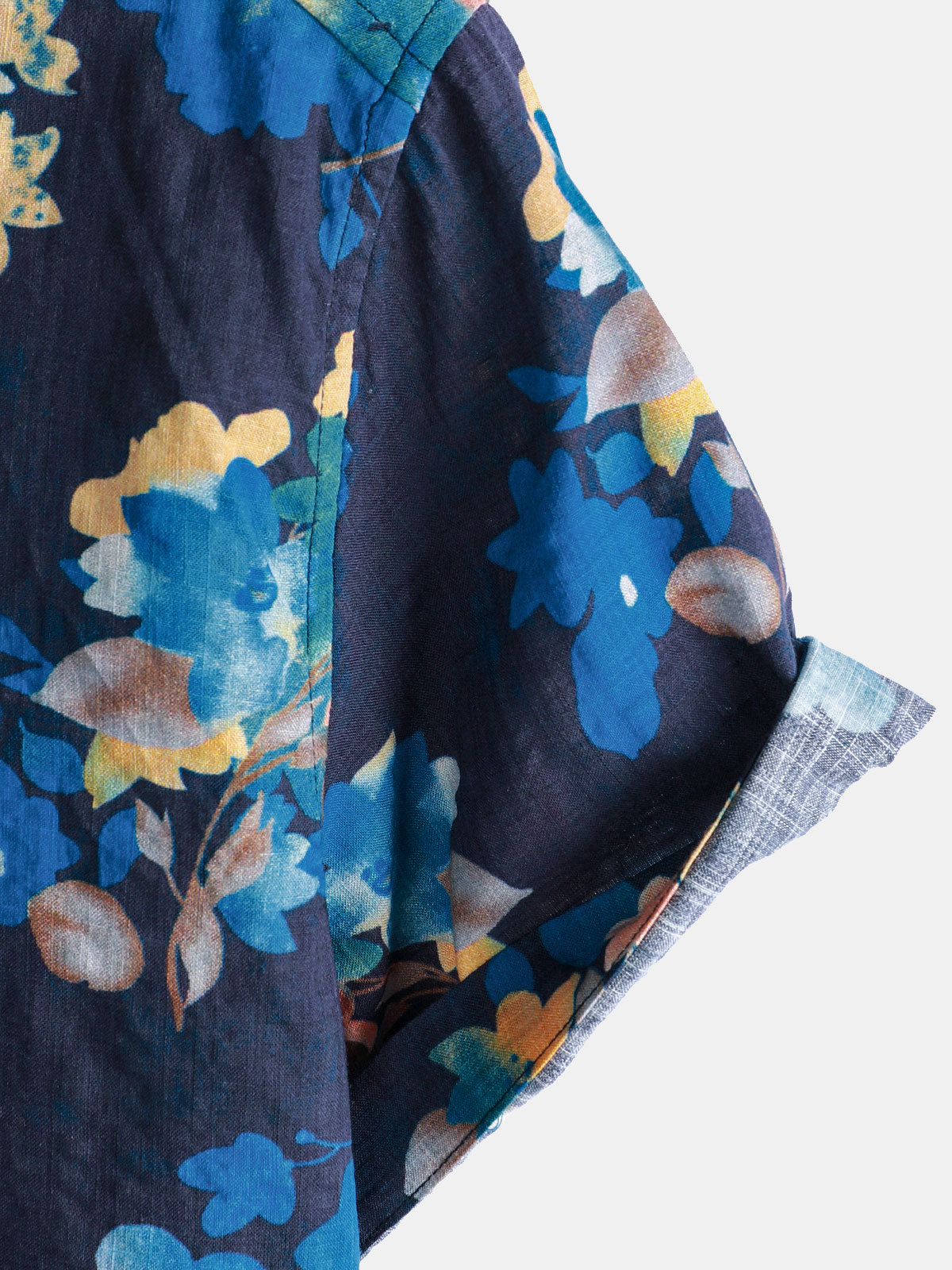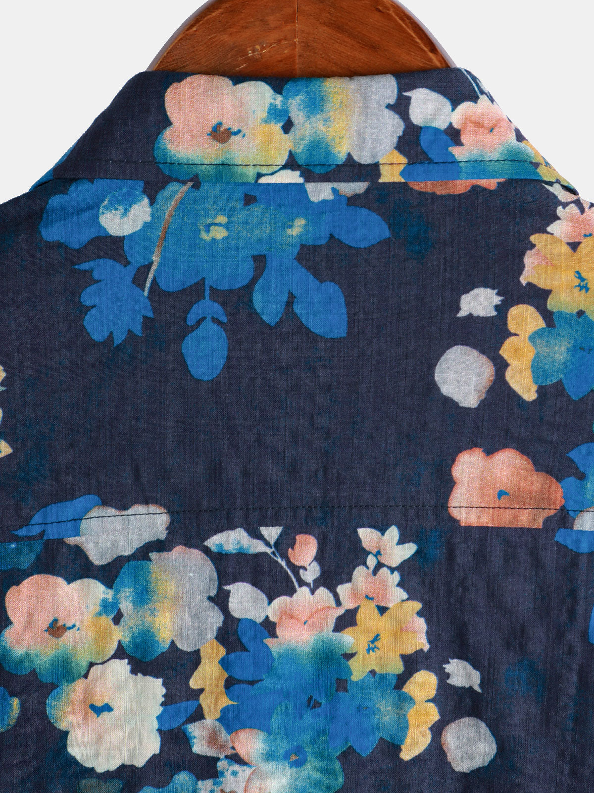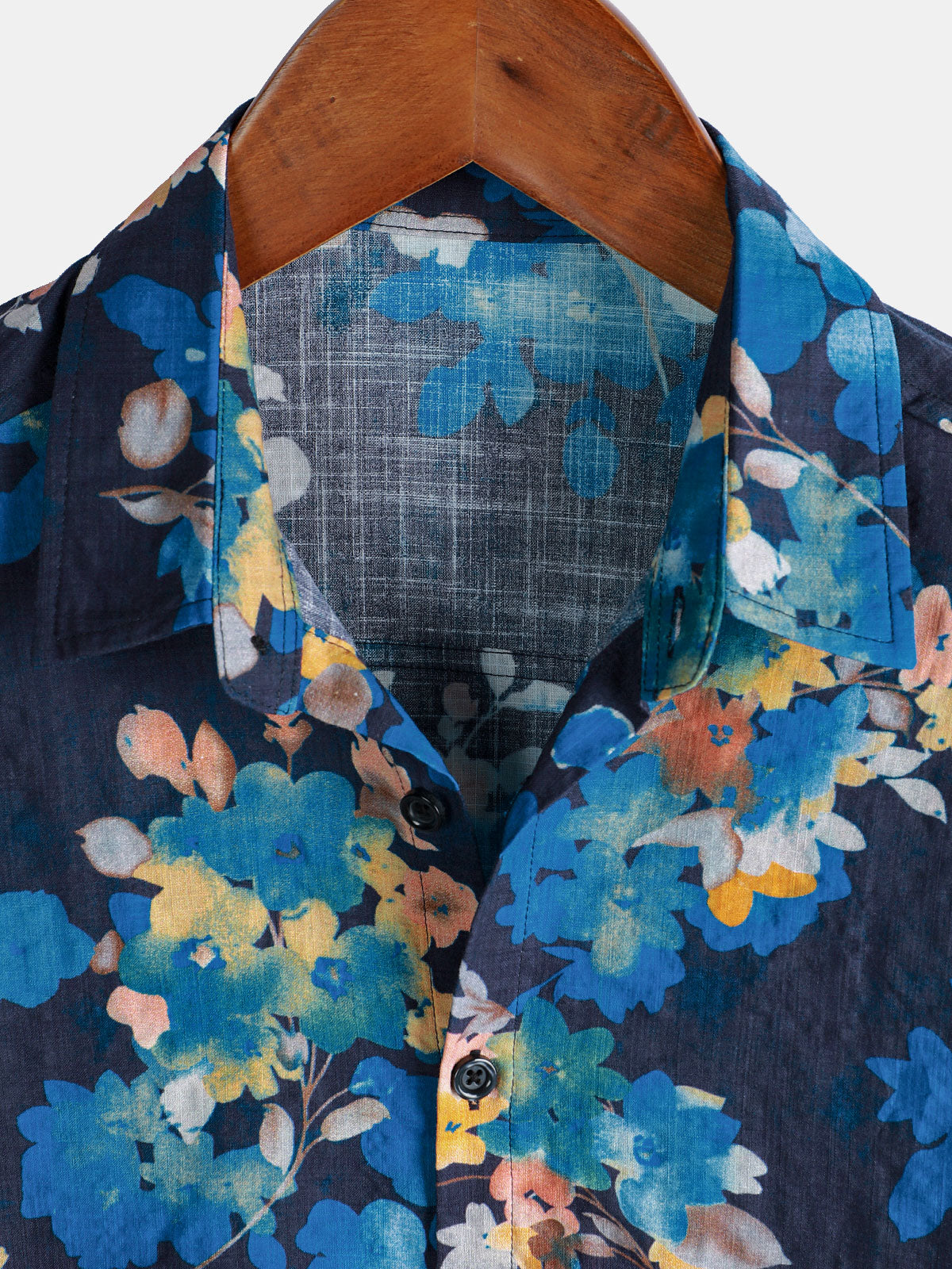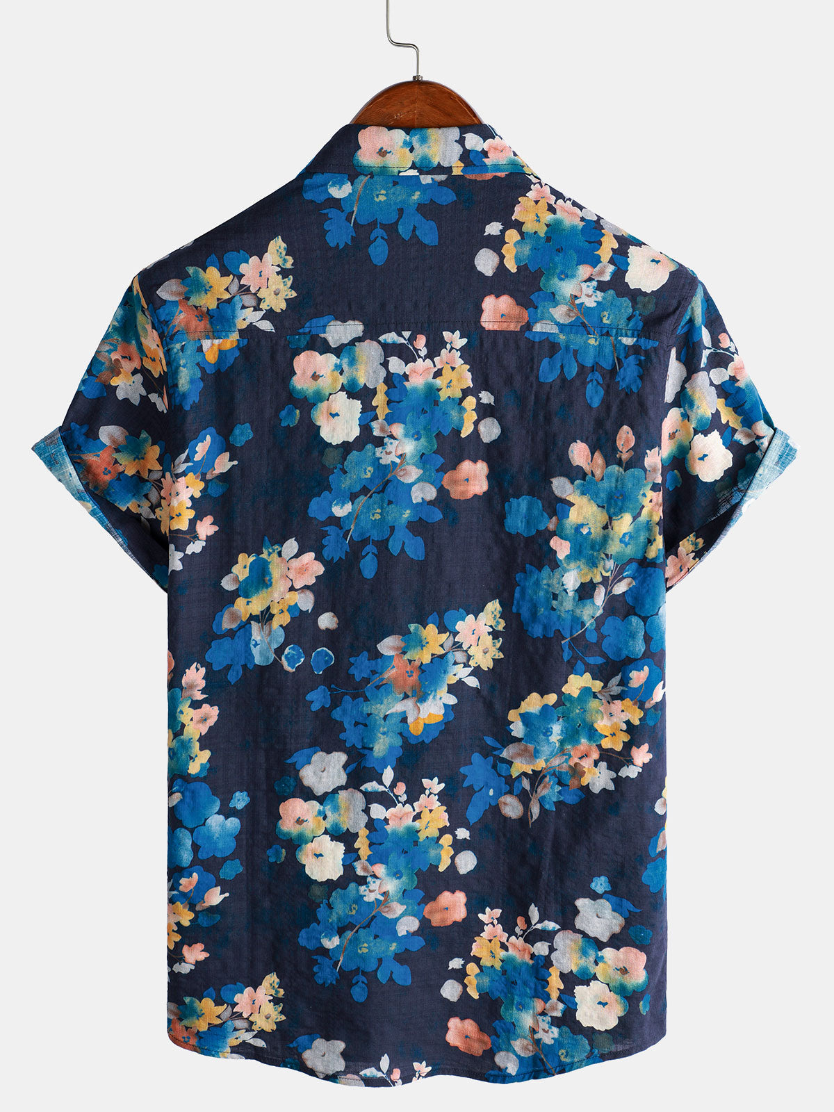 Men's Floral Casual Cotton Short Sleeve Beach Shirt