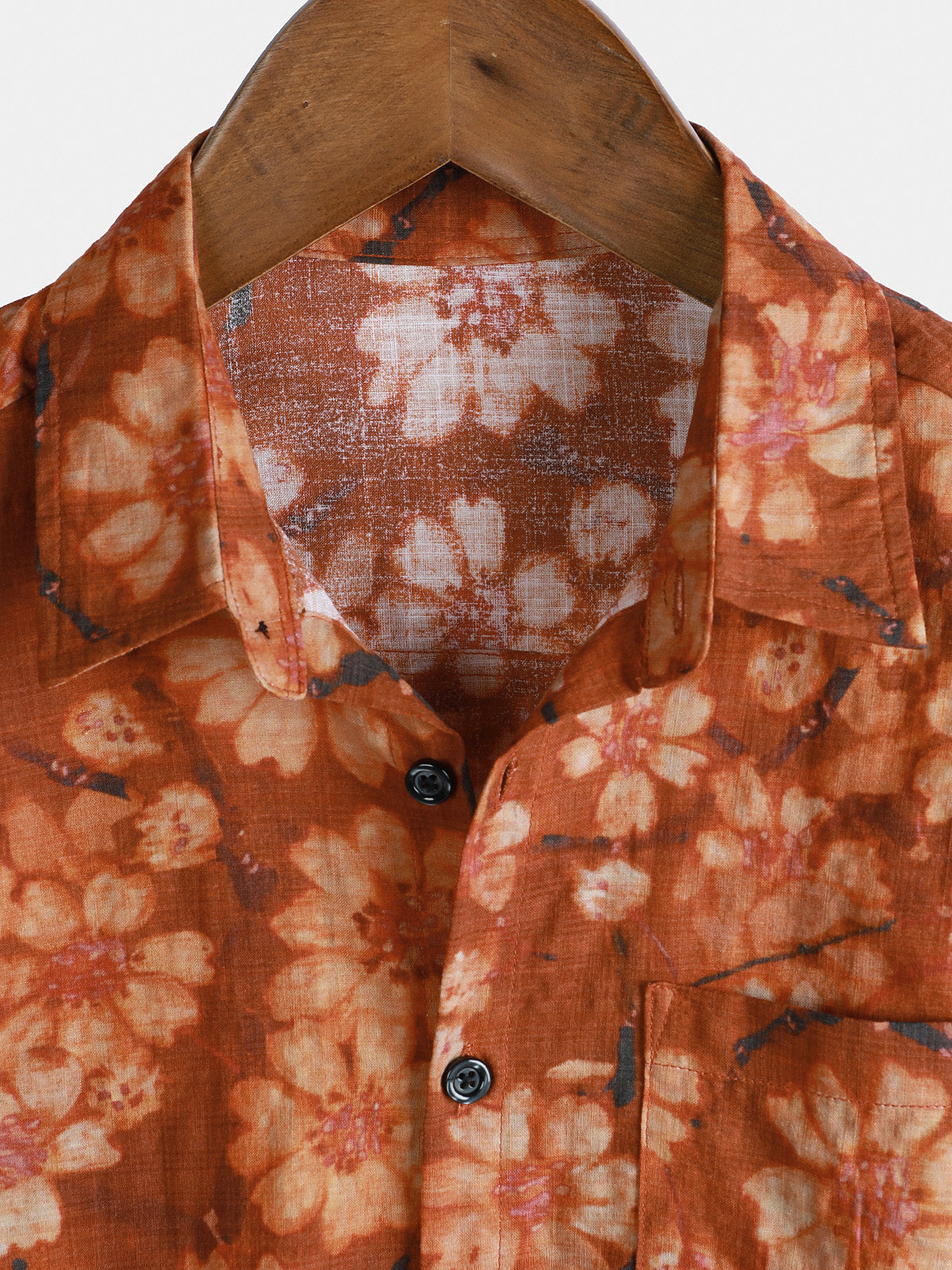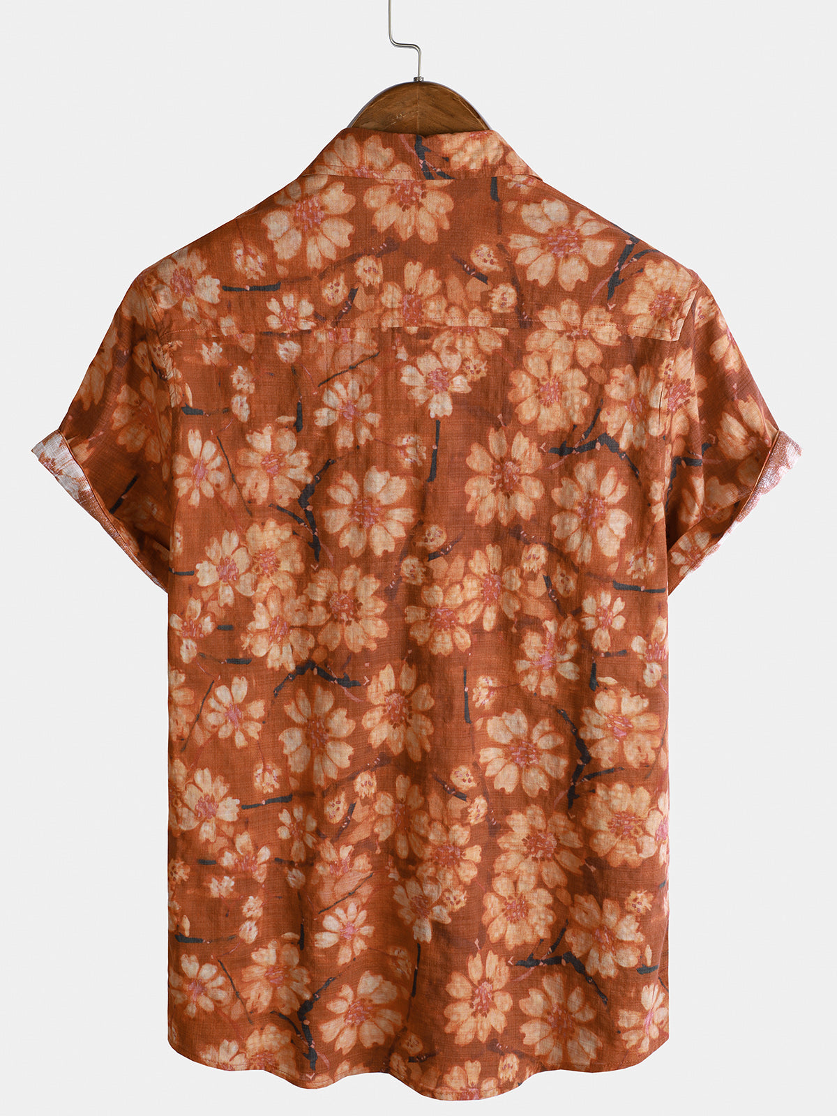 Men's Floral Print Summer Short Sleeve Hawaiian Shirt