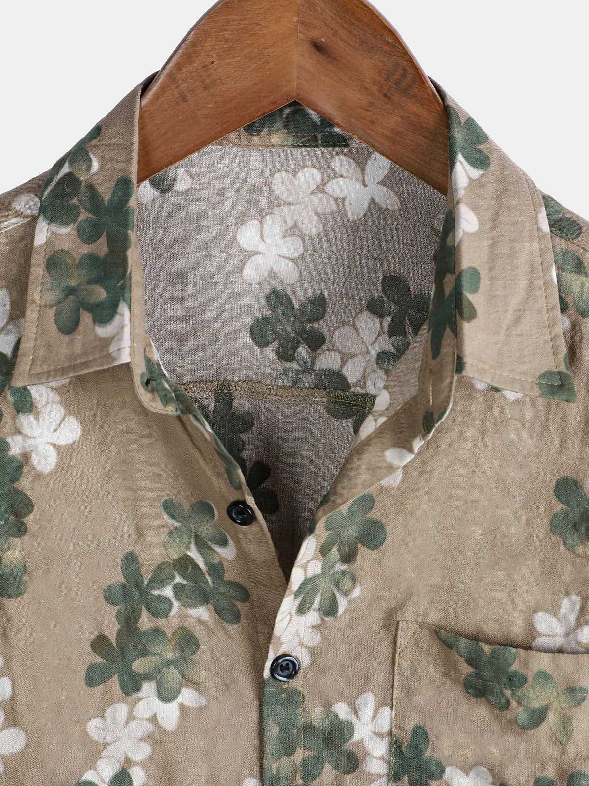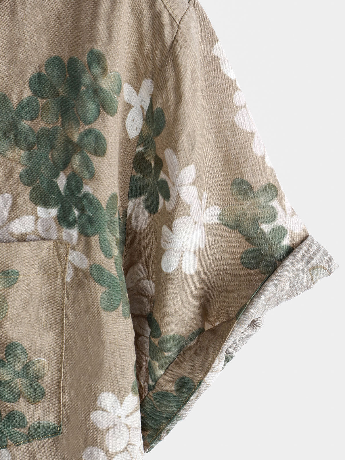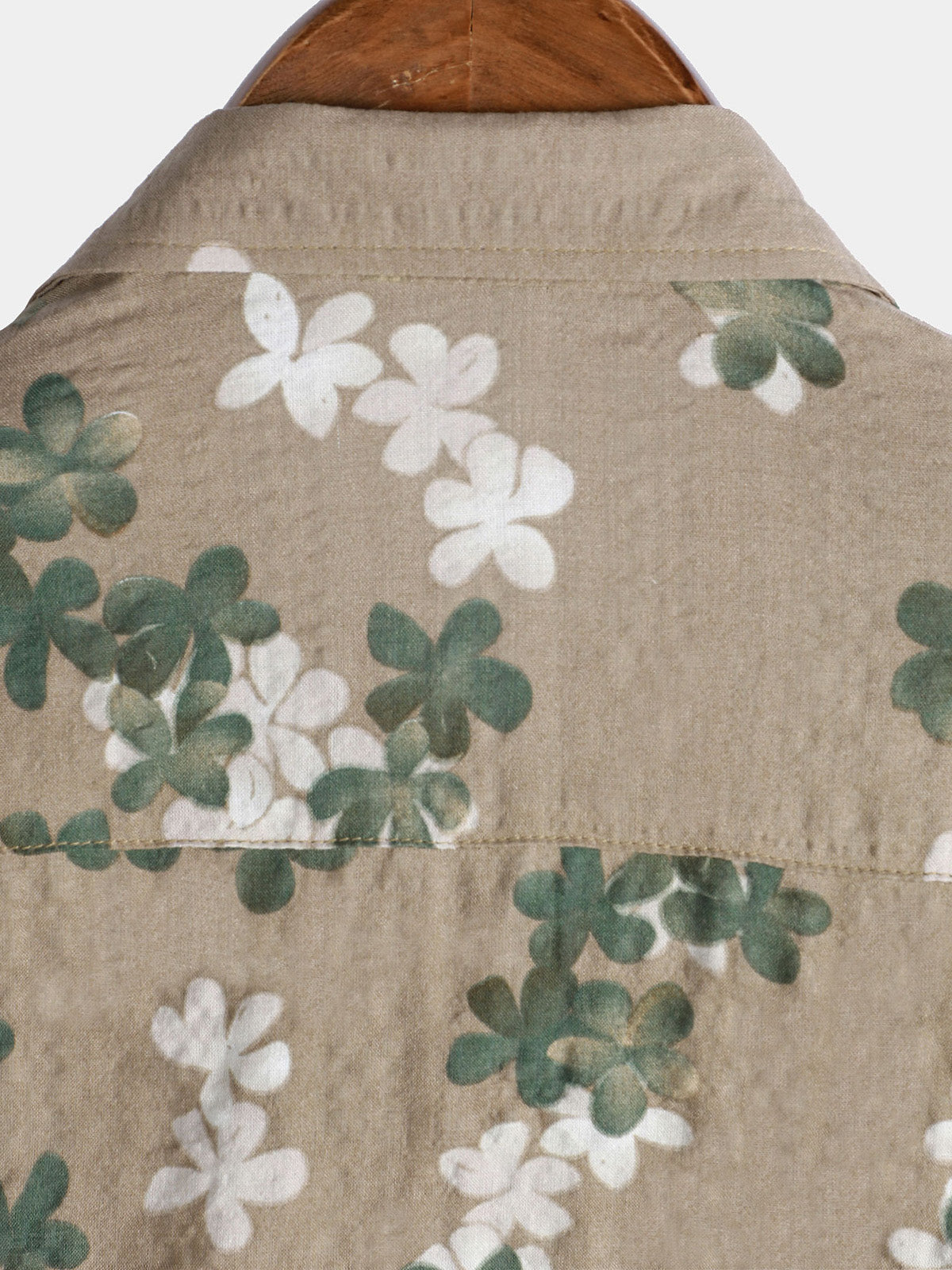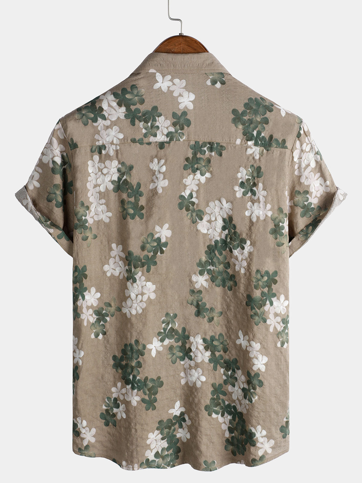 Men's Floral Short Sleeve Cotton Summer Button Up Shirt