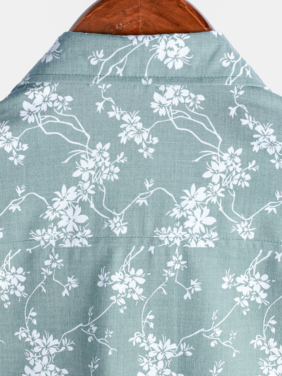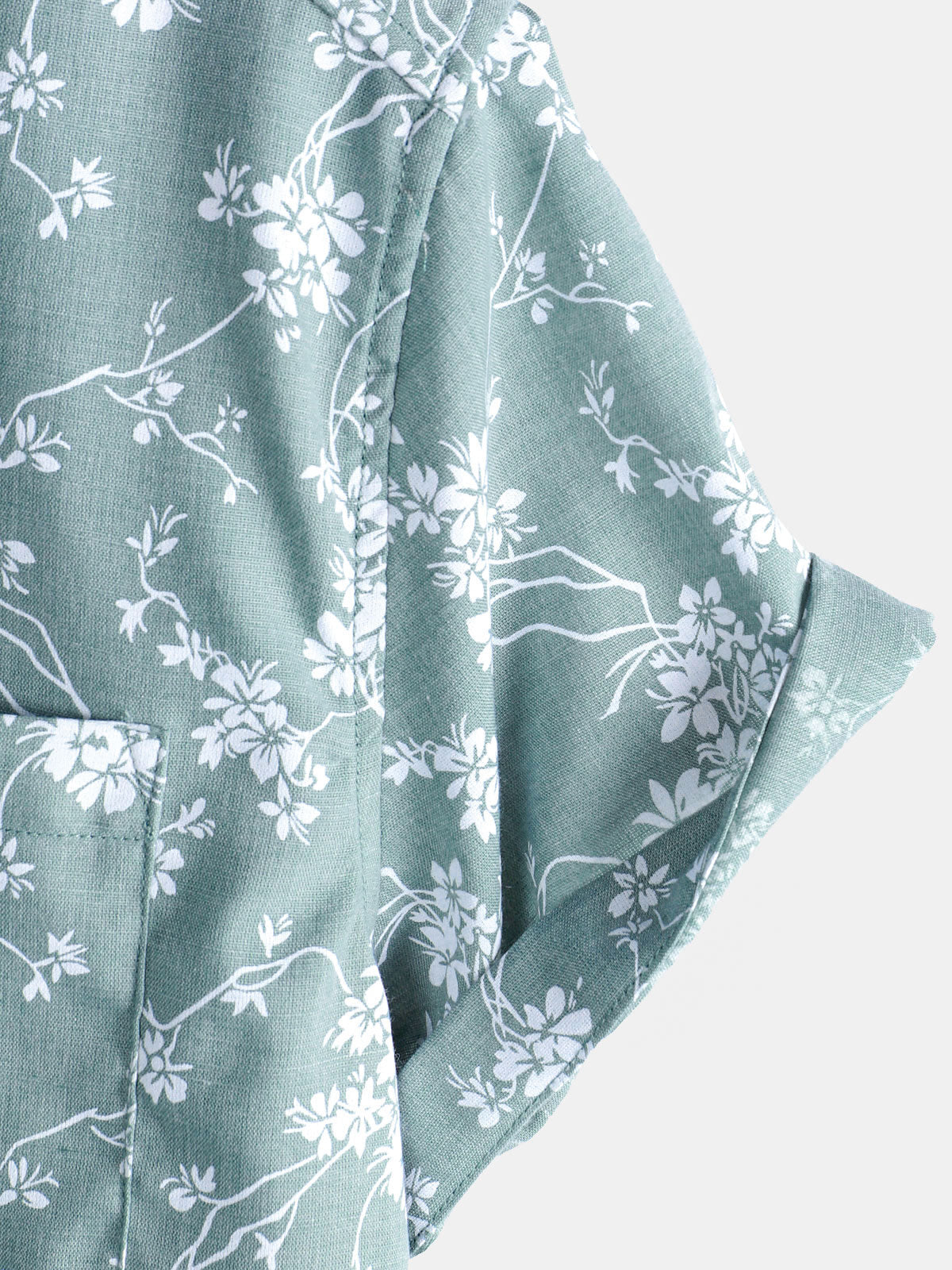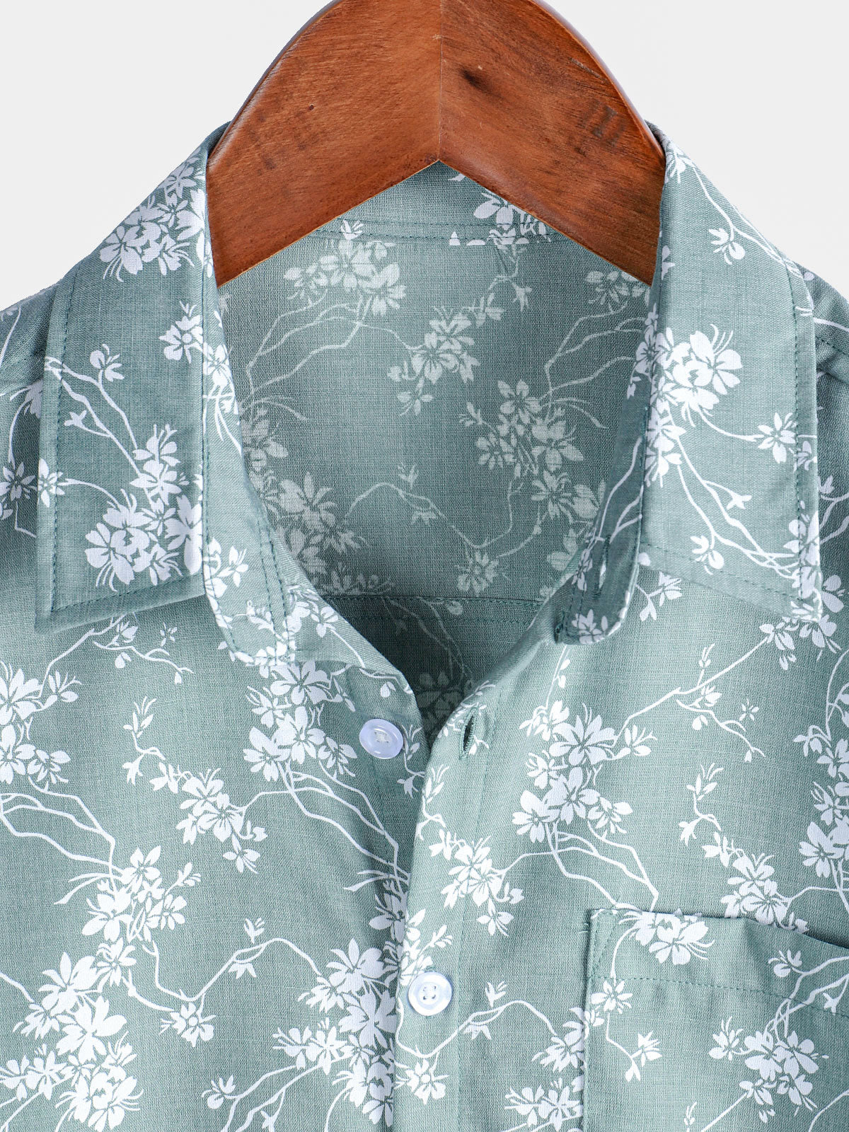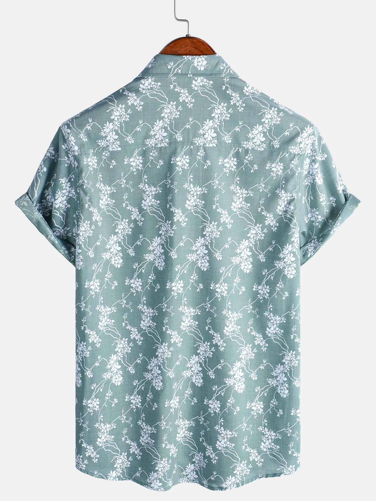 Men's Floral Short Sleeve Summer Breathable Button Up Shirt