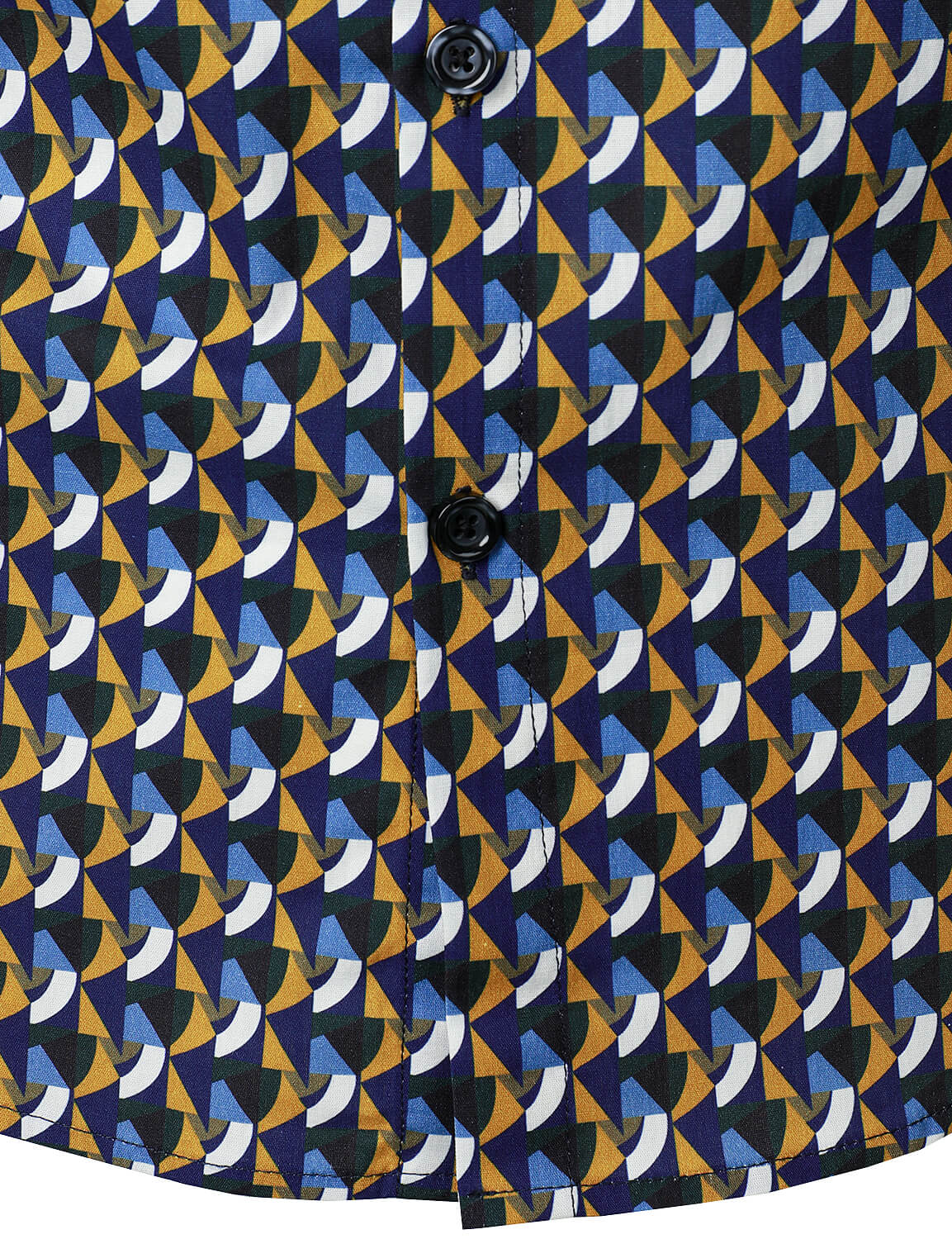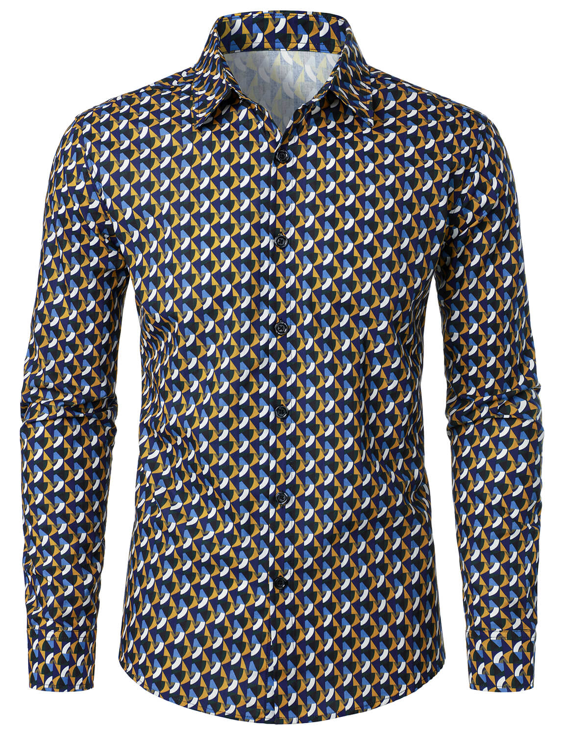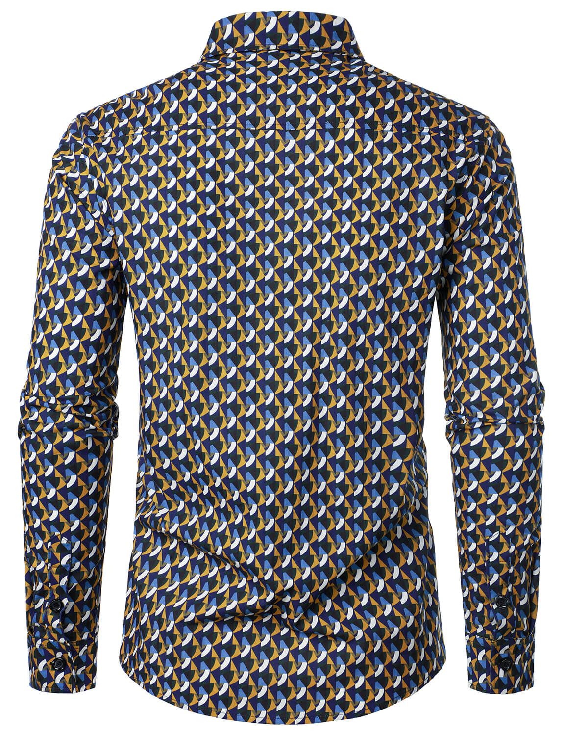 Men's Geometric Print Casual Cotton Button Long Sleeve Shirt