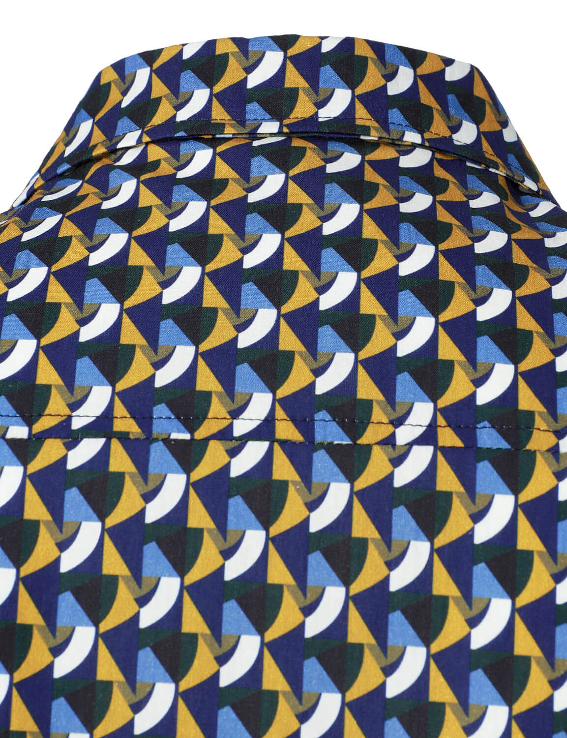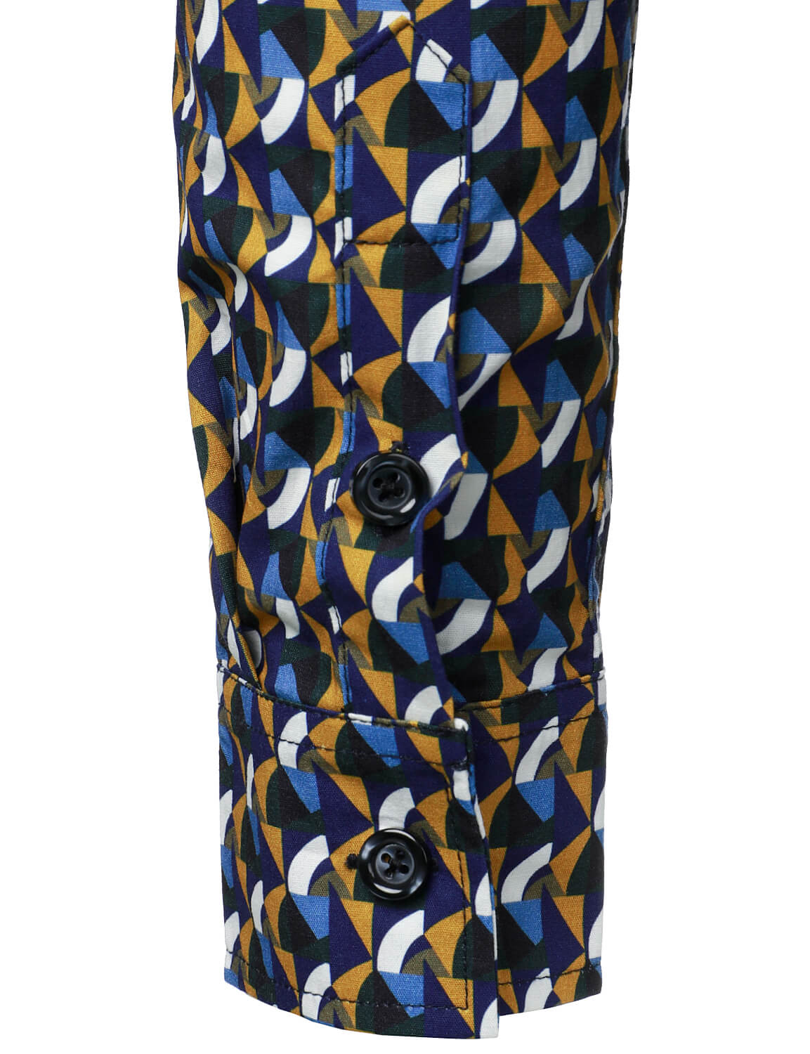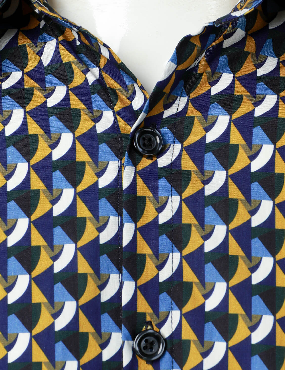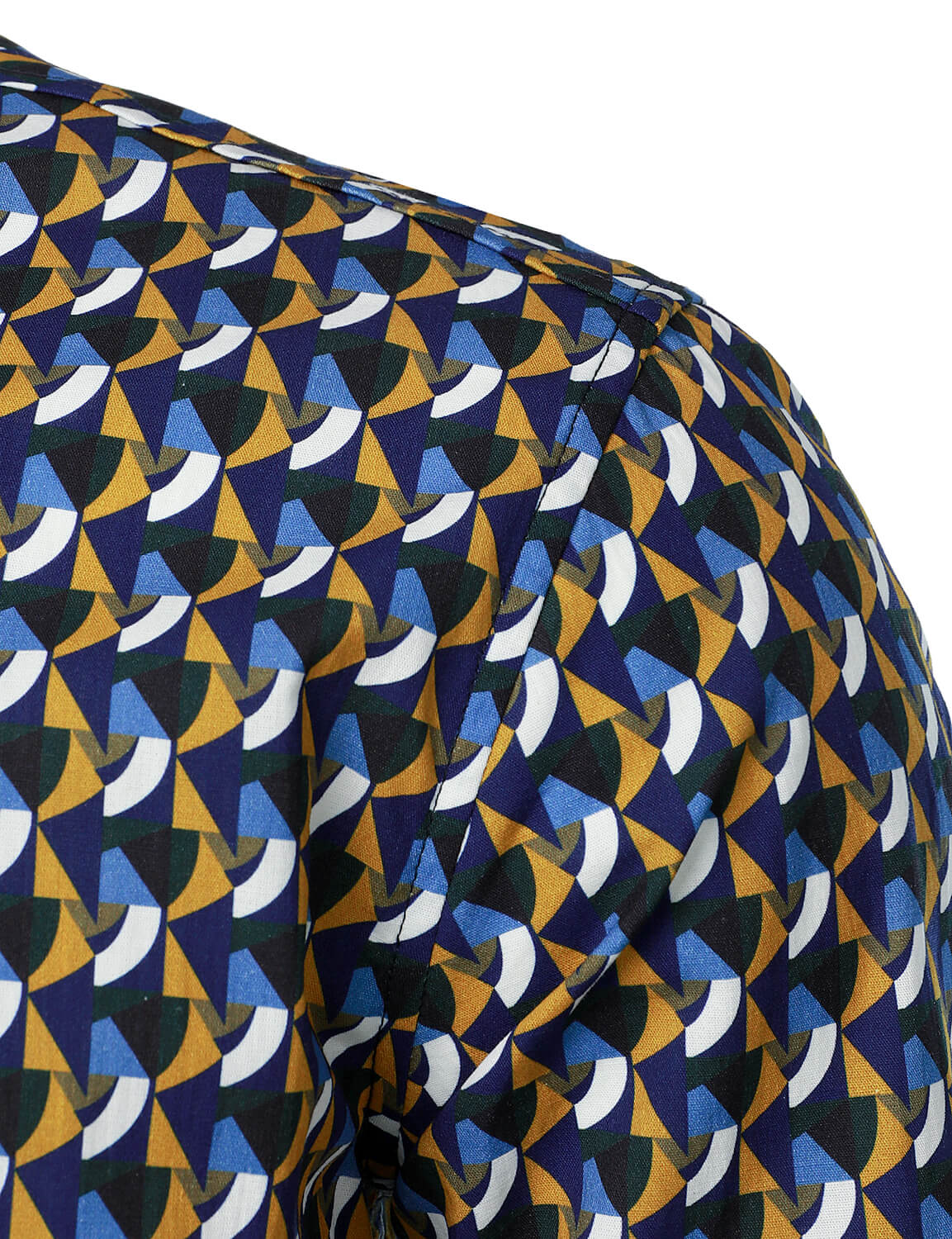 Men's Geometric Print Casual Cotton Button Long Sleeve Shirt