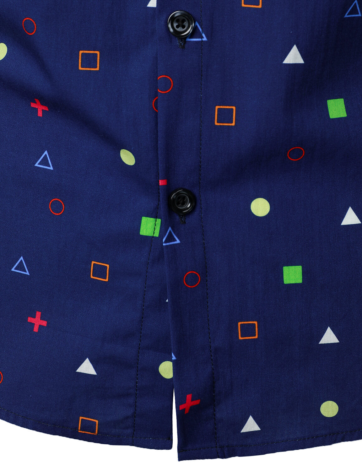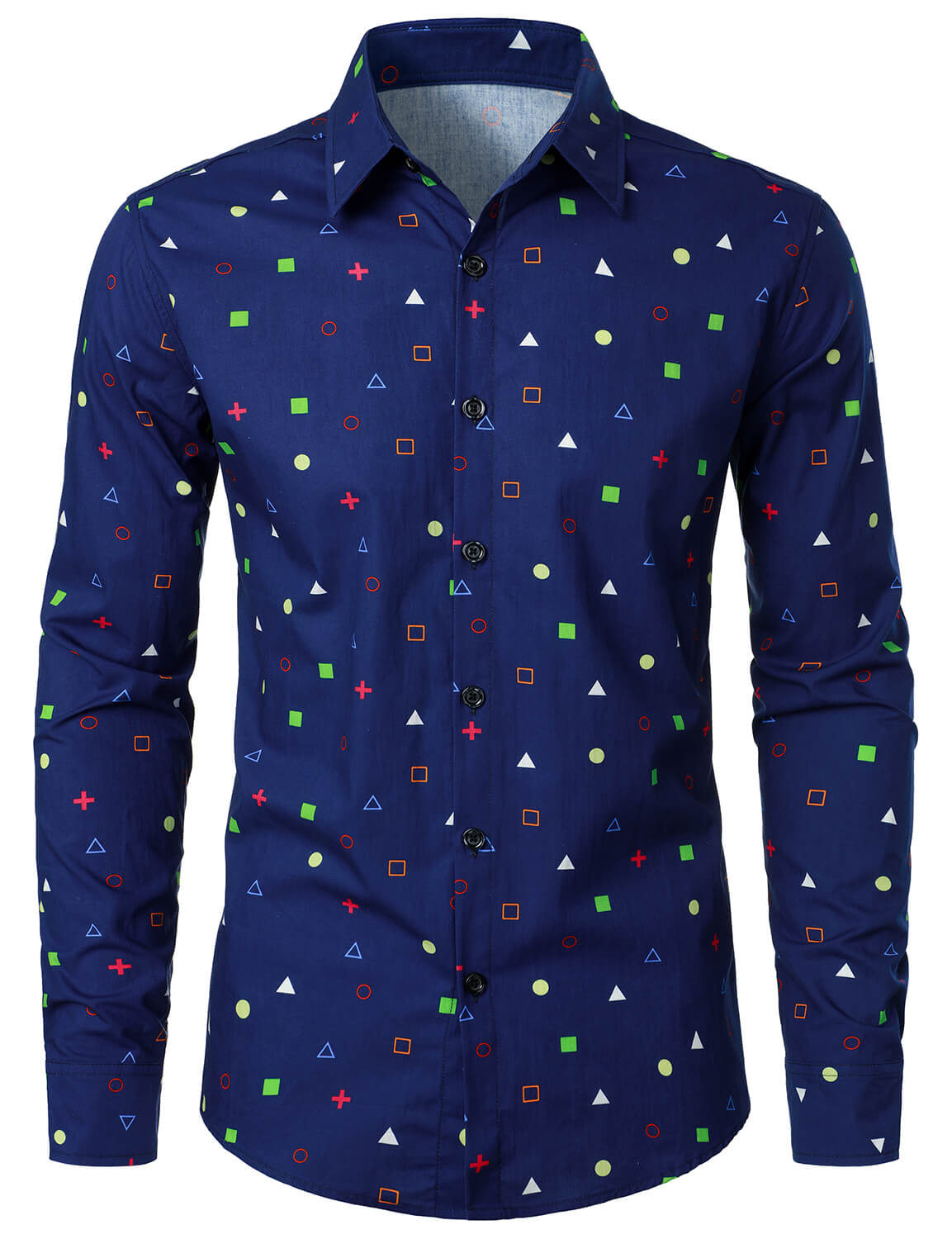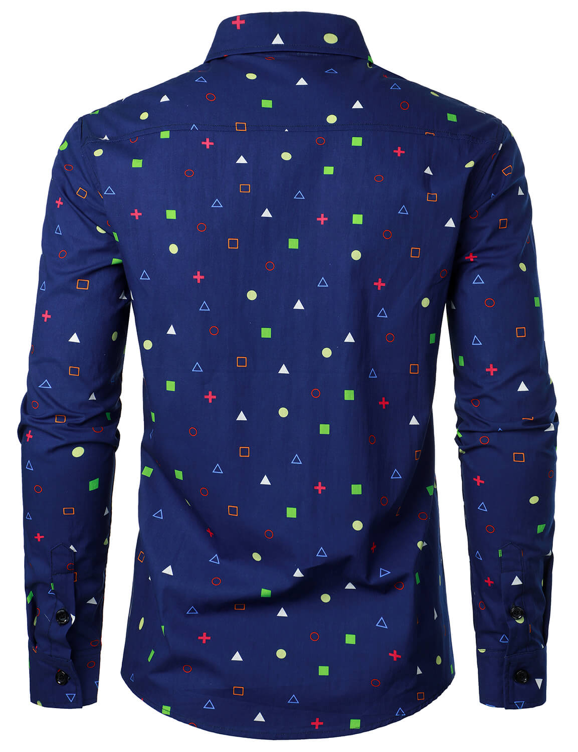 Men's Geometric Print Cotton Button Up Long Sleeve Shirt