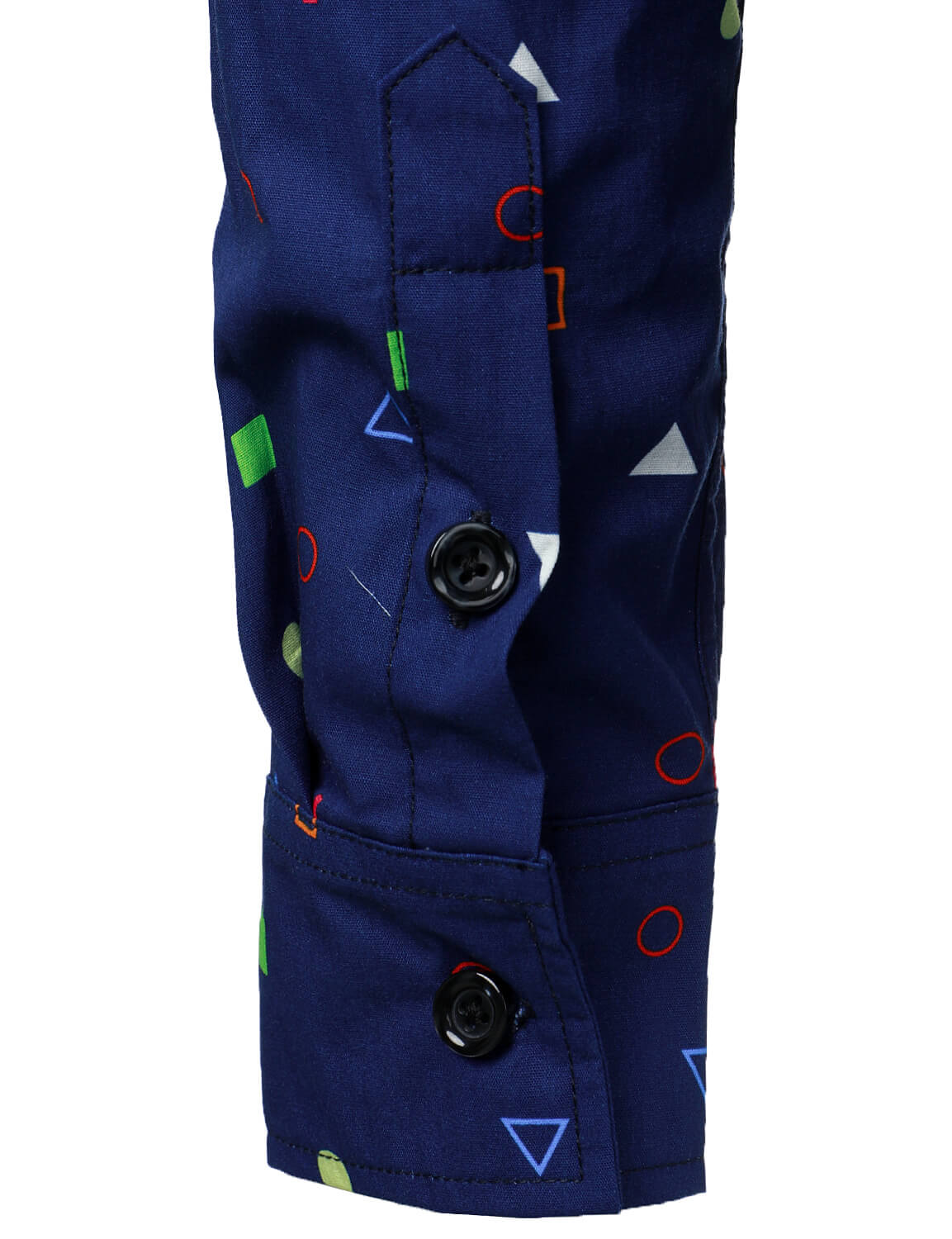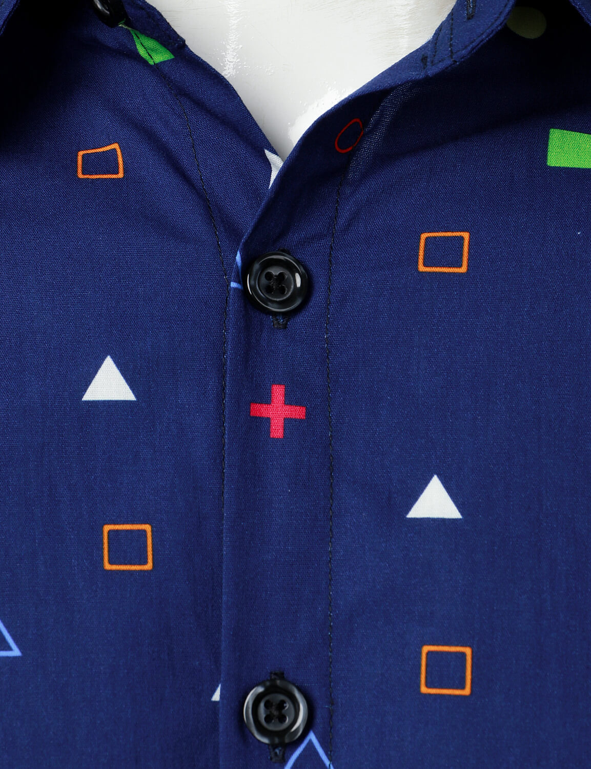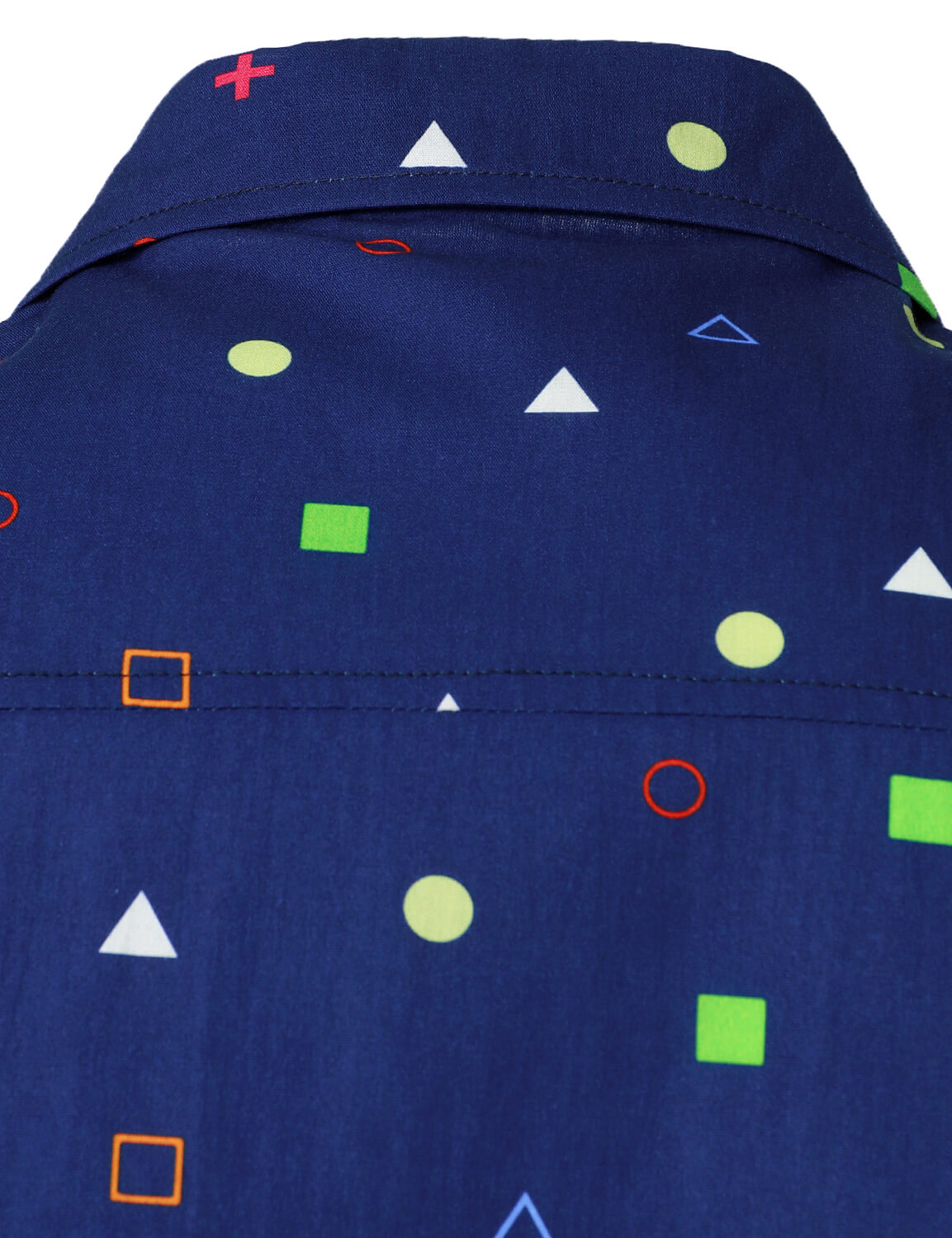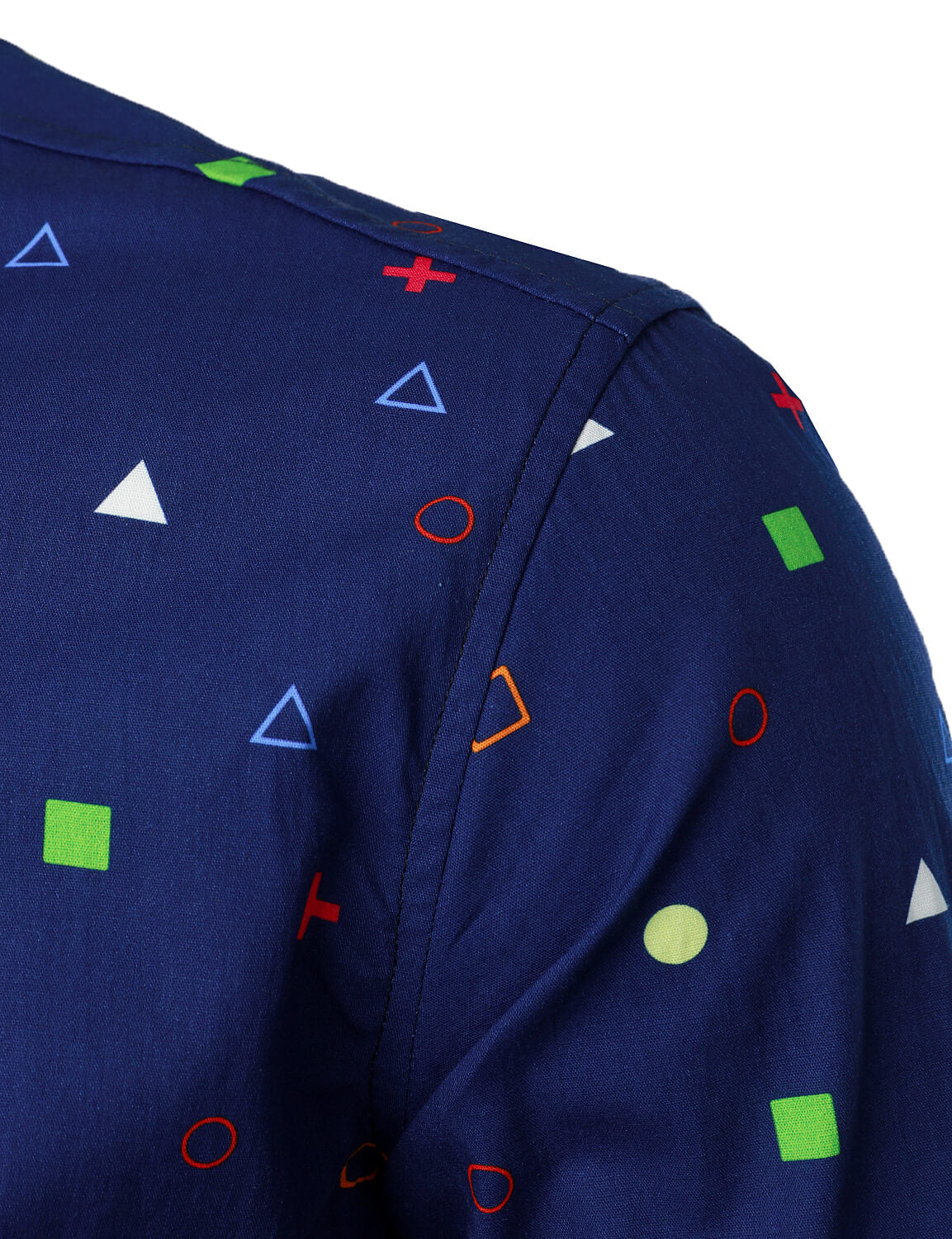Men's Geometric Print Cotton Button Up Long Sleeve Shirt