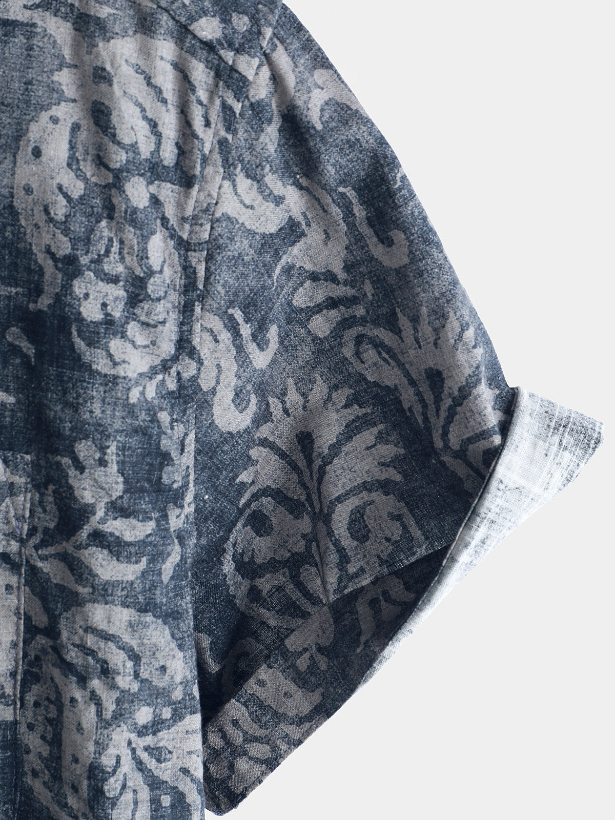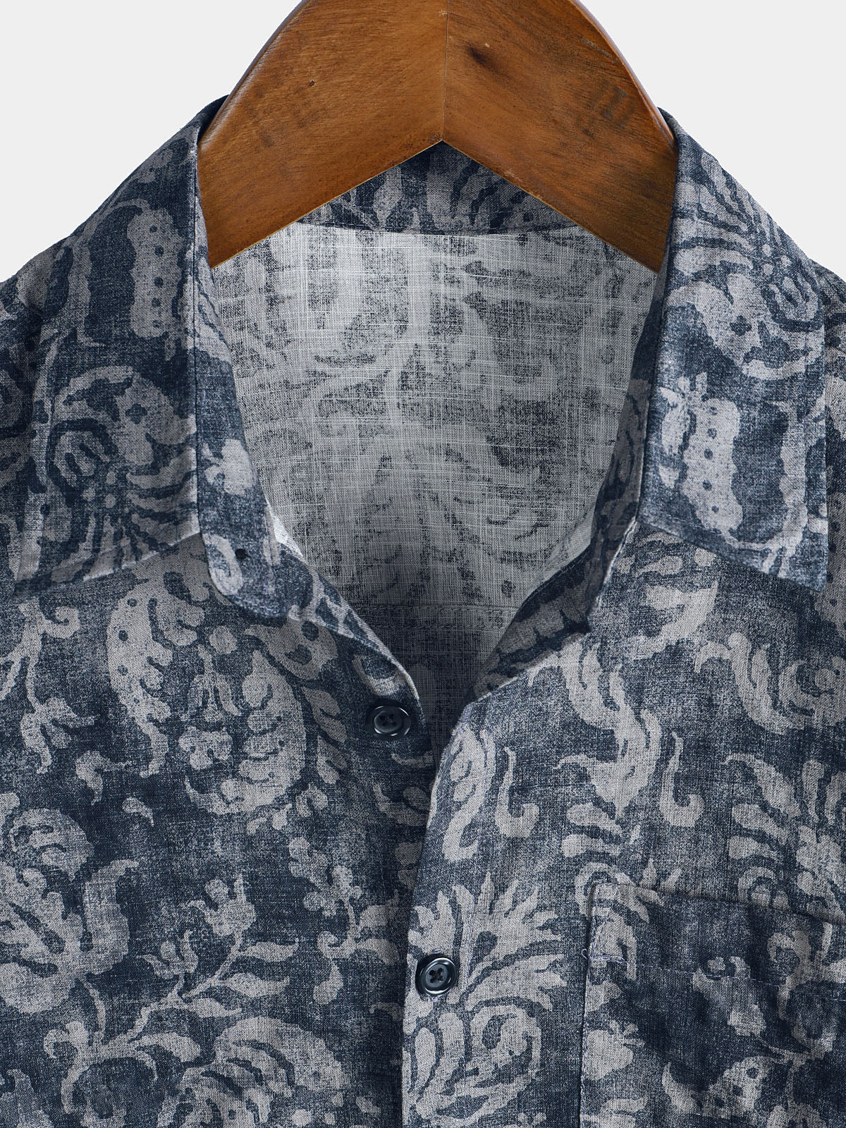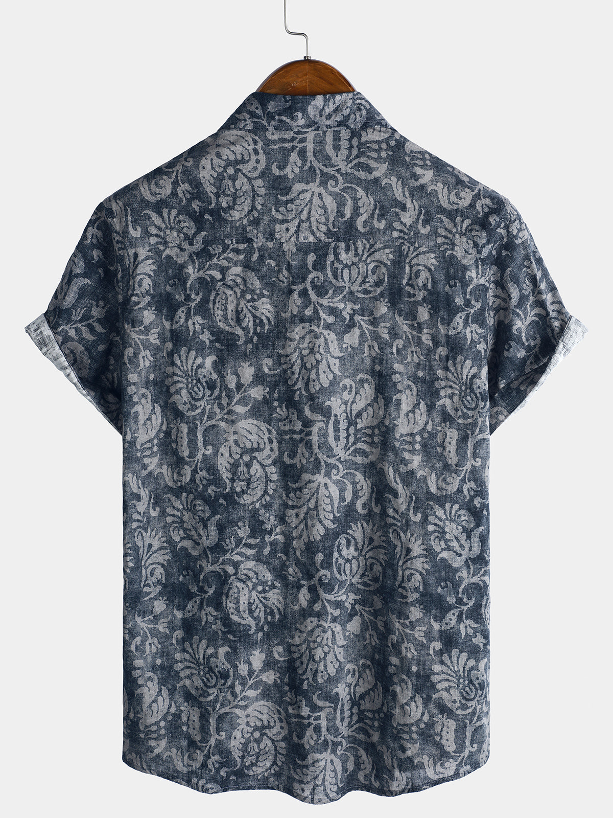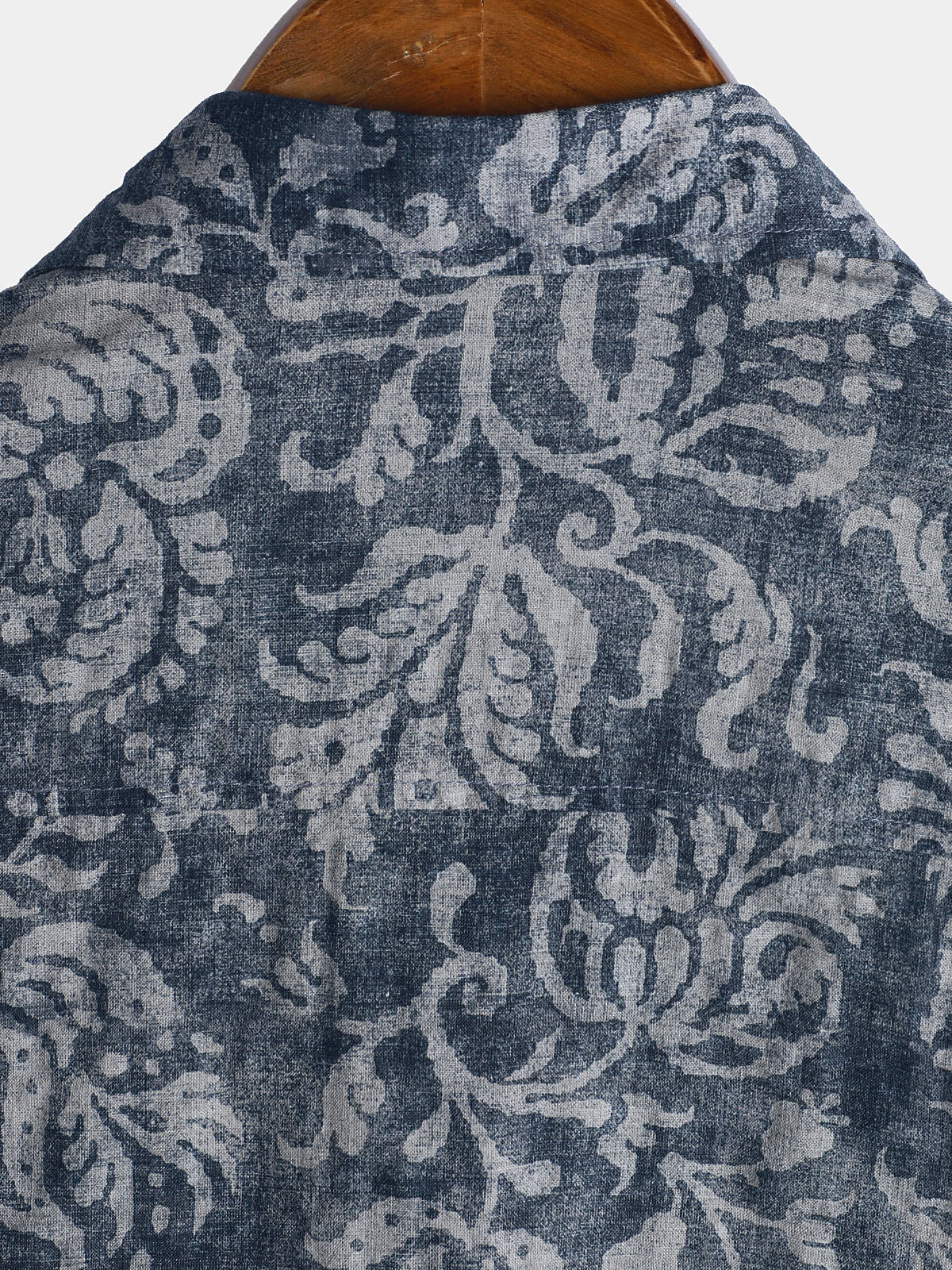 Men's Holiday Floral Print Short Sleeve Button Hawaiian Shirt
