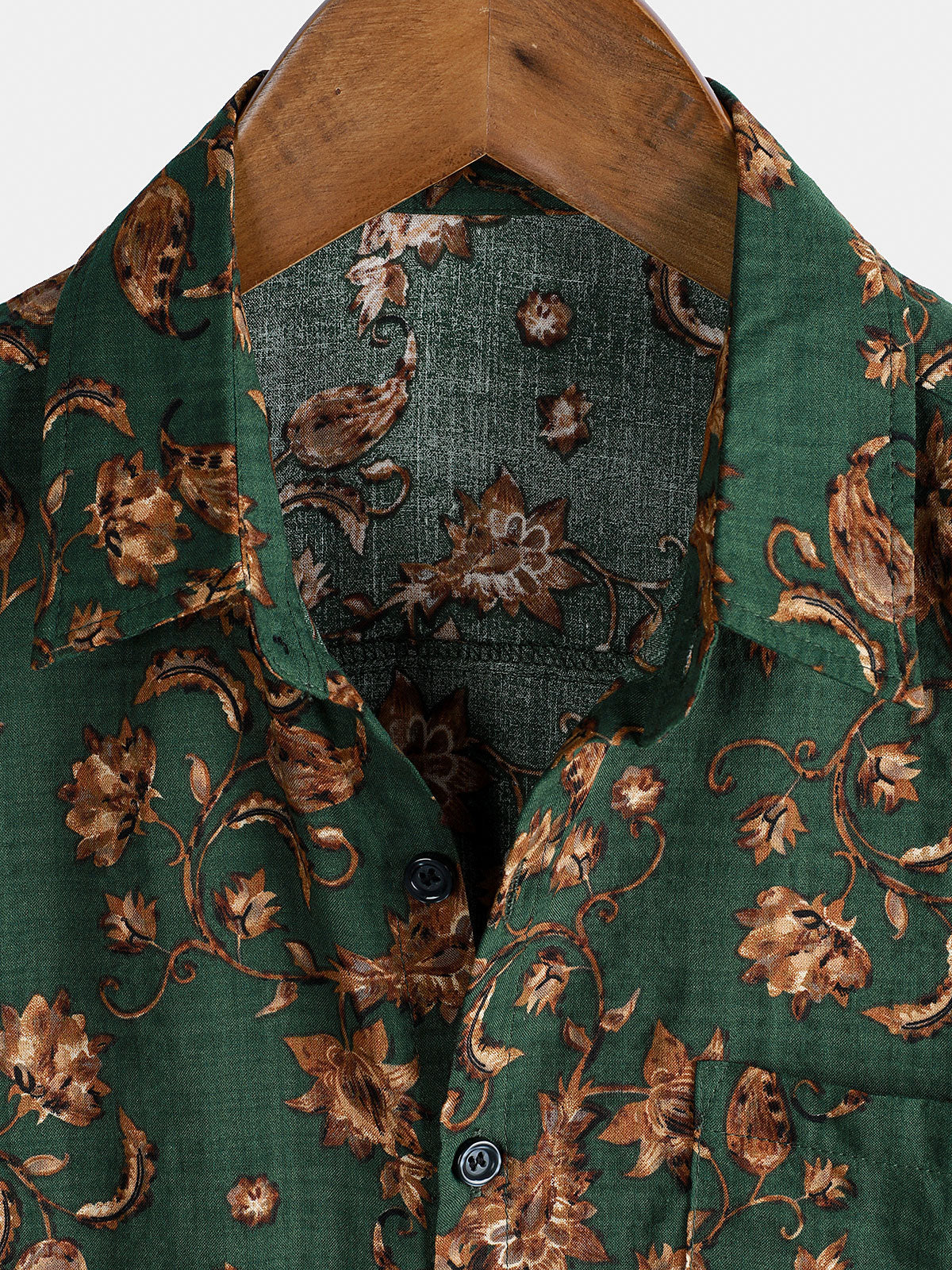 Men's Retro Floral Print Pocket Breathable Short Sleeve Shirt