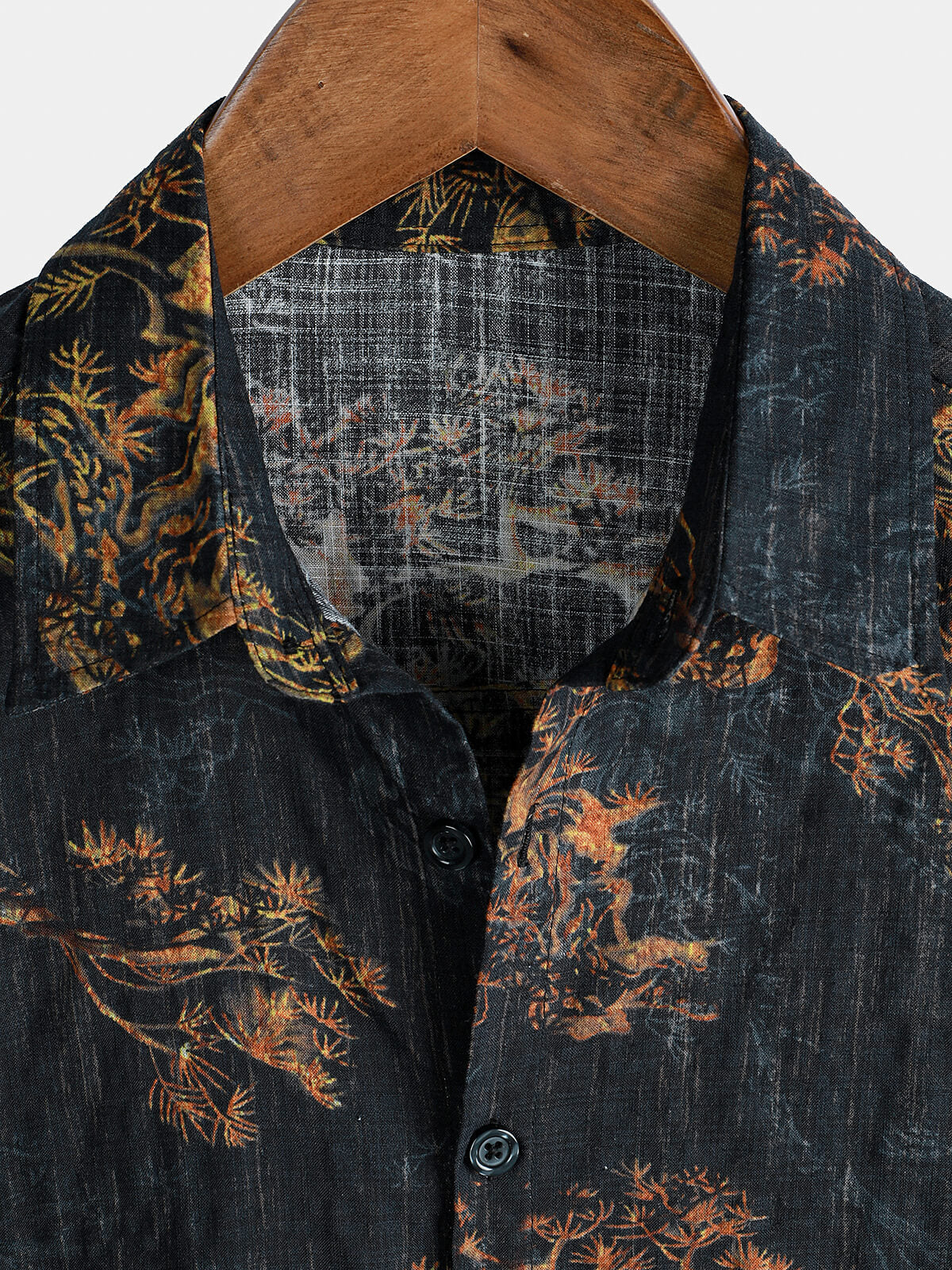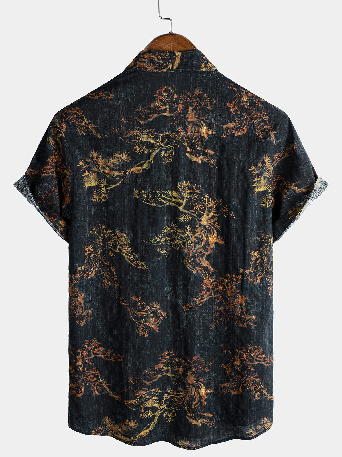Men's Retro Print Breathable Casual Short Sleeve Shirt
