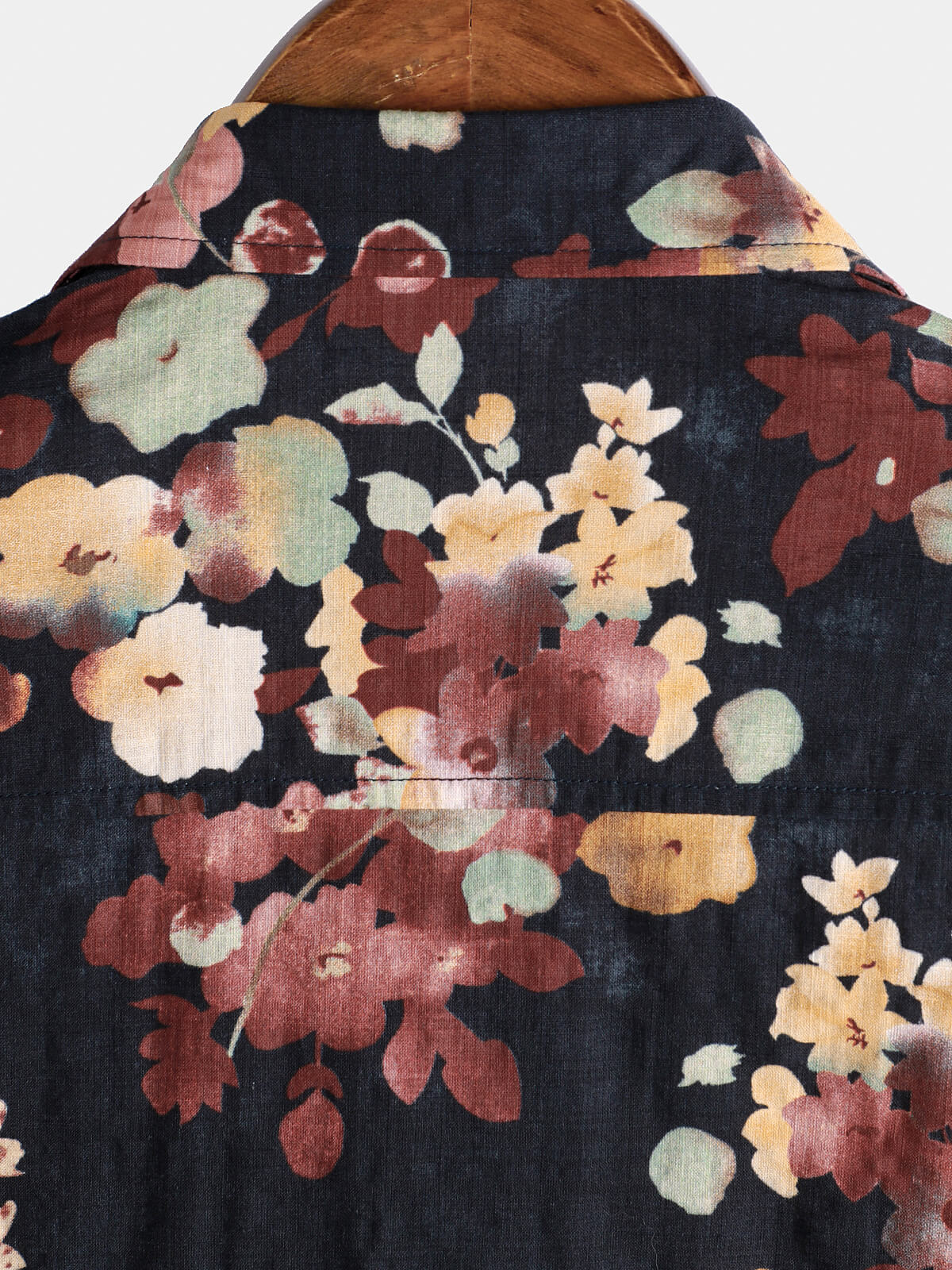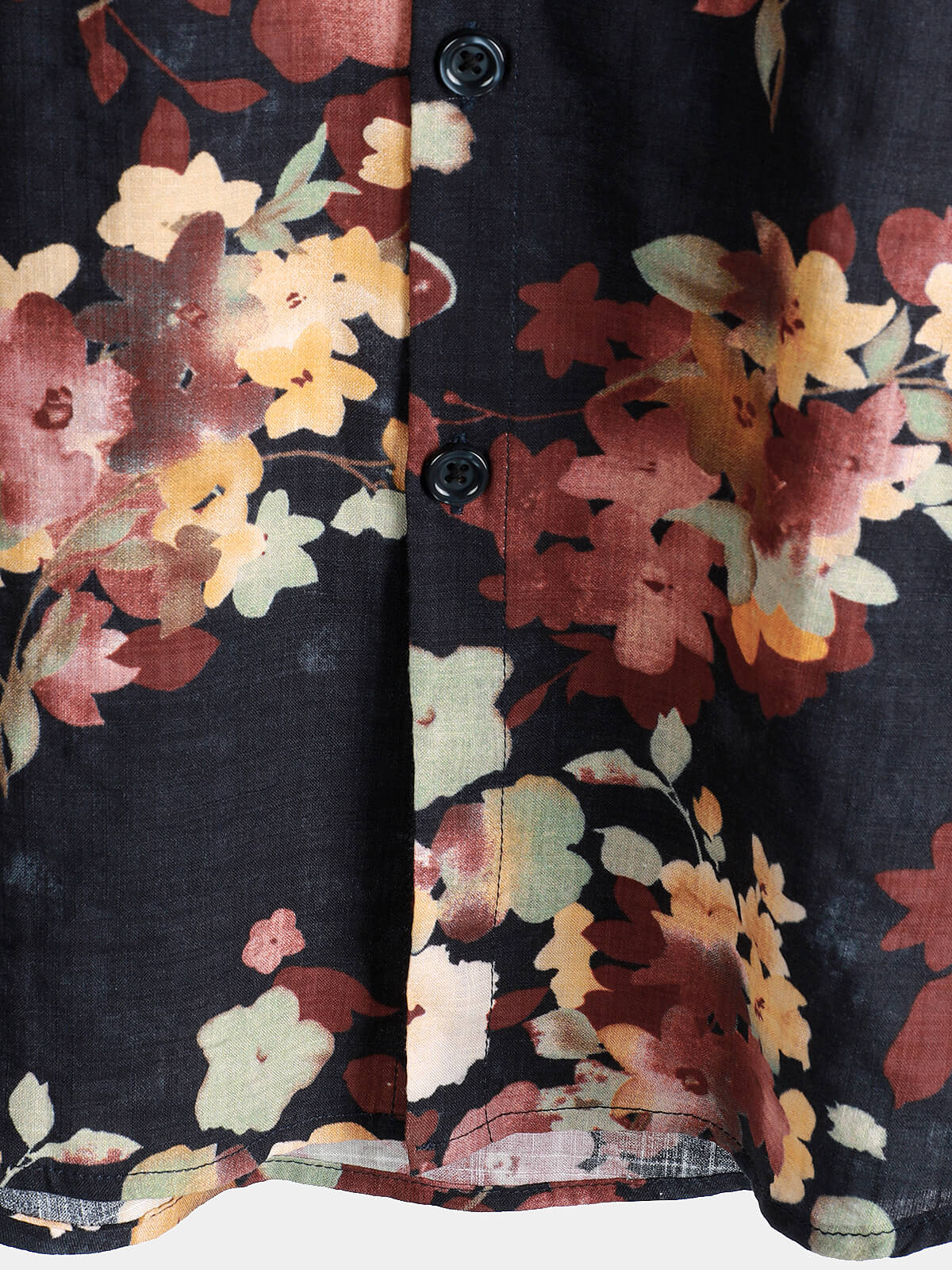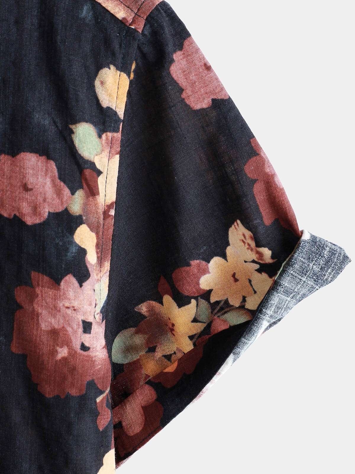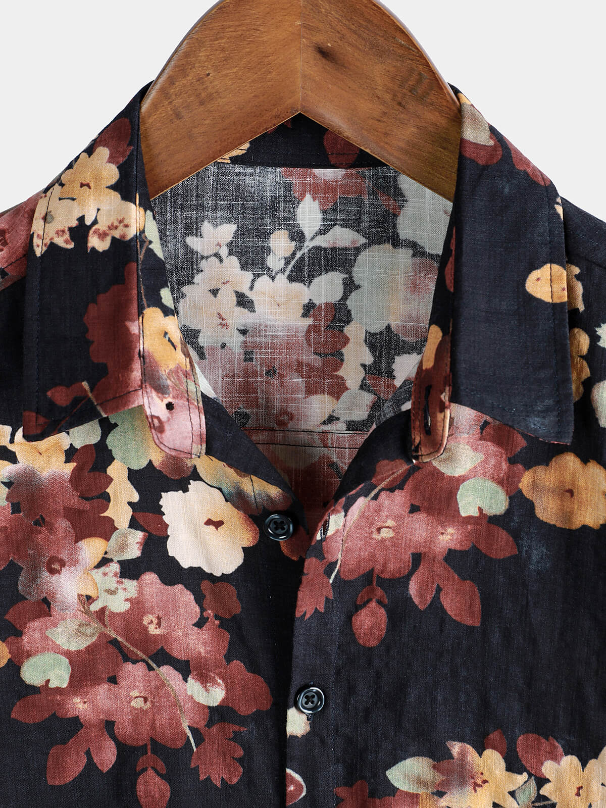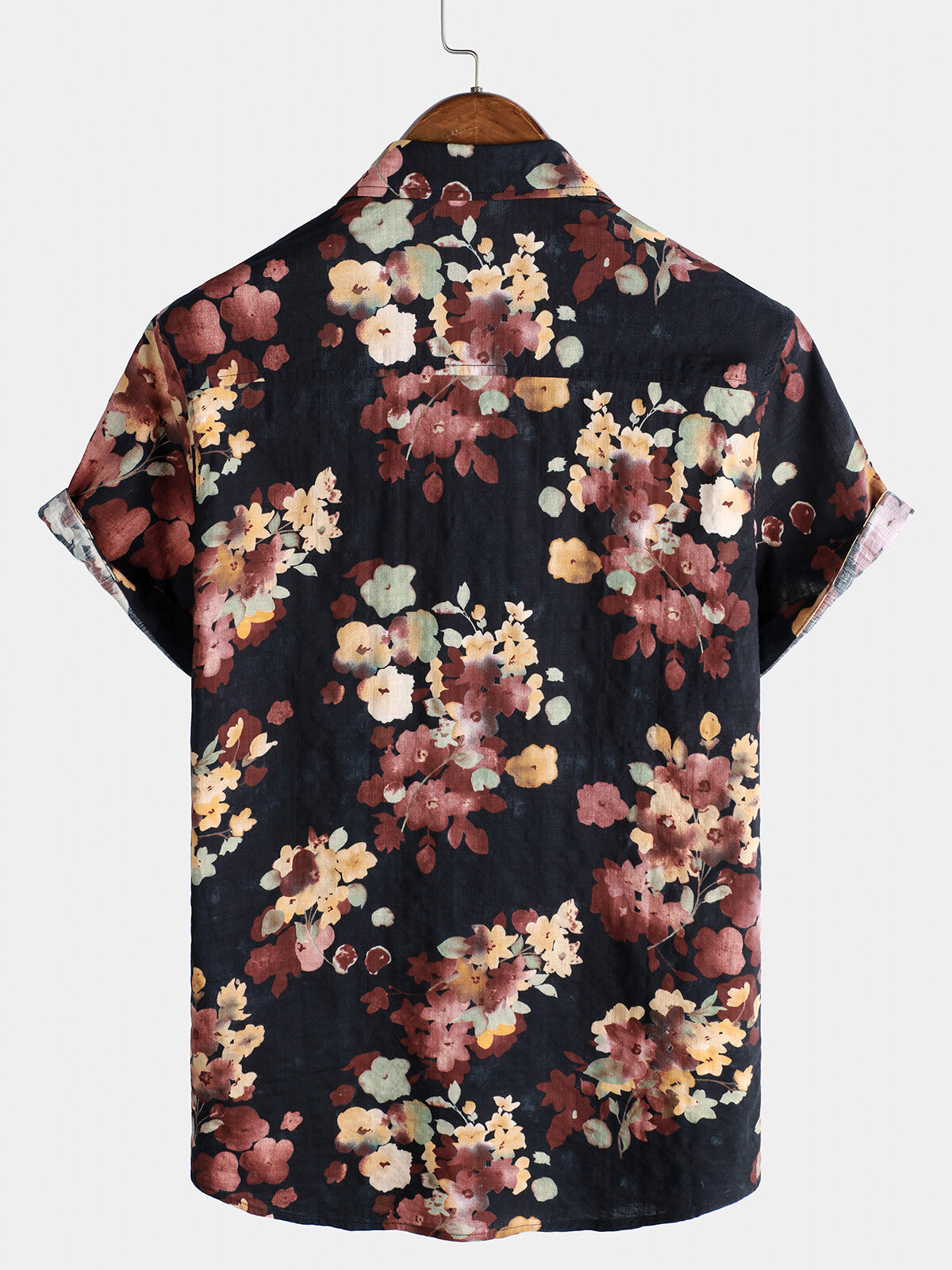 Men's Short Sleeve Floral Casual Cotton Beach Shirt