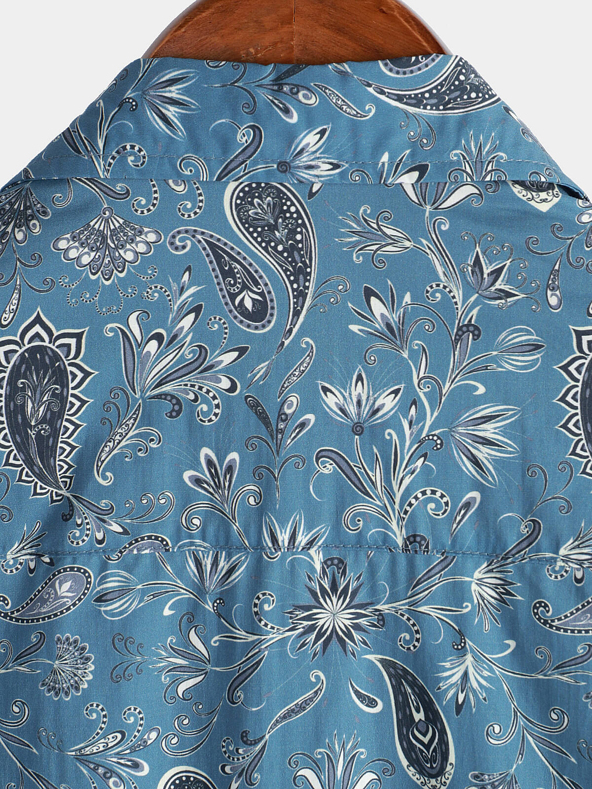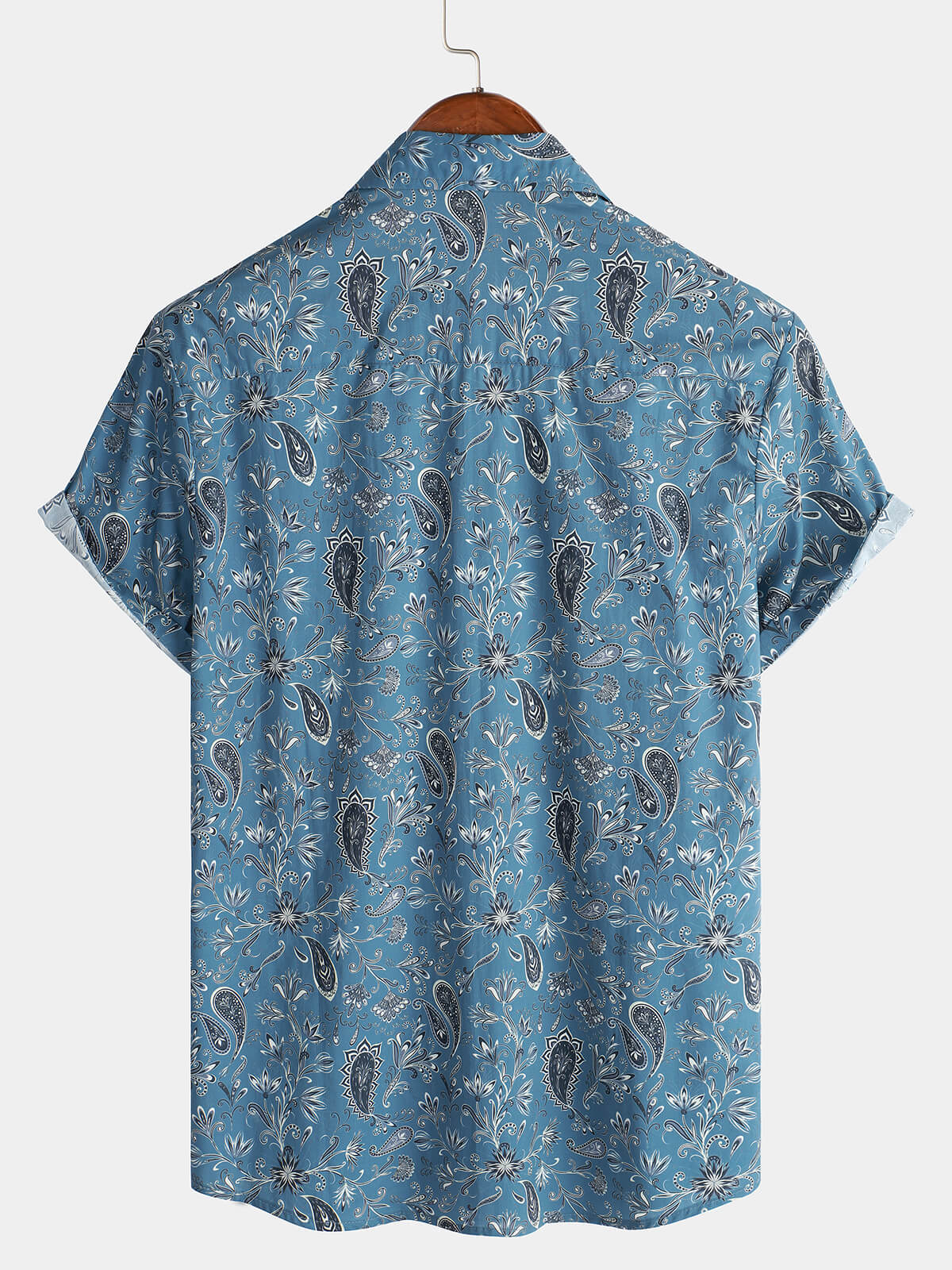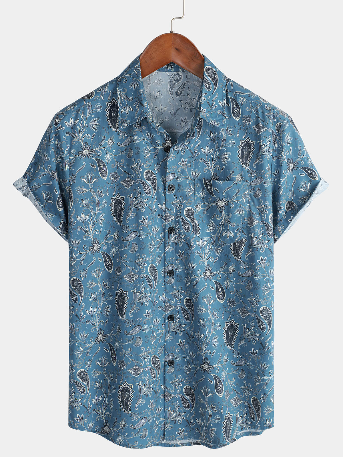 Men's Short Sleeve Holiday Summer Paisley Floral Button Up Hawaiian Shirt