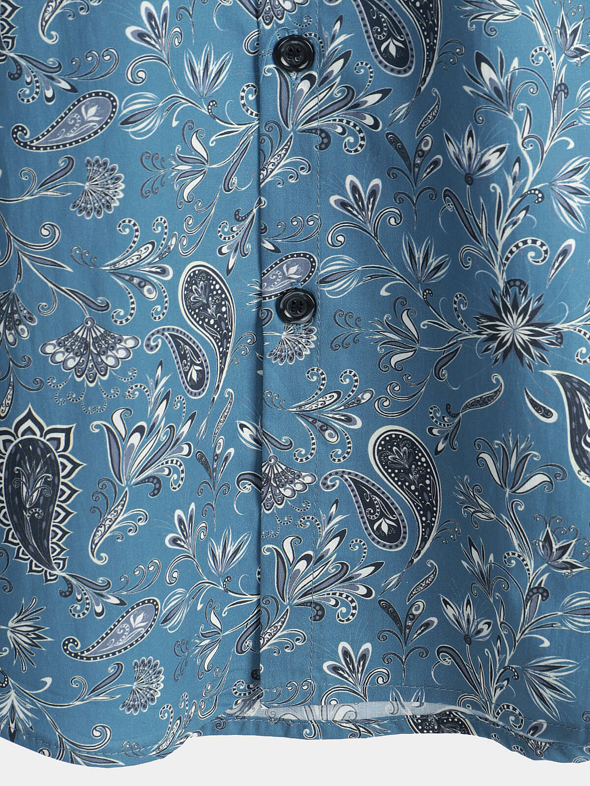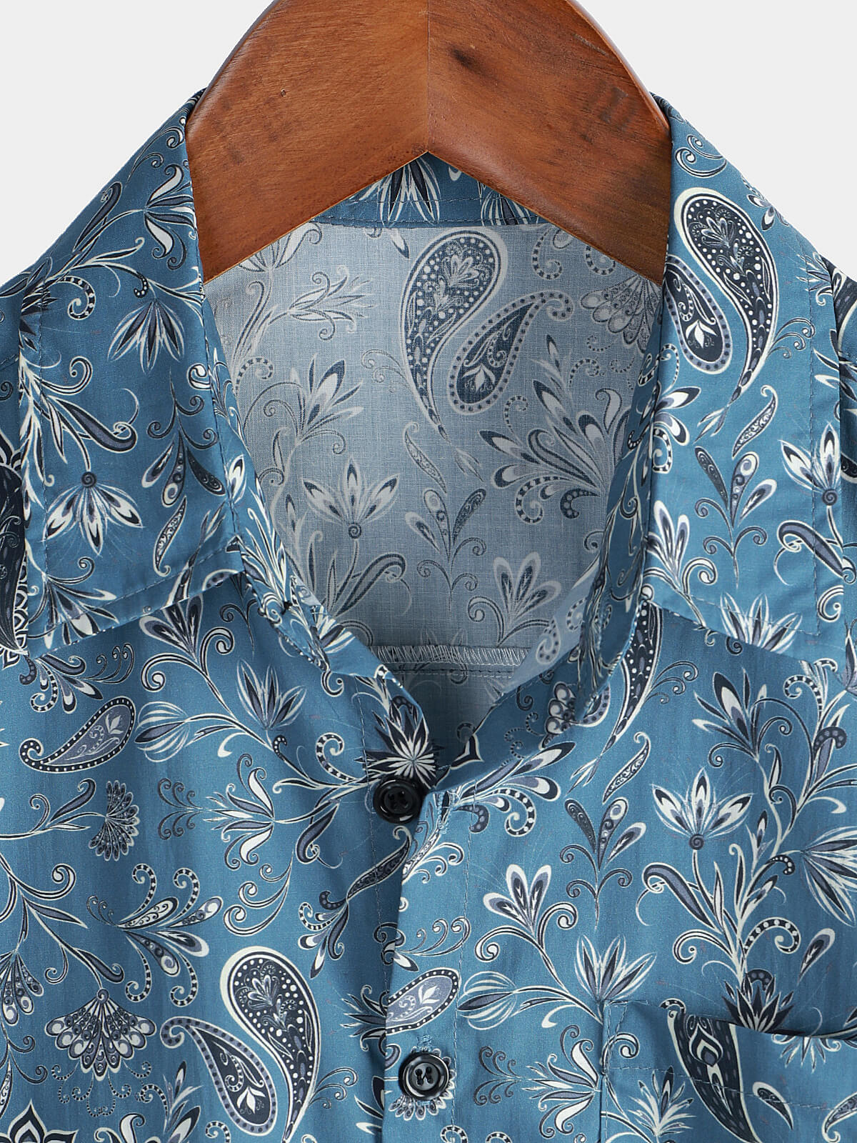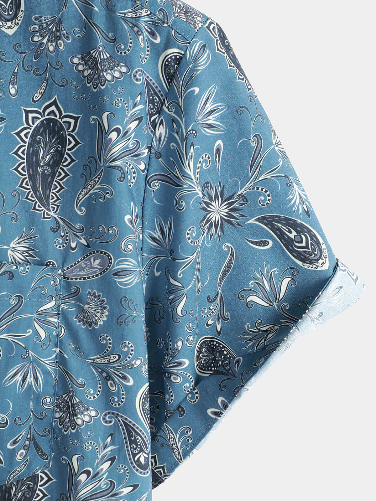 Men's Short Sleeve Holiday Summer Paisley Floral Button Up Hawaiian Shirt