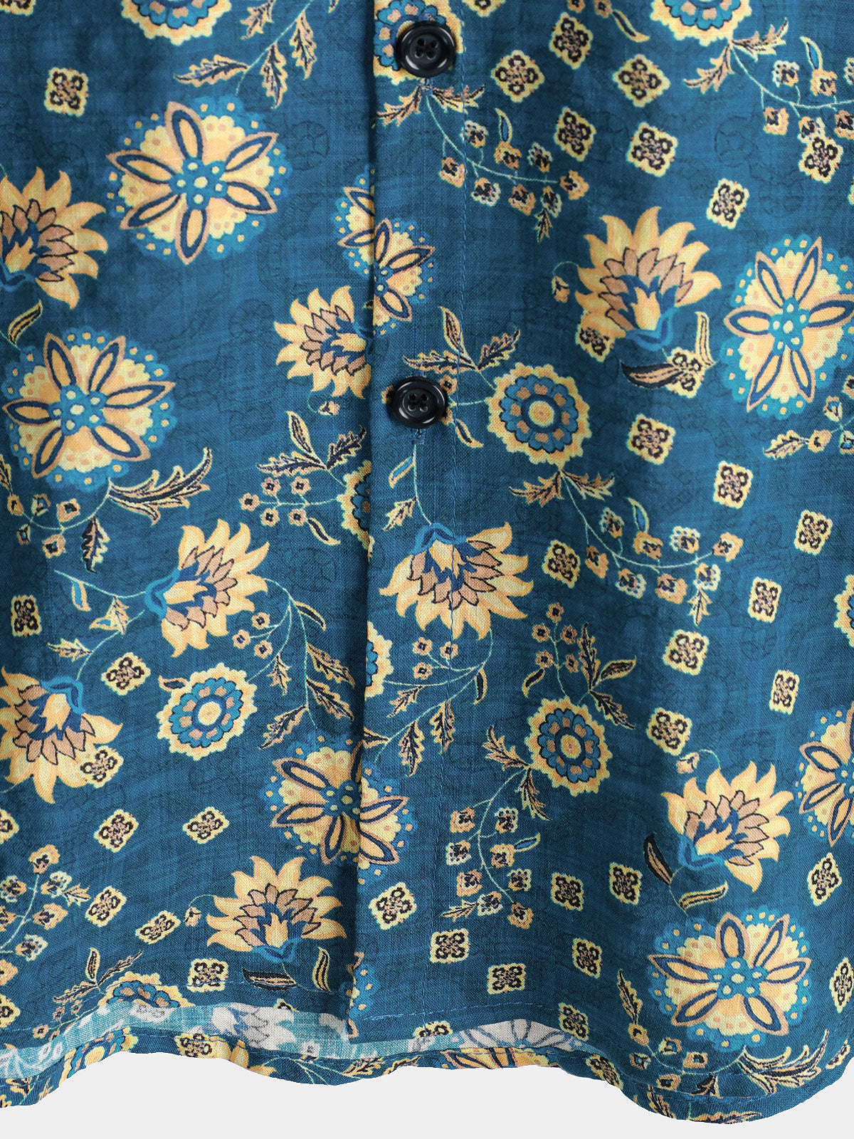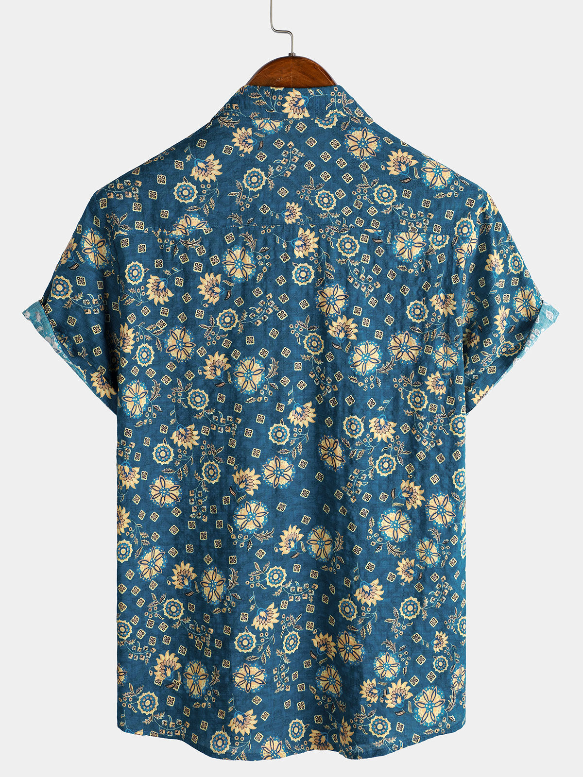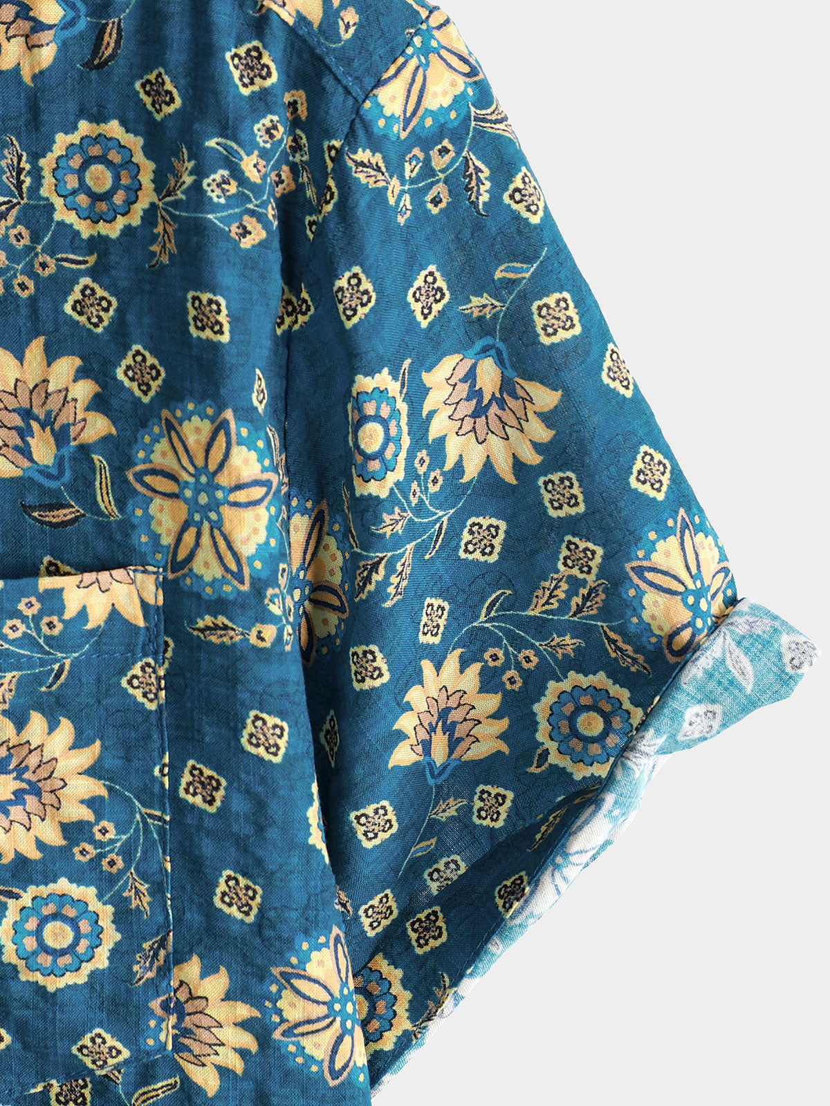 Men's Short Sleeve Retro Print Pocket Beach Shirt