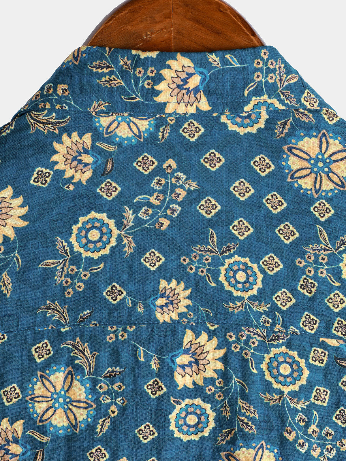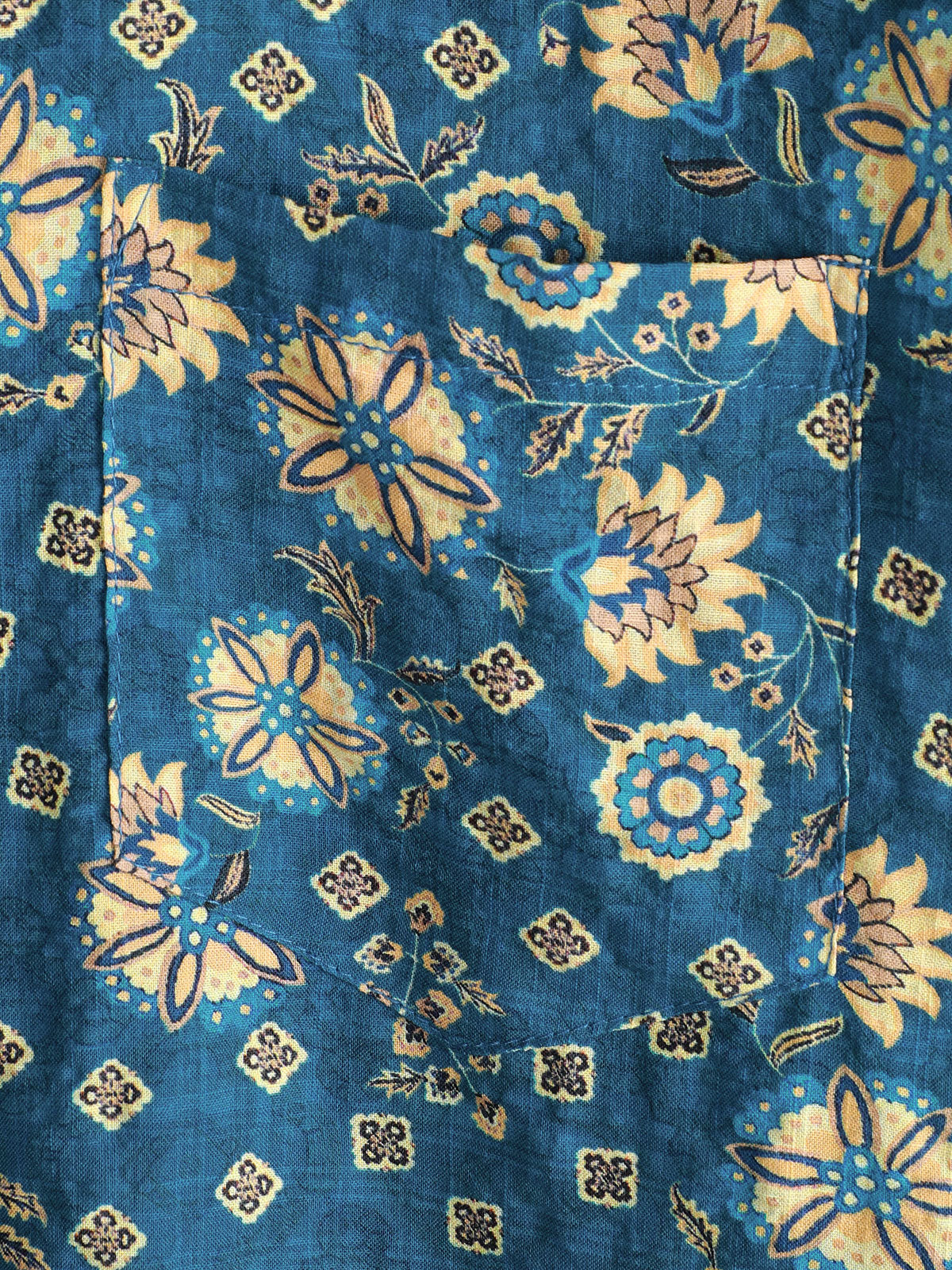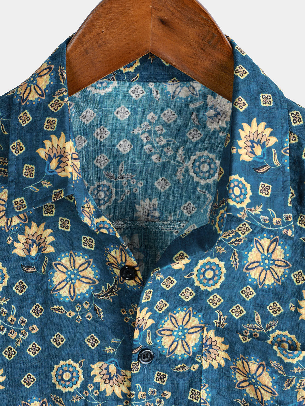 Men's Short Sleeve Retro Print Pocket Beach Shirt