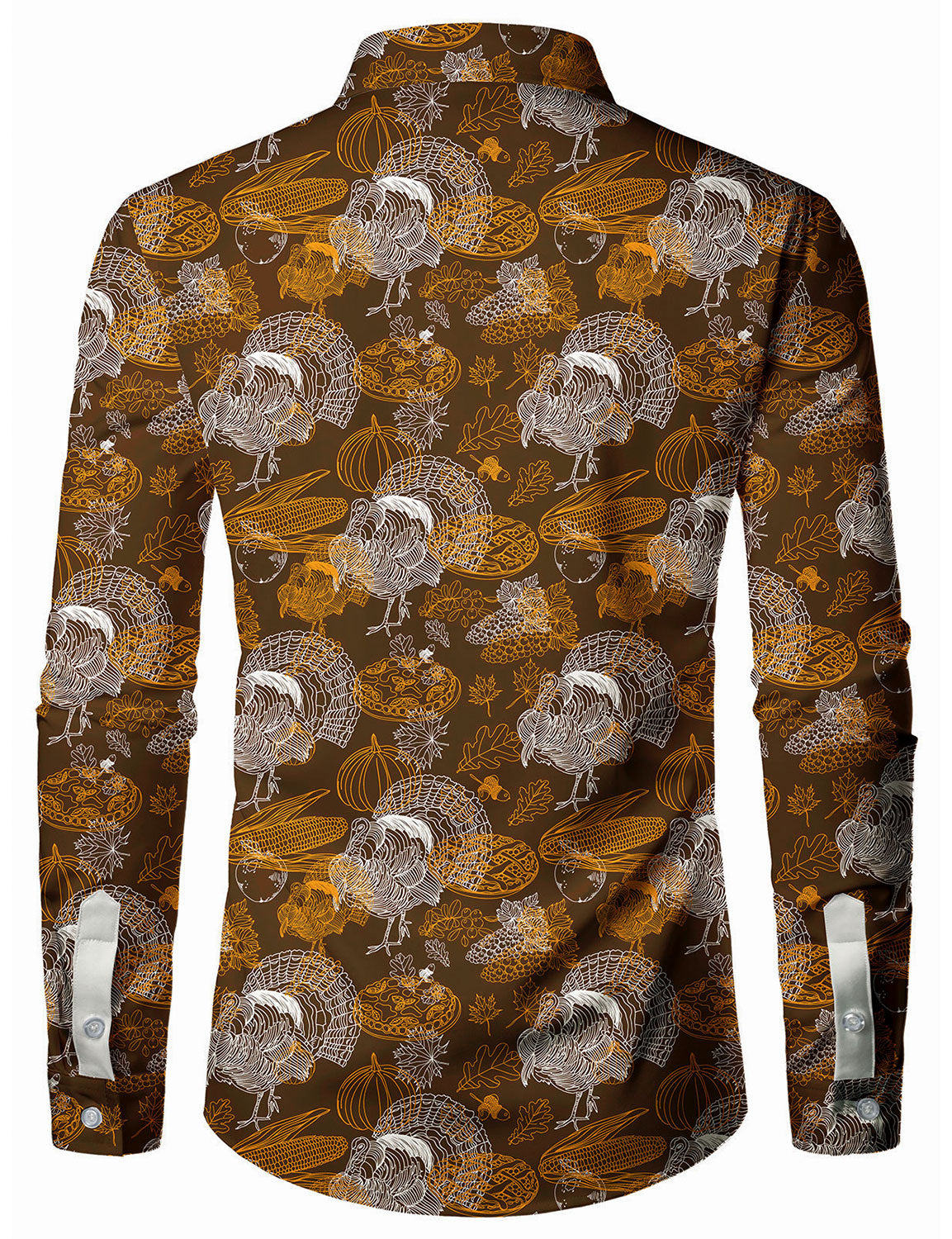Men's Vintage Thanksgiving Turkey Holiday Brown Button Long Sleeve Shirt