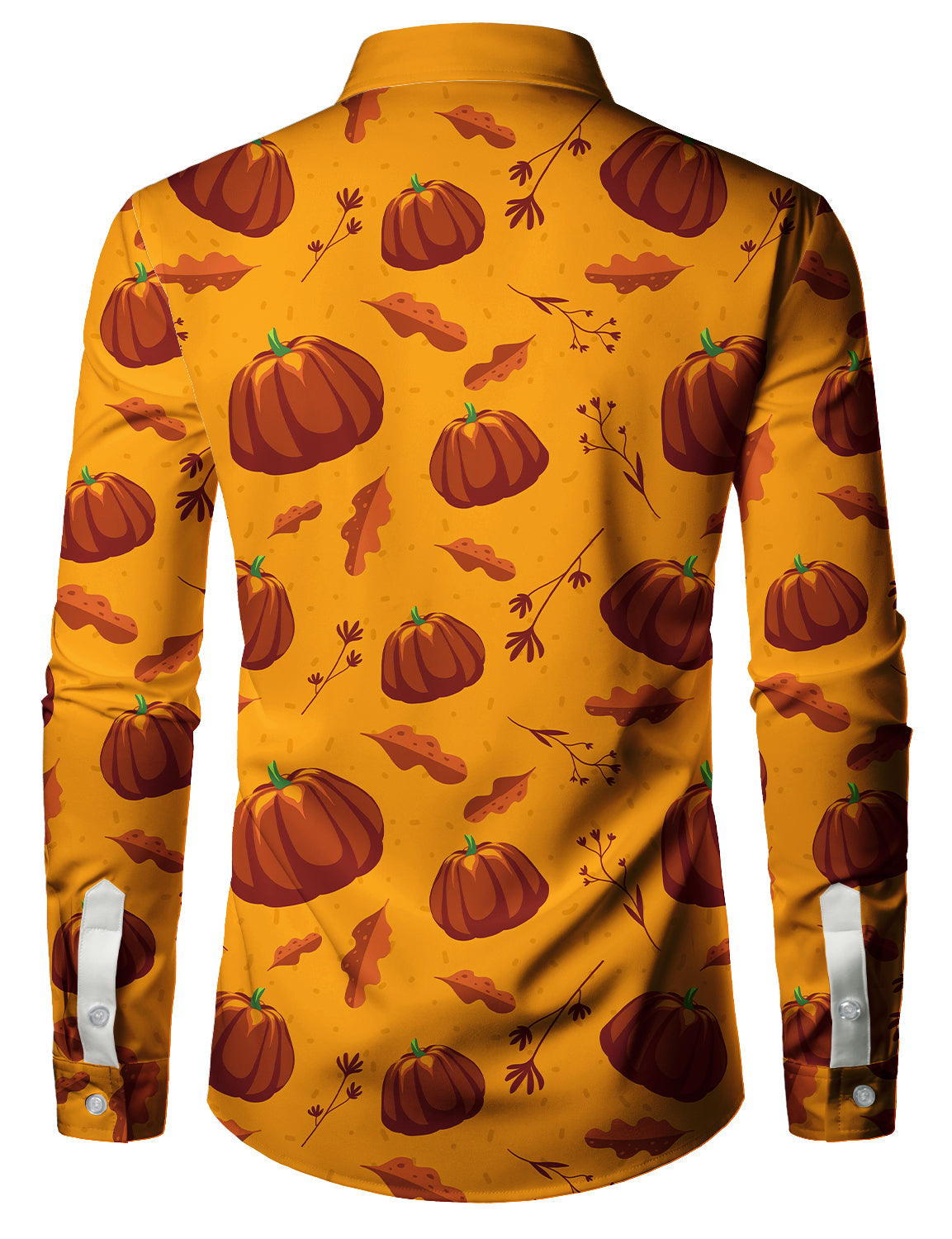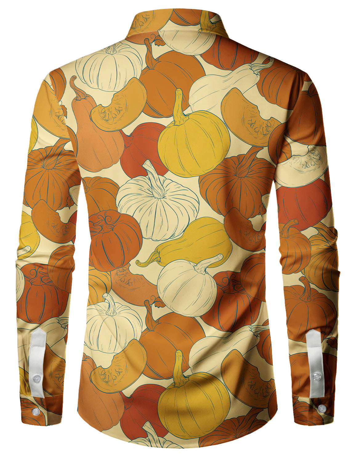 Men's Thanksgiving Turkey Pumpkin Holiday Button Long Sleeve Shirt