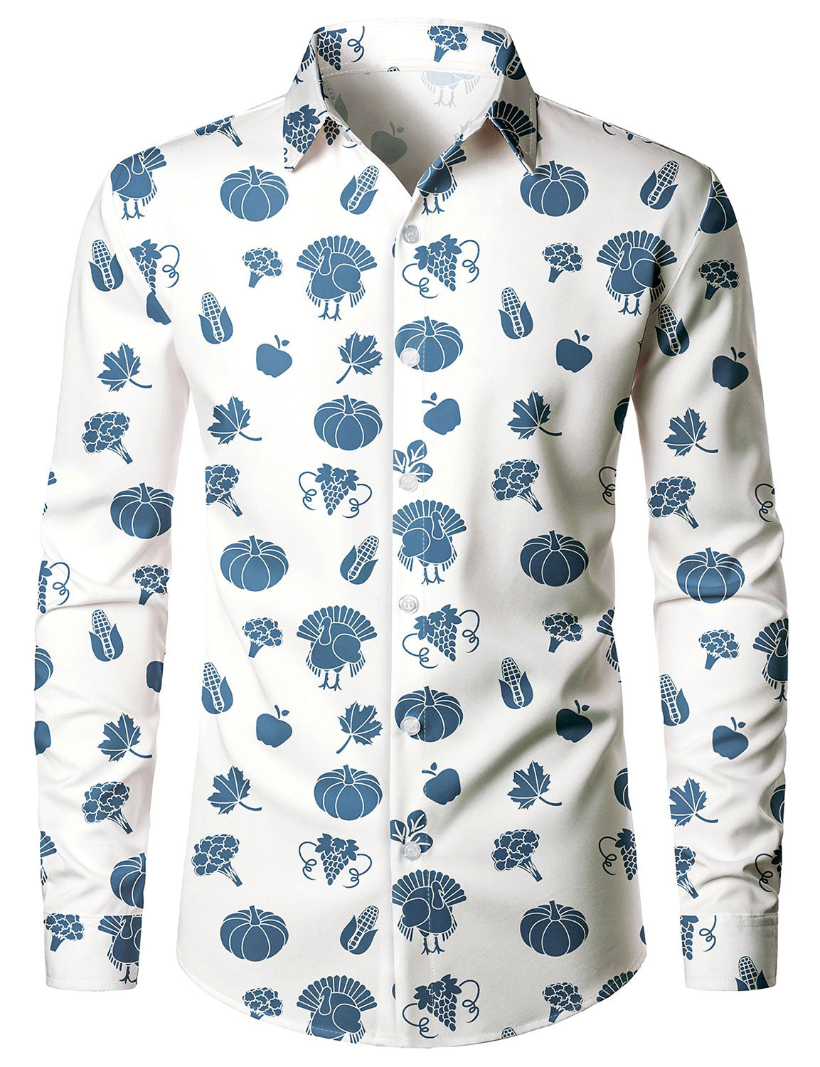 Men's Thanksgiving Funny Print Holiday Button Long Sleeve Shirt