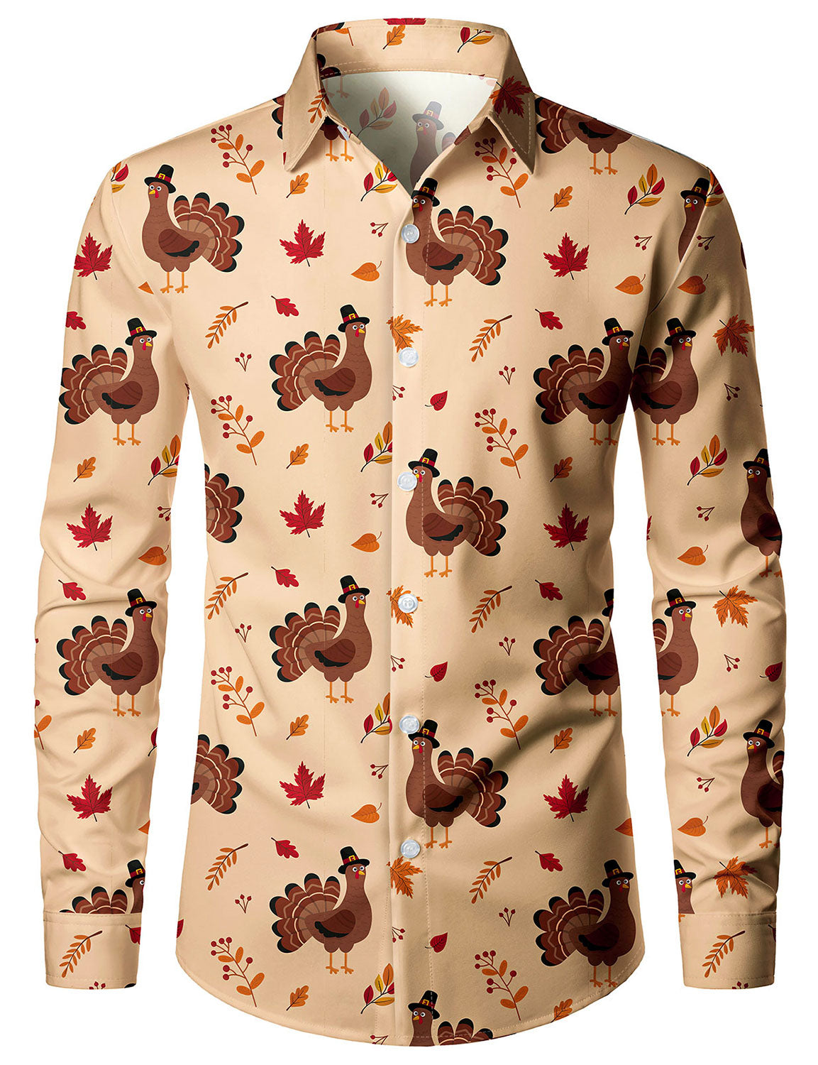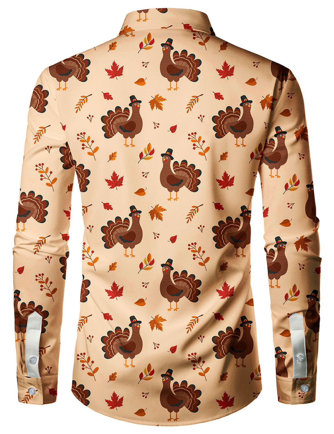 Men's Thanksgiving Festival Cute Turkey Button Up Long Sleeve Holiday Shirt