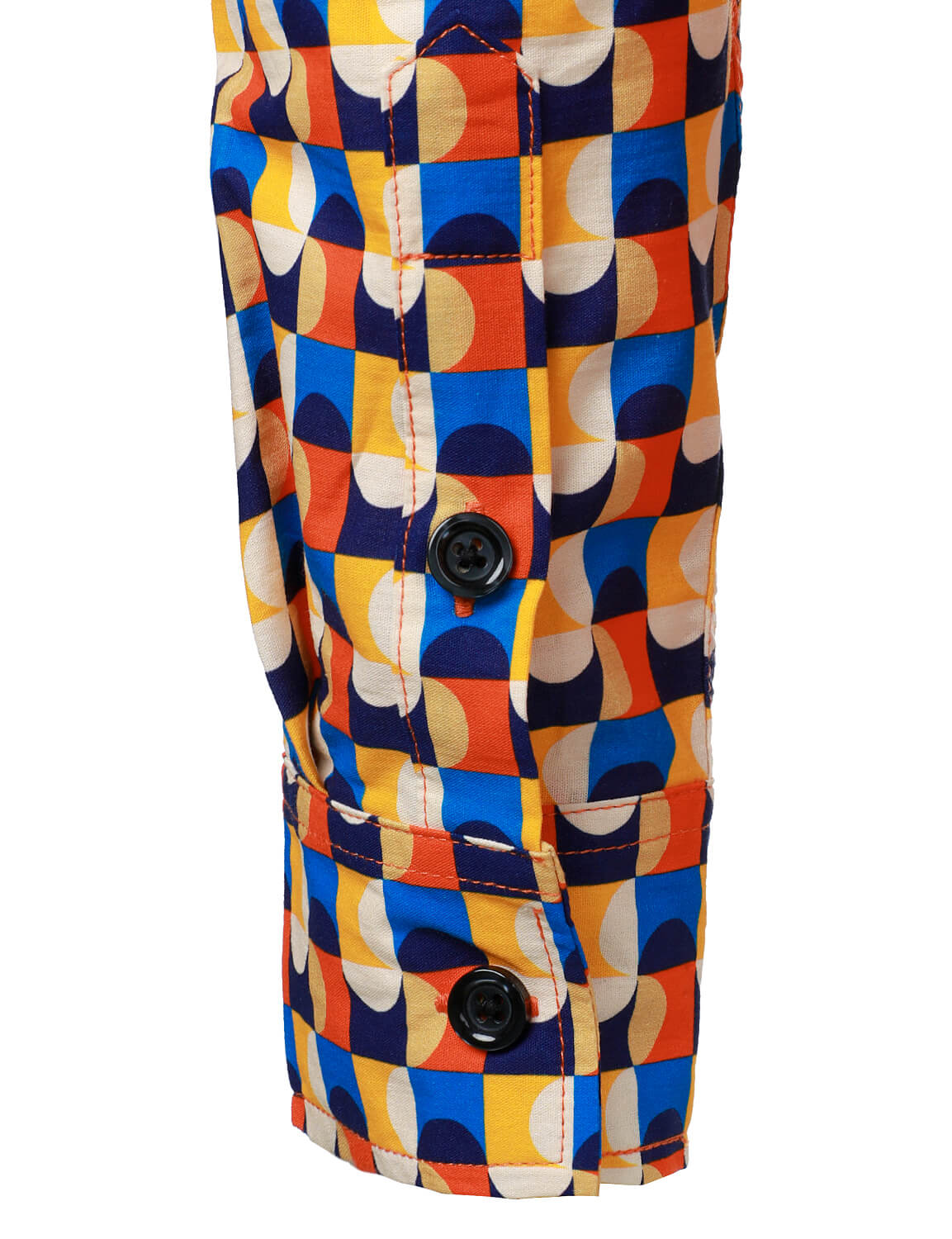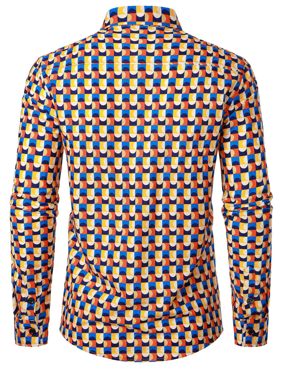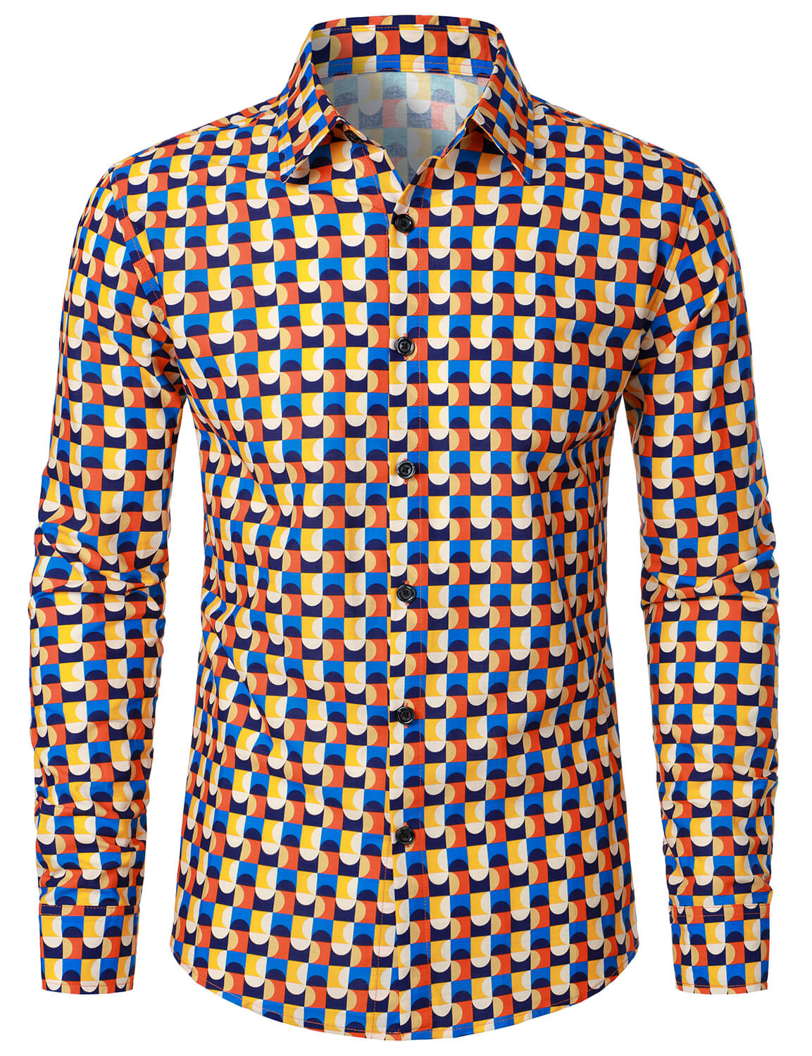 Men's Cotton Geometric Button Up Casual Long Sleeve Shirt