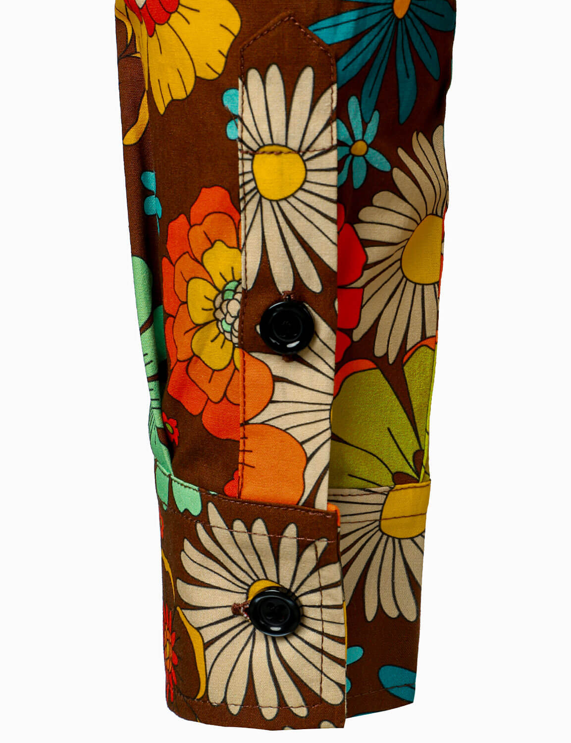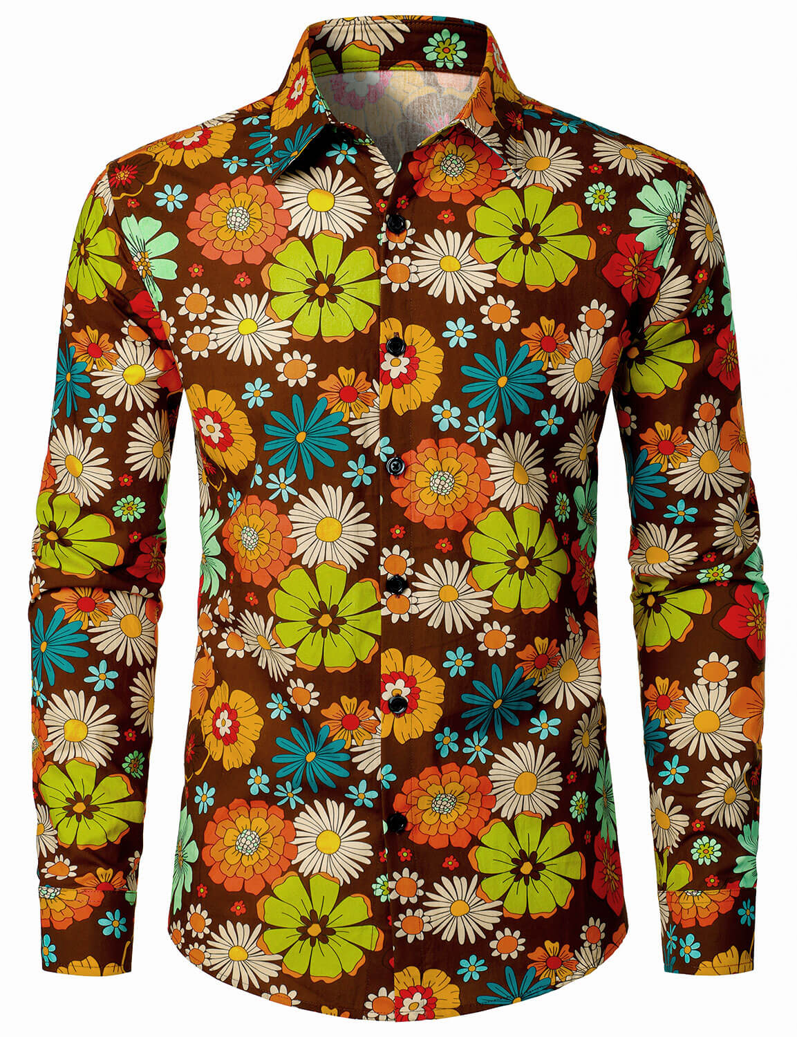 Men's 70s Vintage Floral Cotton Button Up Long Sleeve Shirt