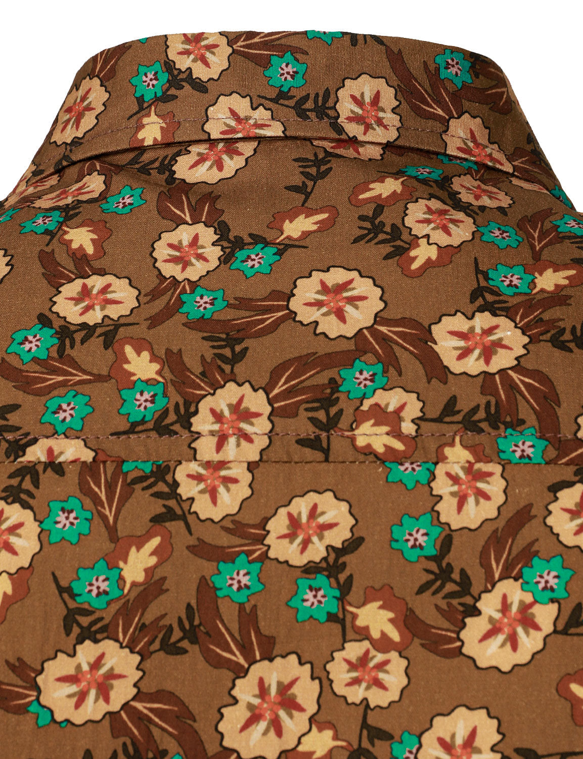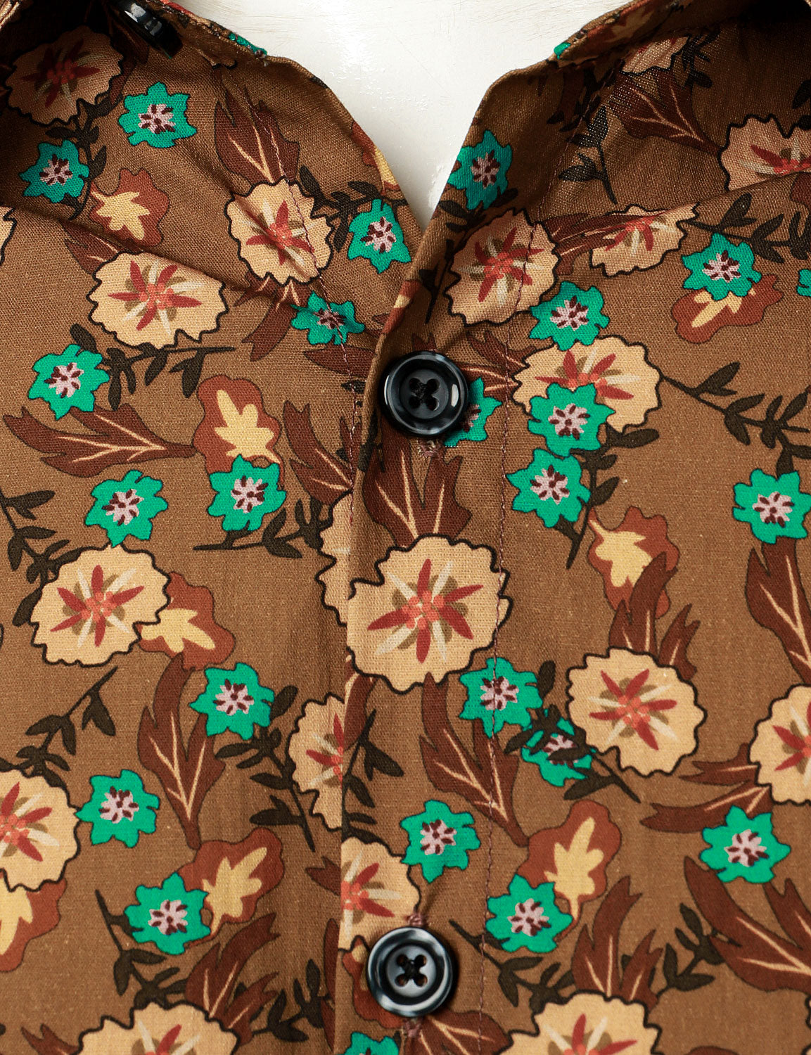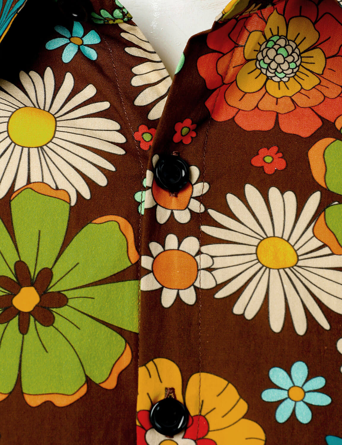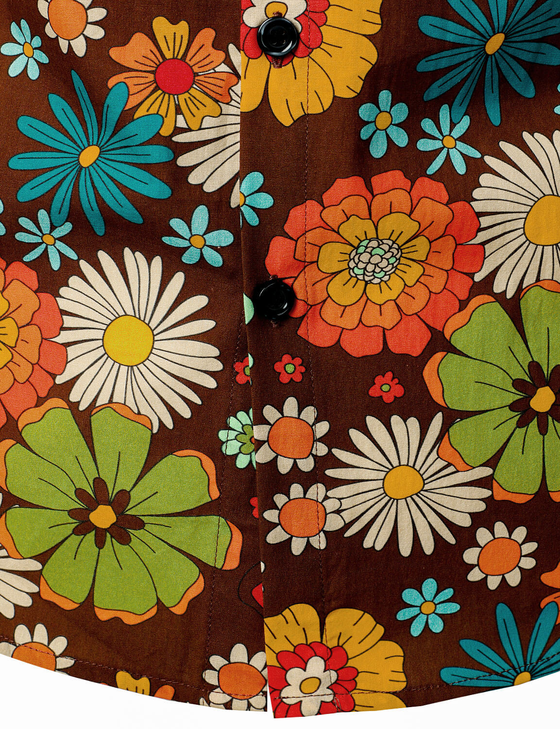 Men's Vintage Floral Breathable Cotton Brown 70s Short Sleeve Shirt