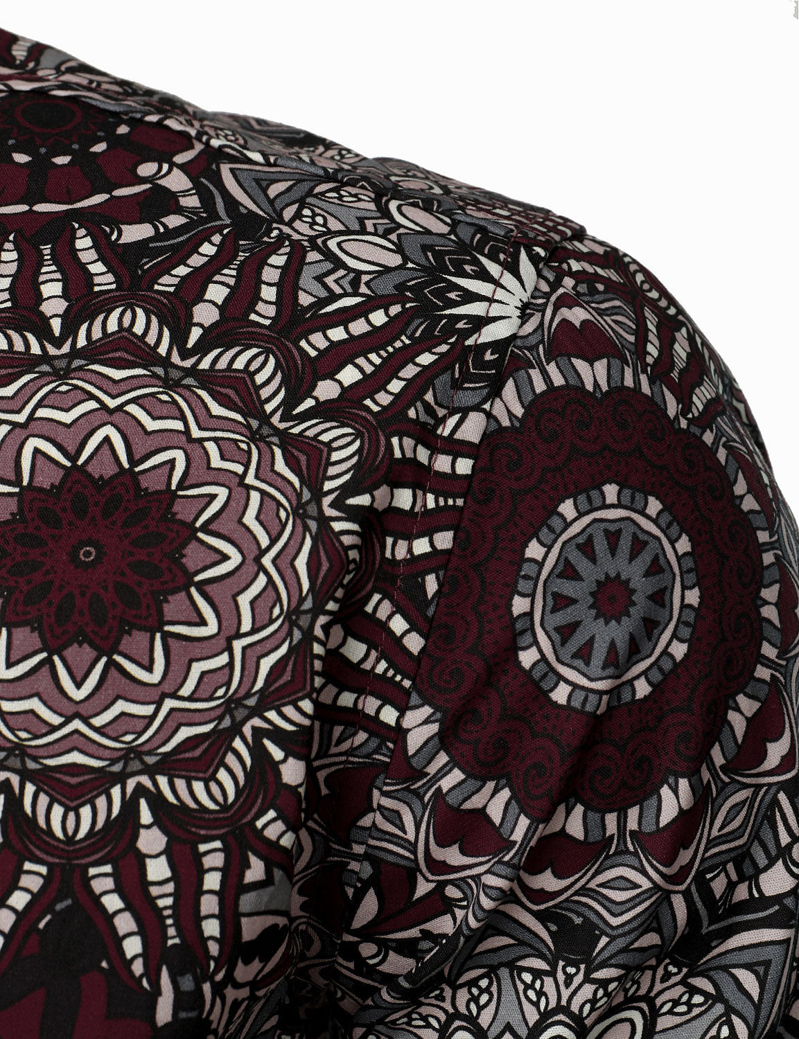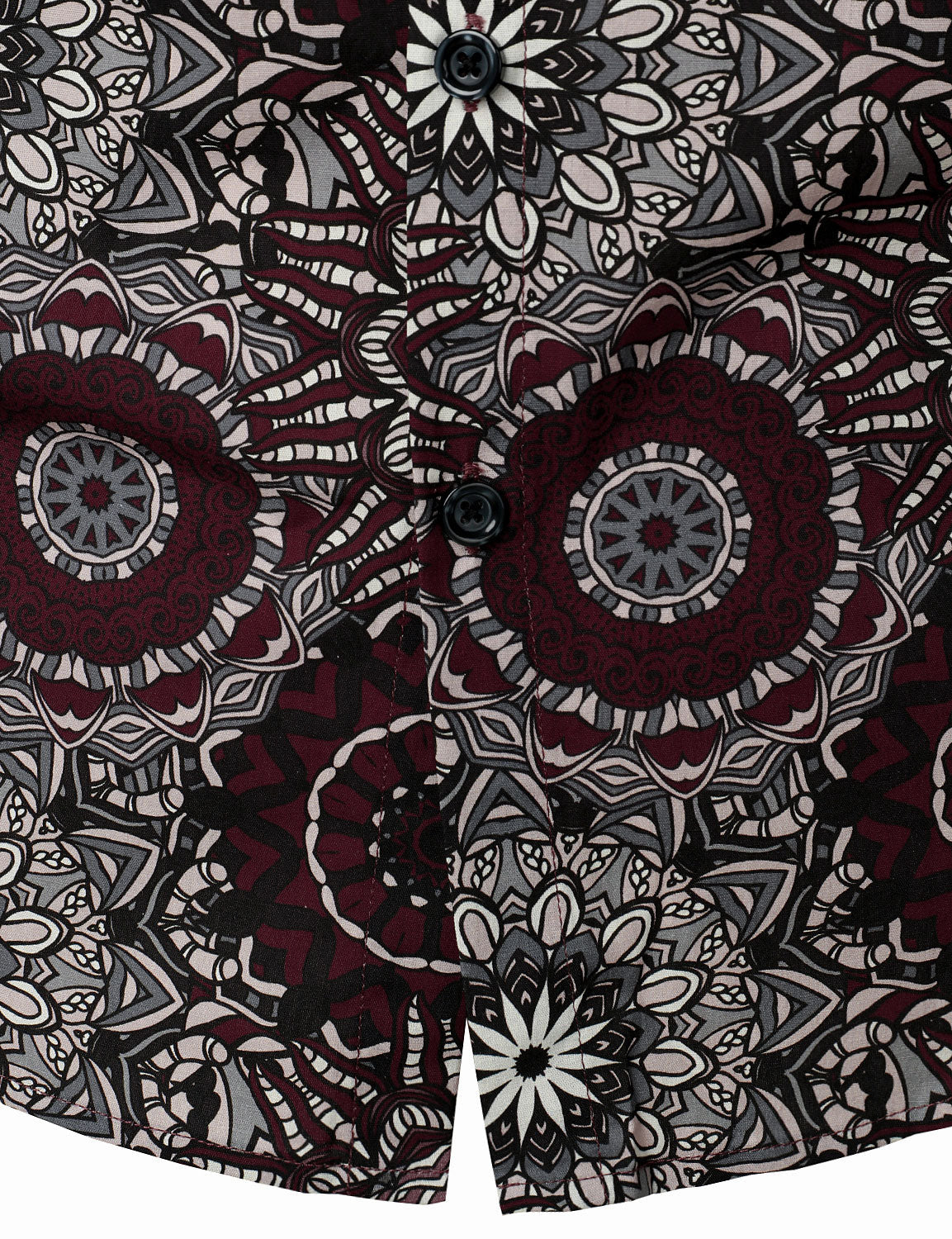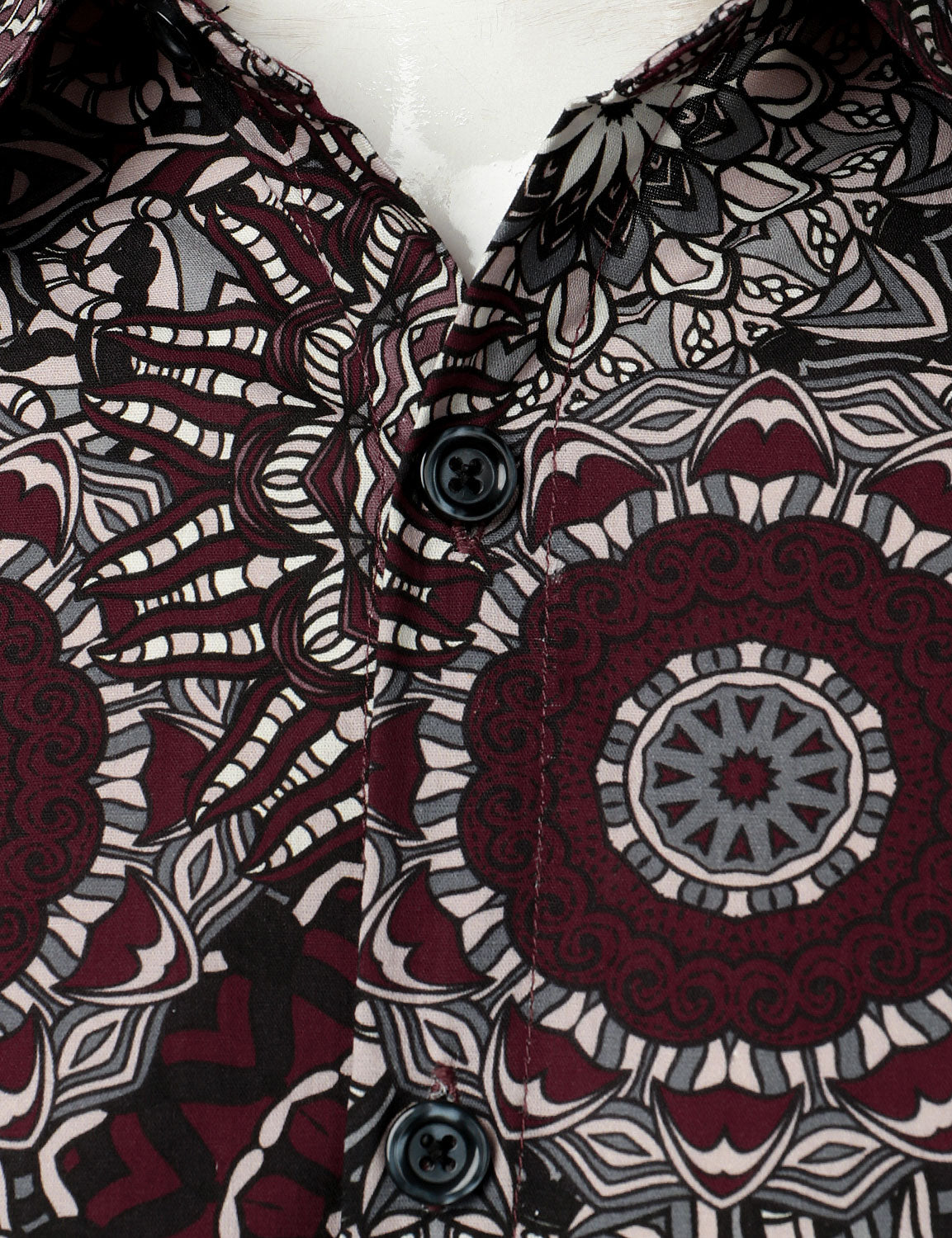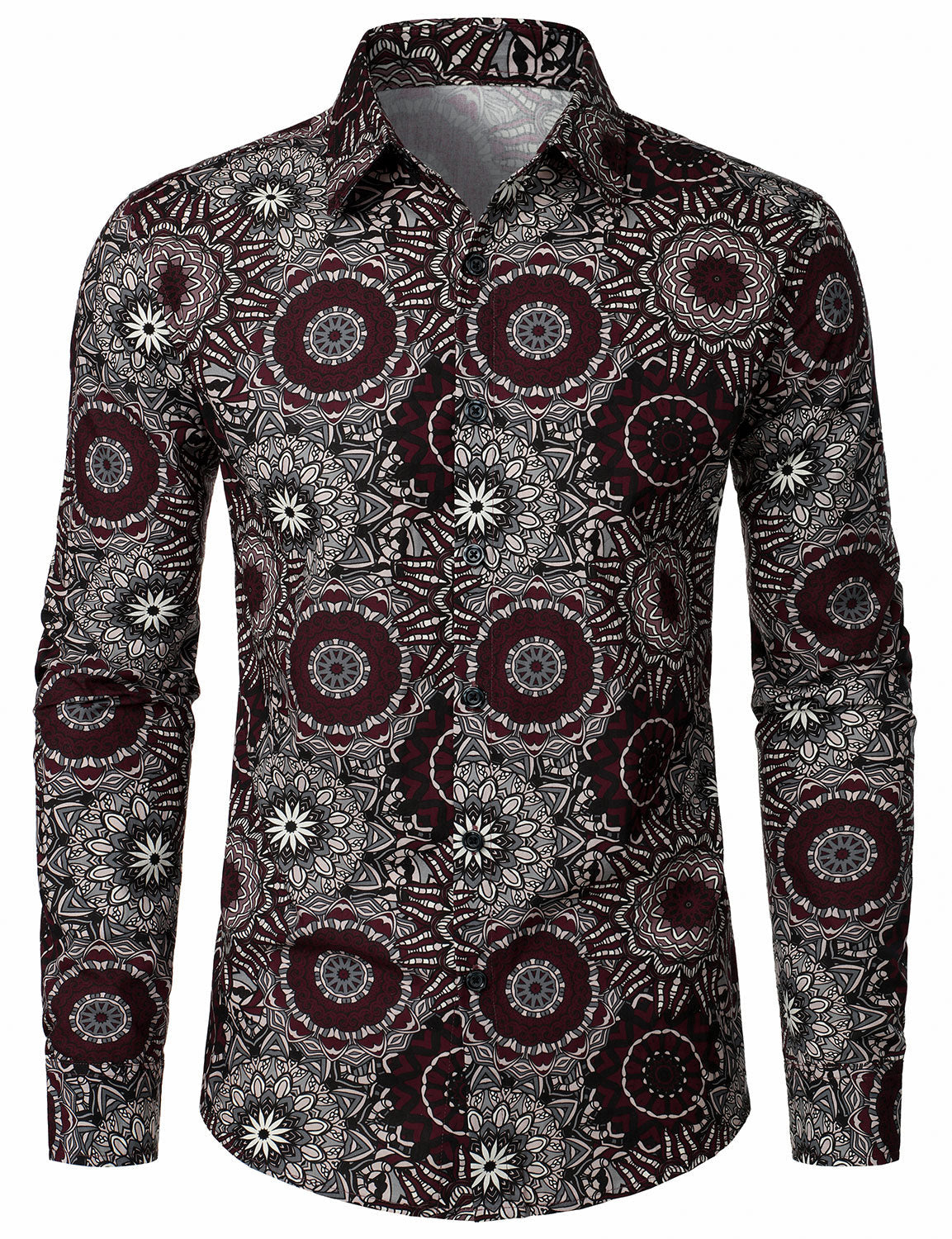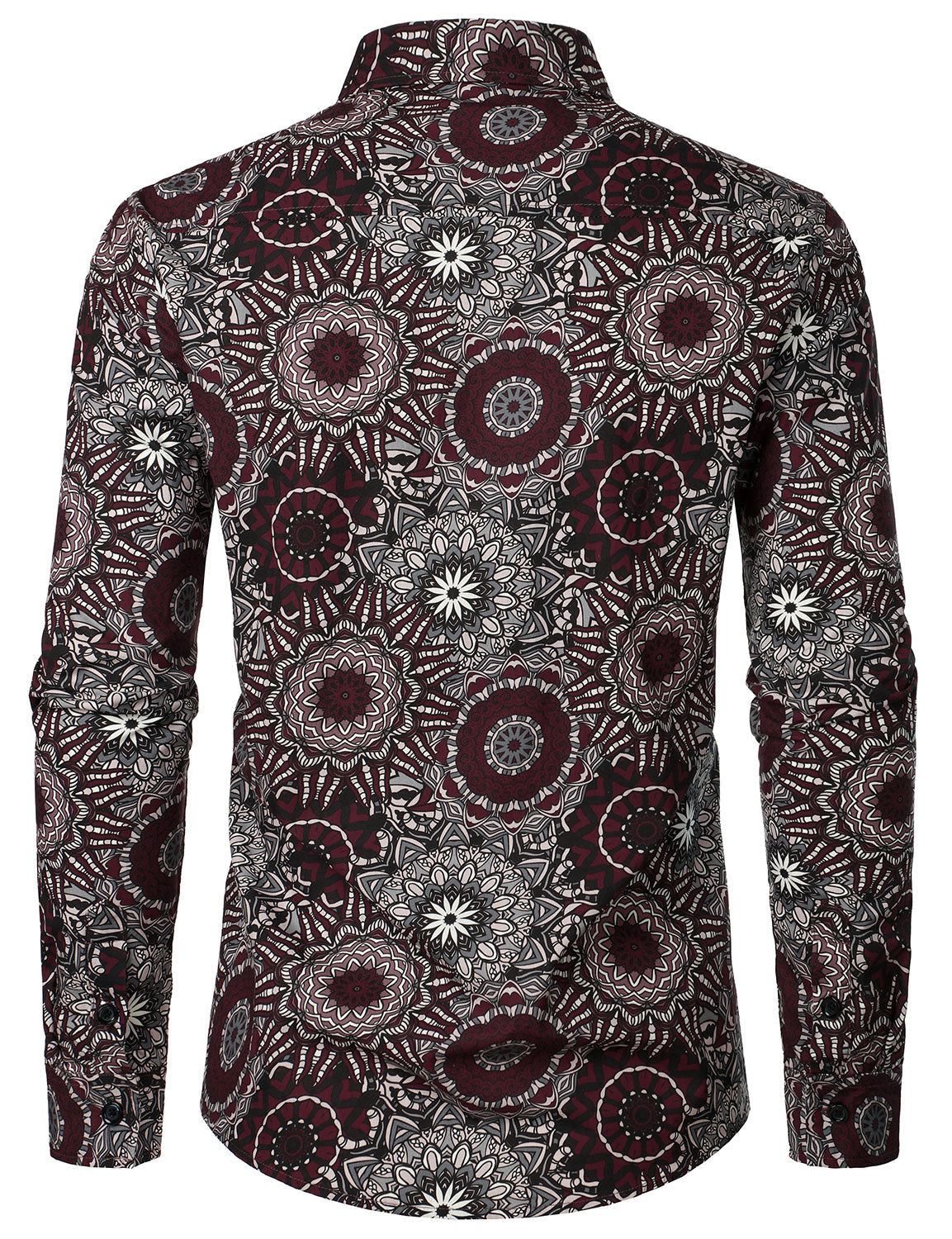 Men's Casuual Mandala Print Cotton Long Sleeve Button Up Dress Shirt