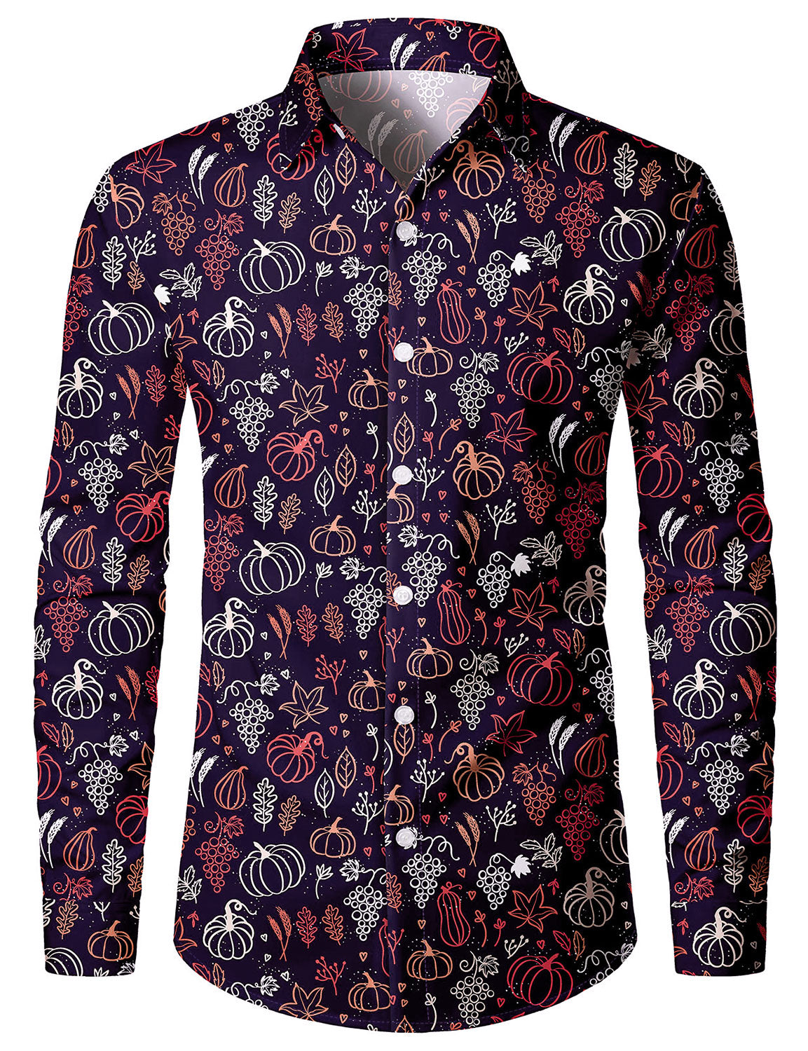 Men's Casual Thanksgiving Turkey Pumpkin Holiday Button Long Sleeve Shirt