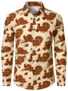 Men's Thanksgiving Turkey Khaki Cotton Long Sleeve Shirt