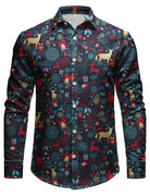 Men's Vintage Christmas reindeer Printed Holiday Long Sleeve Shirt