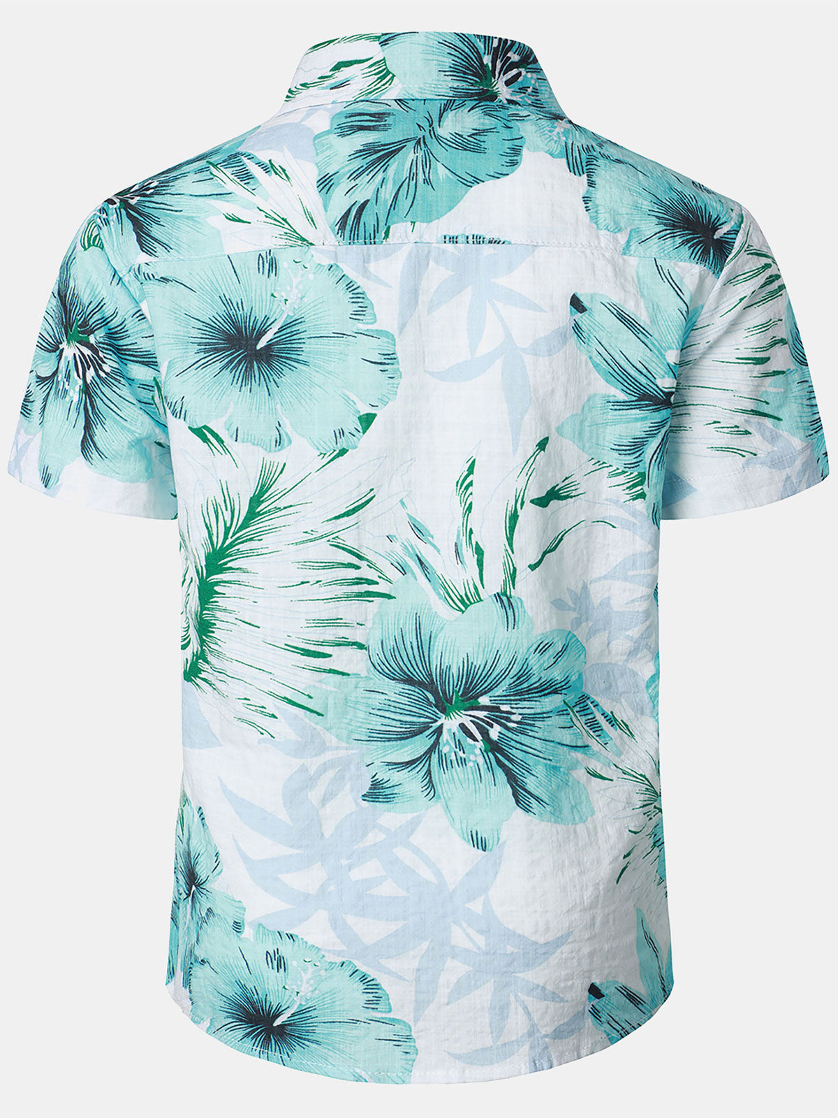 Children's Floral Print Tropical Aloha Holiday Summer Beach Short Sleeve Shirt