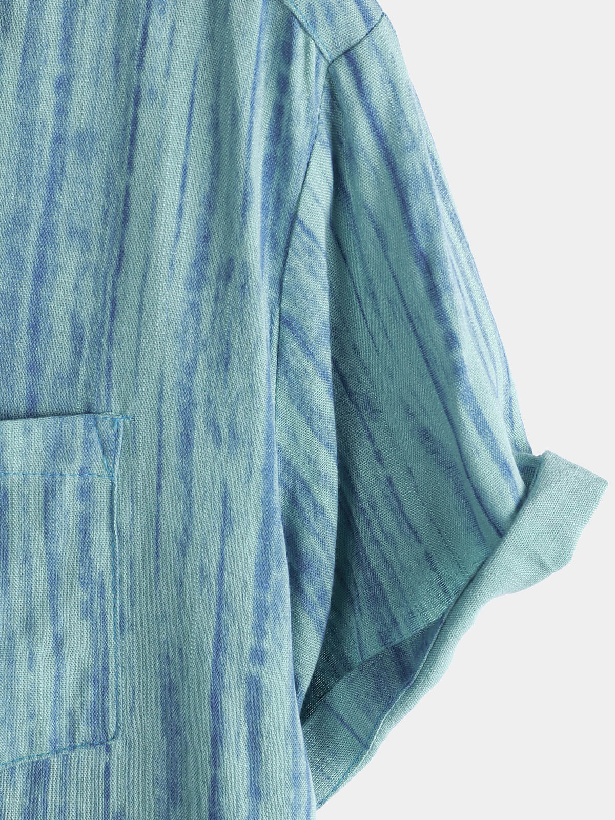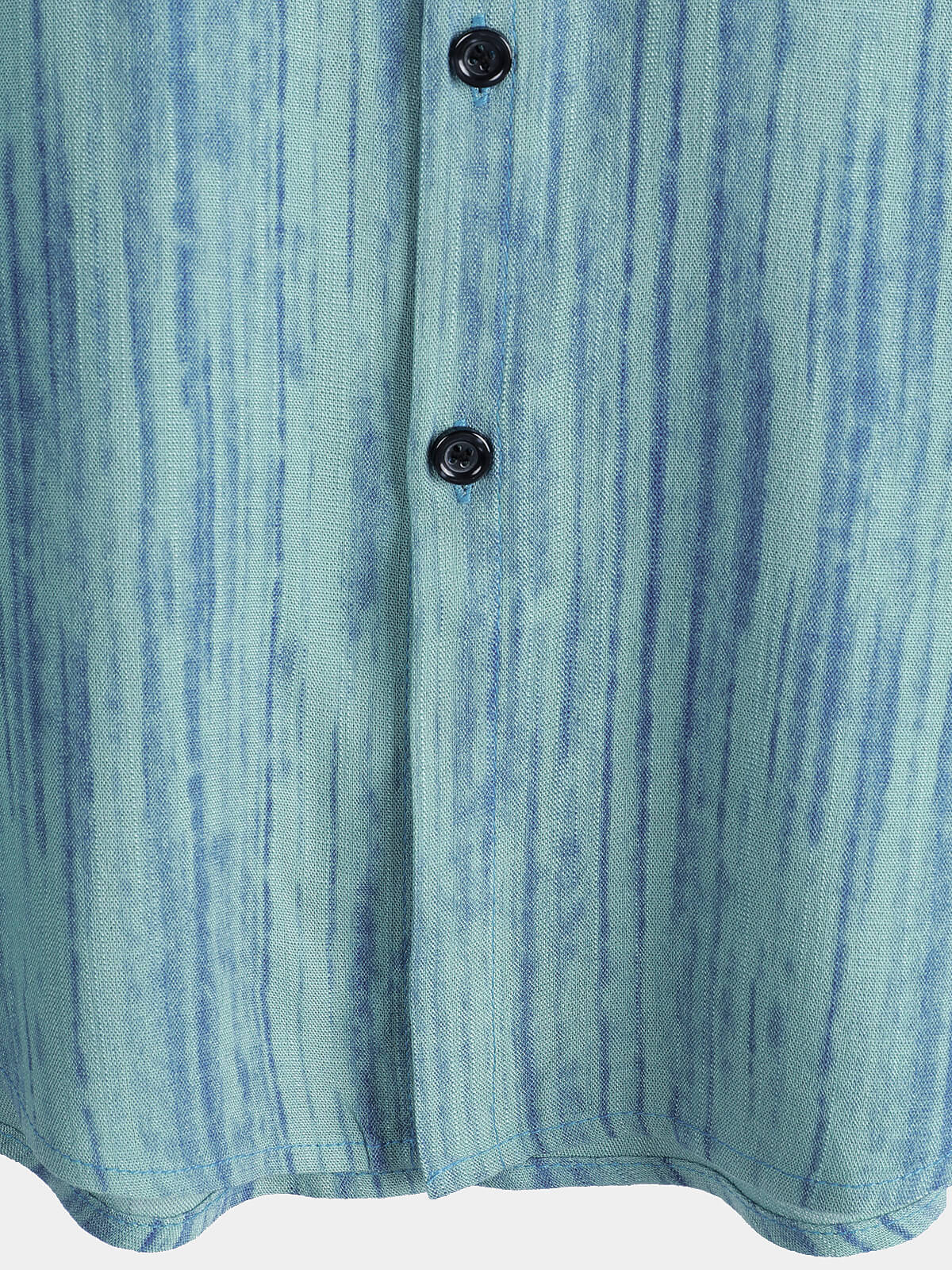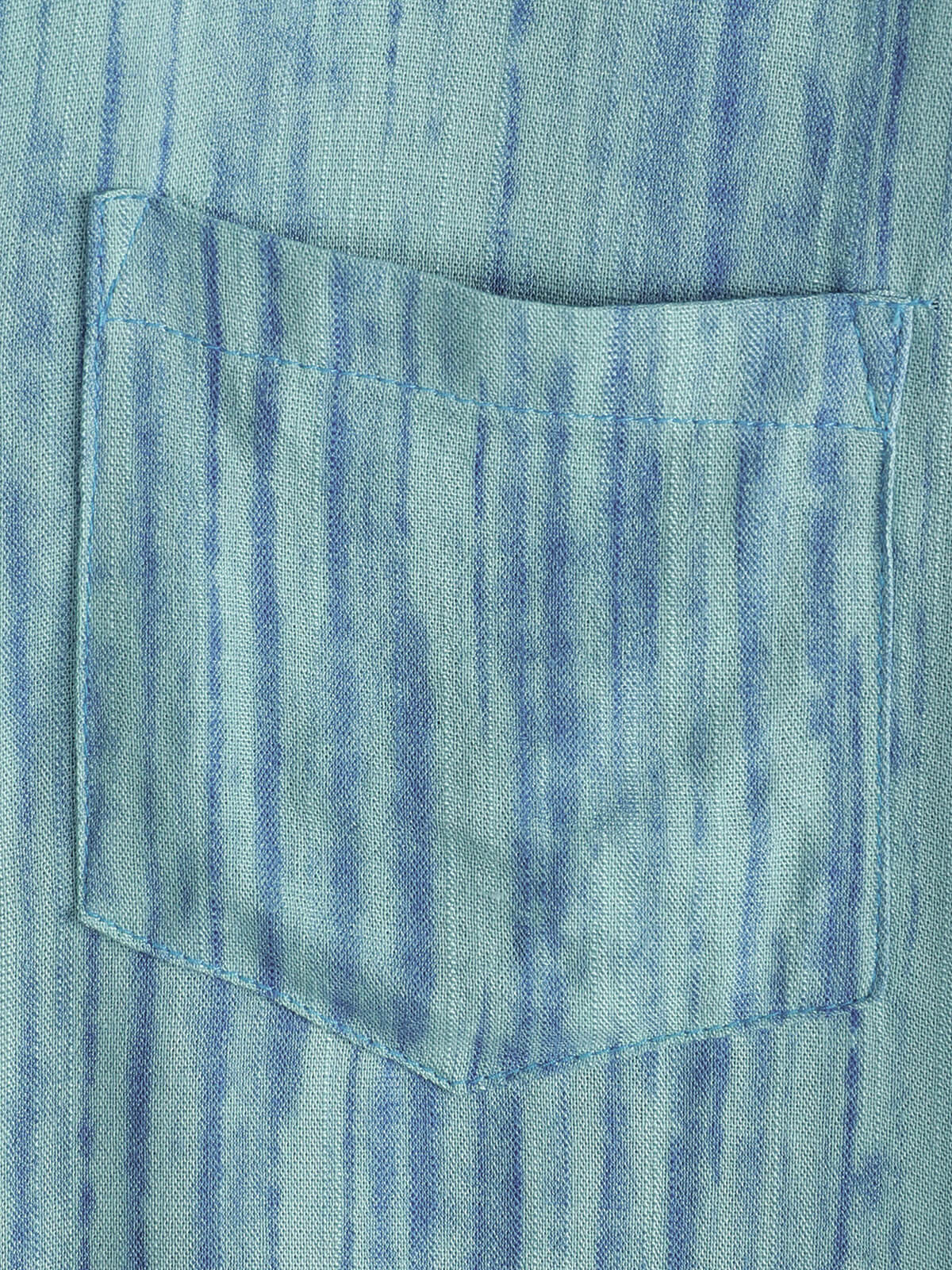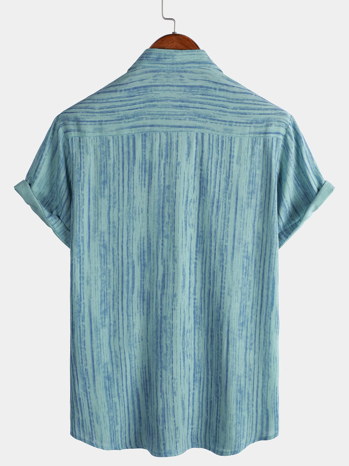 Men's Breathable Short Sleeve Pocket Blue Striped Shirt