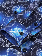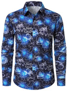 Men's Cotton Blue Christmas Long Sleeve Shirt