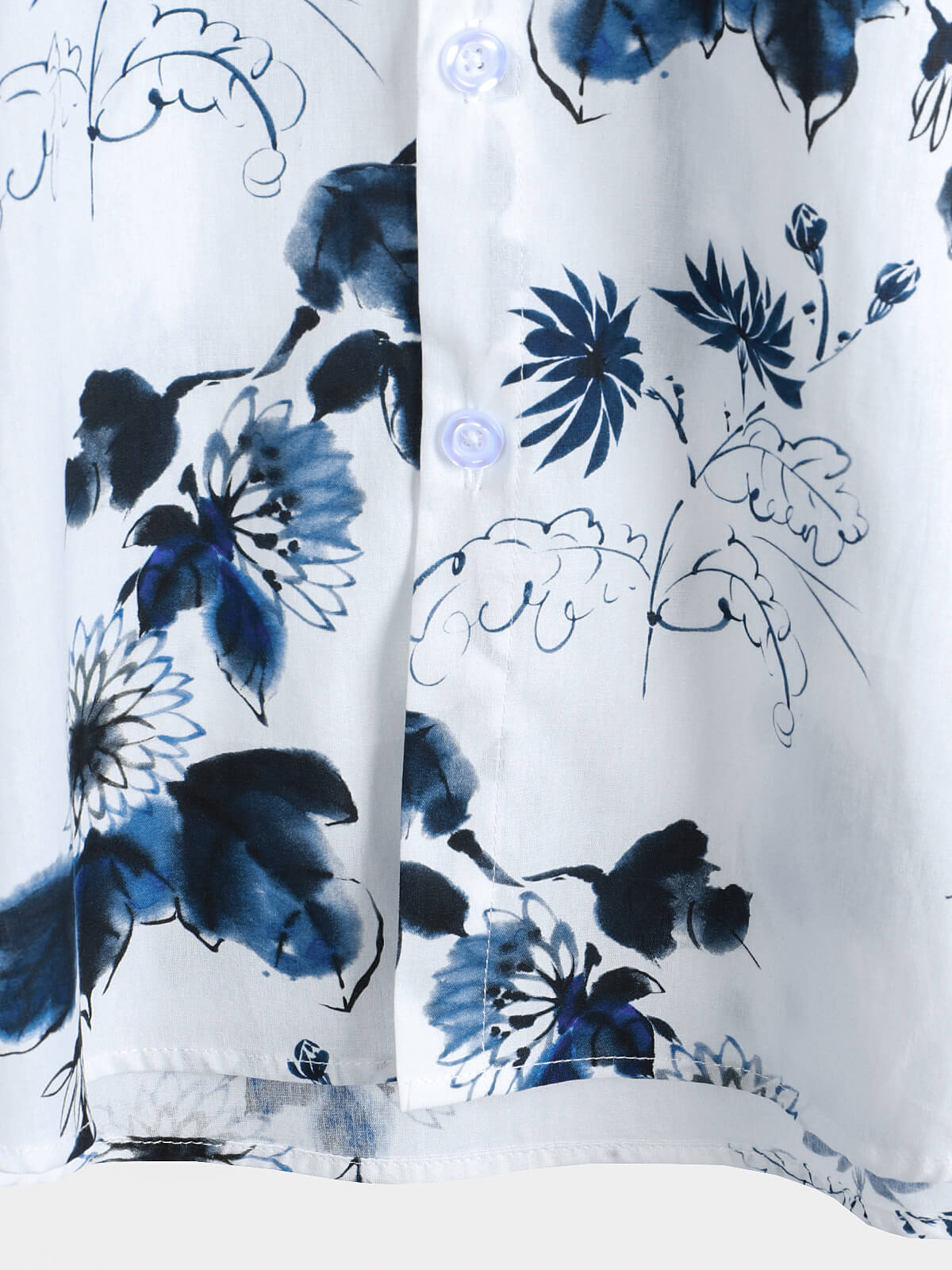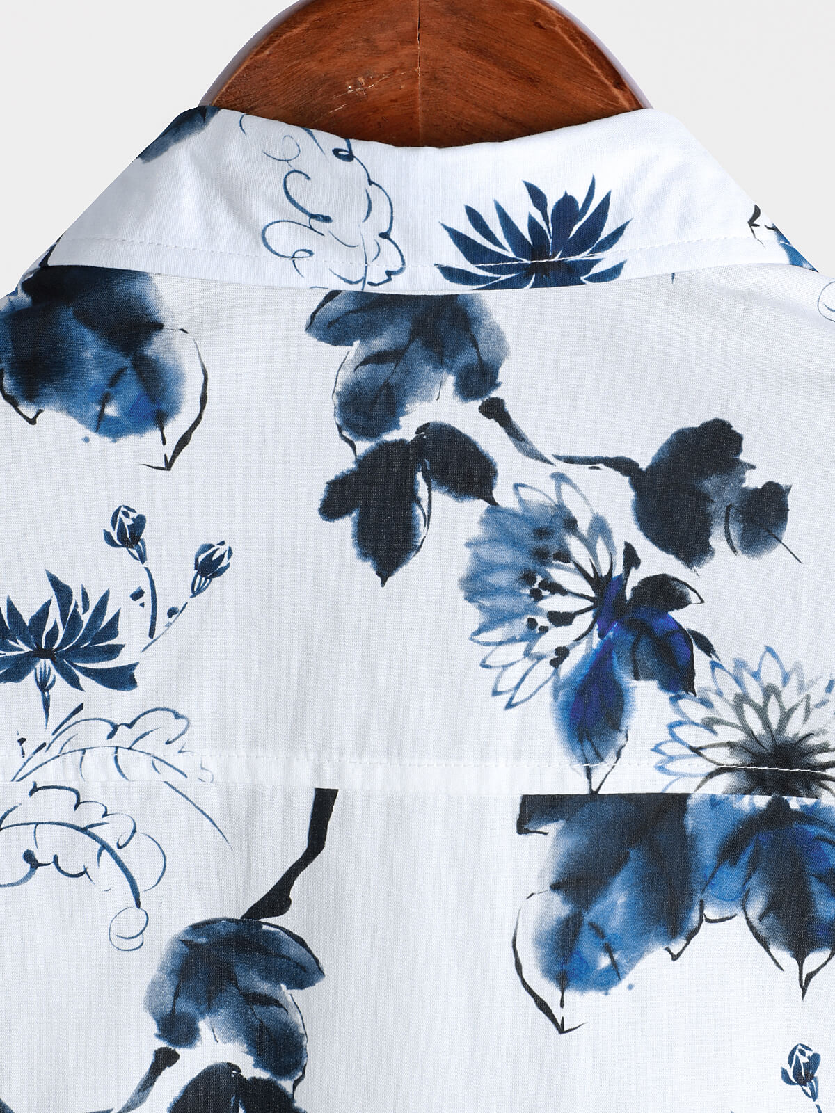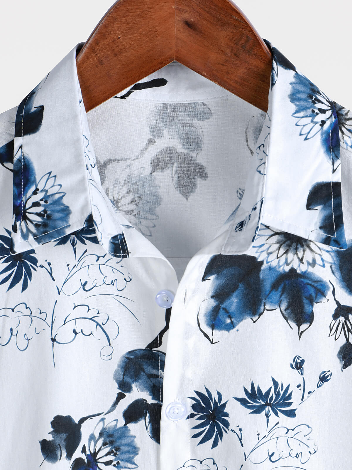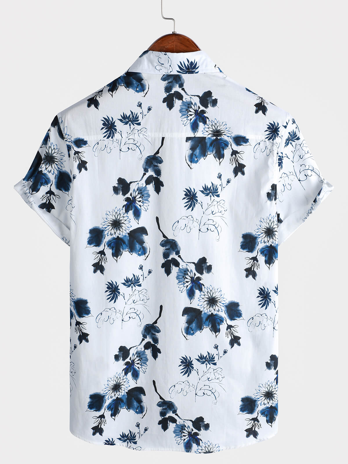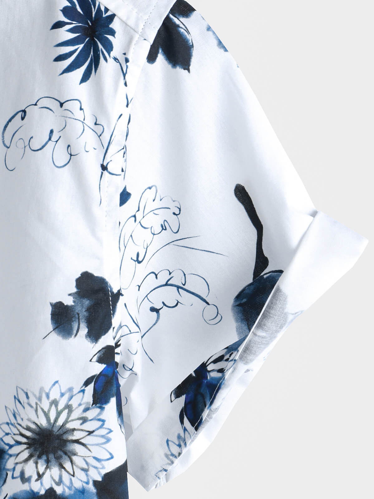 Men's Floral Cotton Casual Short Sleeve Shirt