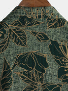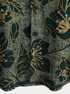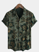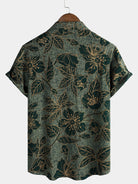 Men's Floral Vintage Green Summer Holiday Button Up Short Sleeve Shirt