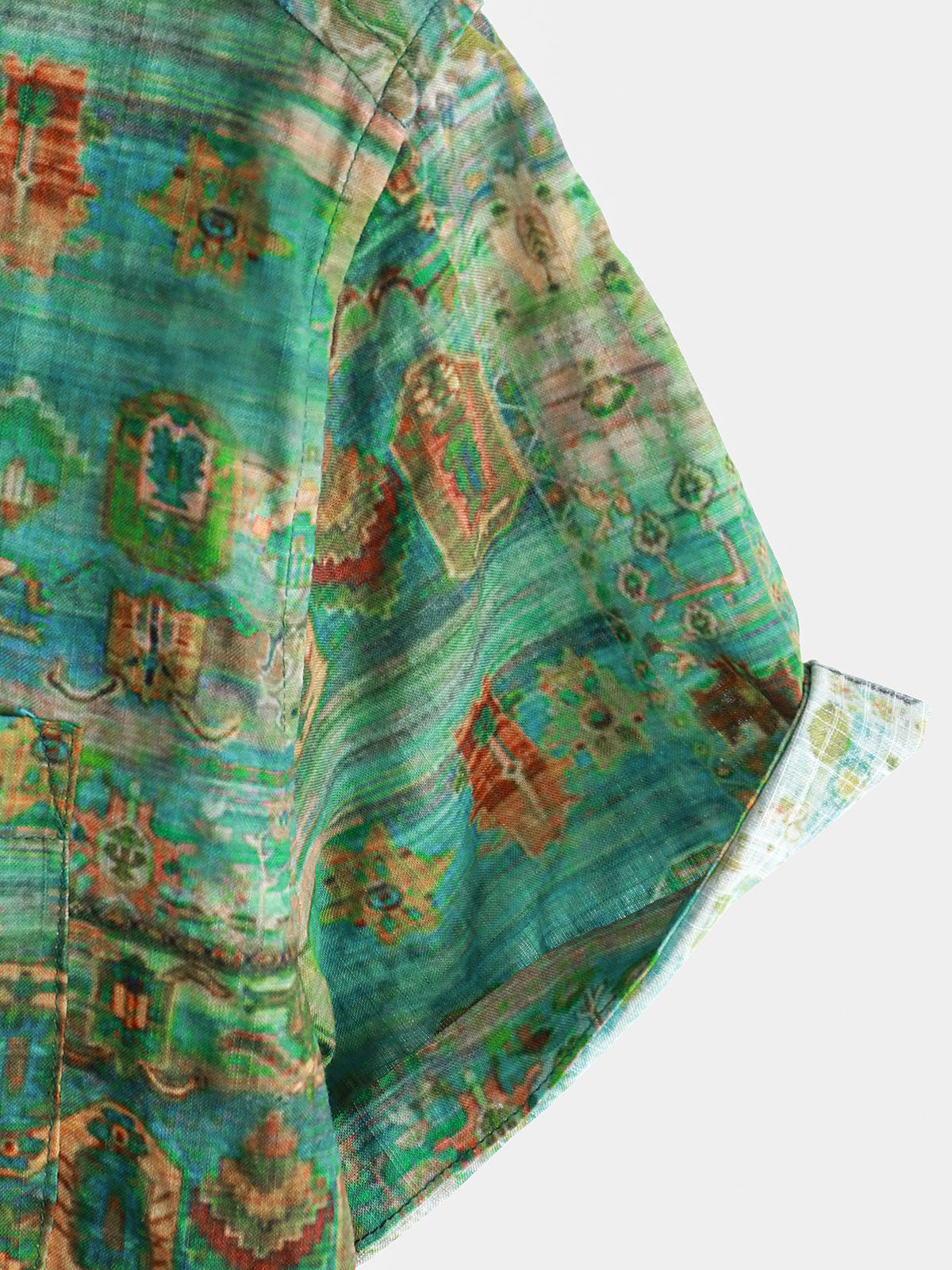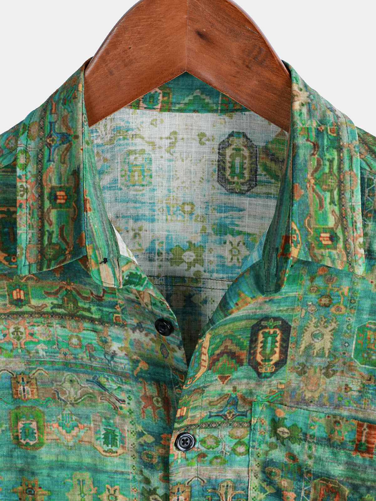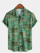 Men's Green Vintage Short Sleeve Breathable Button Up Shirt