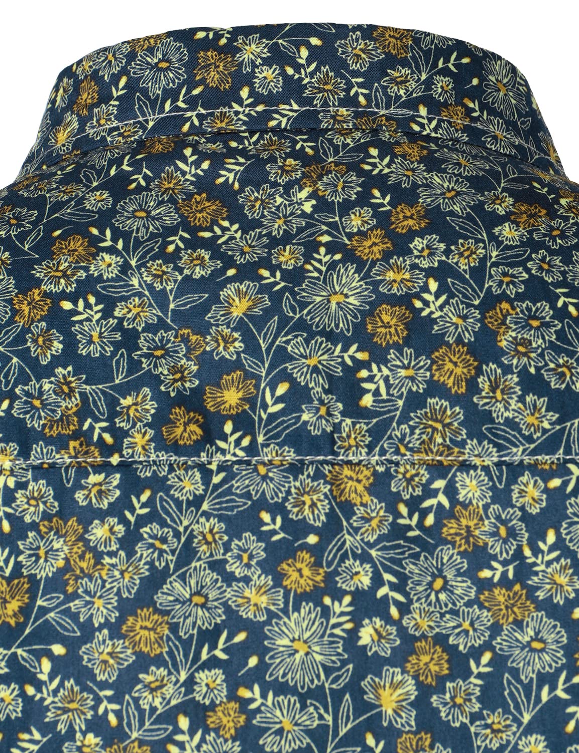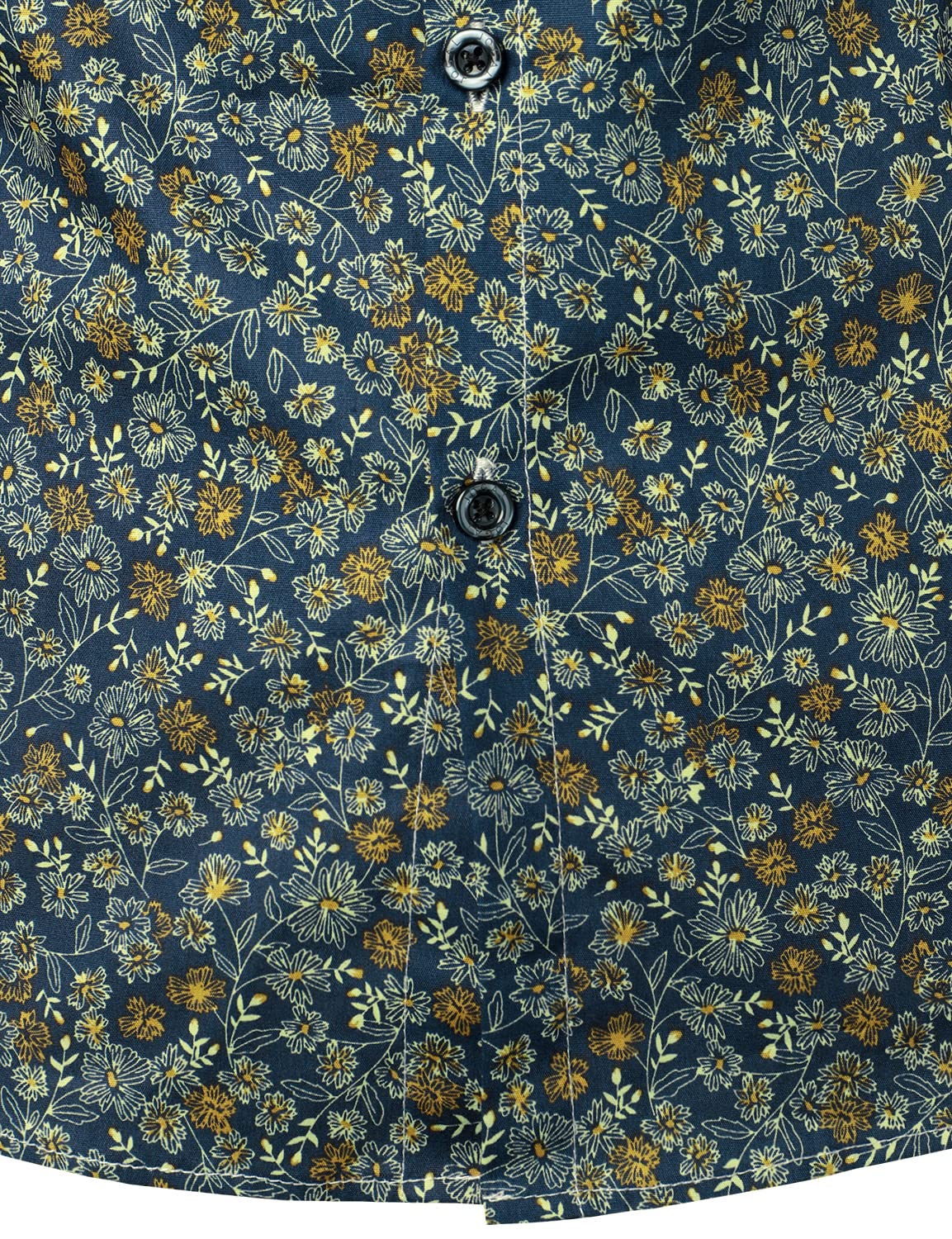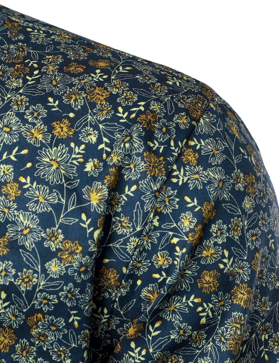 Men's Navy Blue Vintage Floral Print Cotton Breathable Flower Button Long Sleeve Dress Shirt