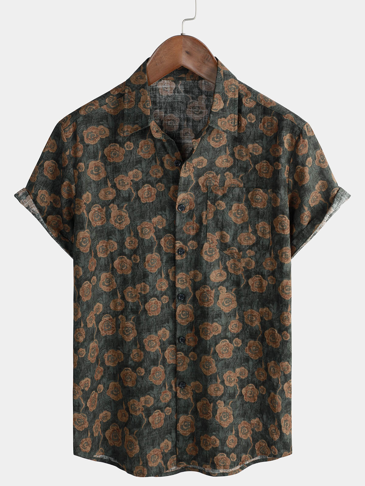 Men's Vintage Floral Holiday Pocket Summer Short Sleeve Button Up Shirt